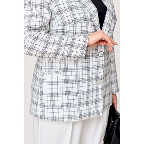 Представьте себе величественную даму, идущую с изяществом и уверенностью, восхищающую всех своим непринужденным стилем. Её образ – это искусное сплетение элегантности и современной роскоши. На ней – женский жакет, созданный для того, чтобы притягивать восхищенные взгляды! Жакет, в котором она словно воплощает элегантность и власть, олицетворяет роскошь и стиль! Он выглядит как произведение искусства: однобортный, с центральной застёжкой на две изысканные пуговицы, создающие ощущение истинного роскошного шика. Отложной воротник с лацканом придает образу особый шарм и респектабельность. Спинка и перед пиджака украшены изысканными рельефами, которые подчеркивают женственные линии фигуры. Прорезные карманы в листочку дополняют его стиль и функциональность, а подкладка добавляет ощущение роскоши и комфорта. Длина рукава (см): 61 Длина жакета (см): 73