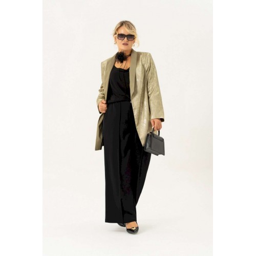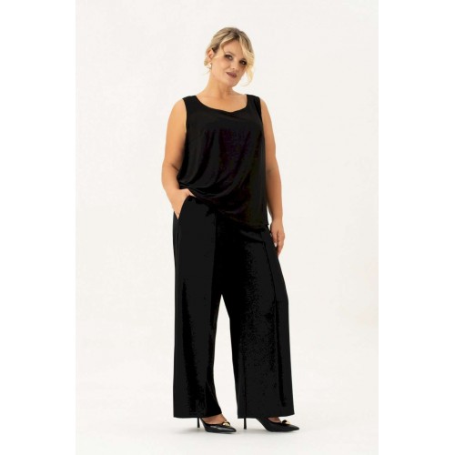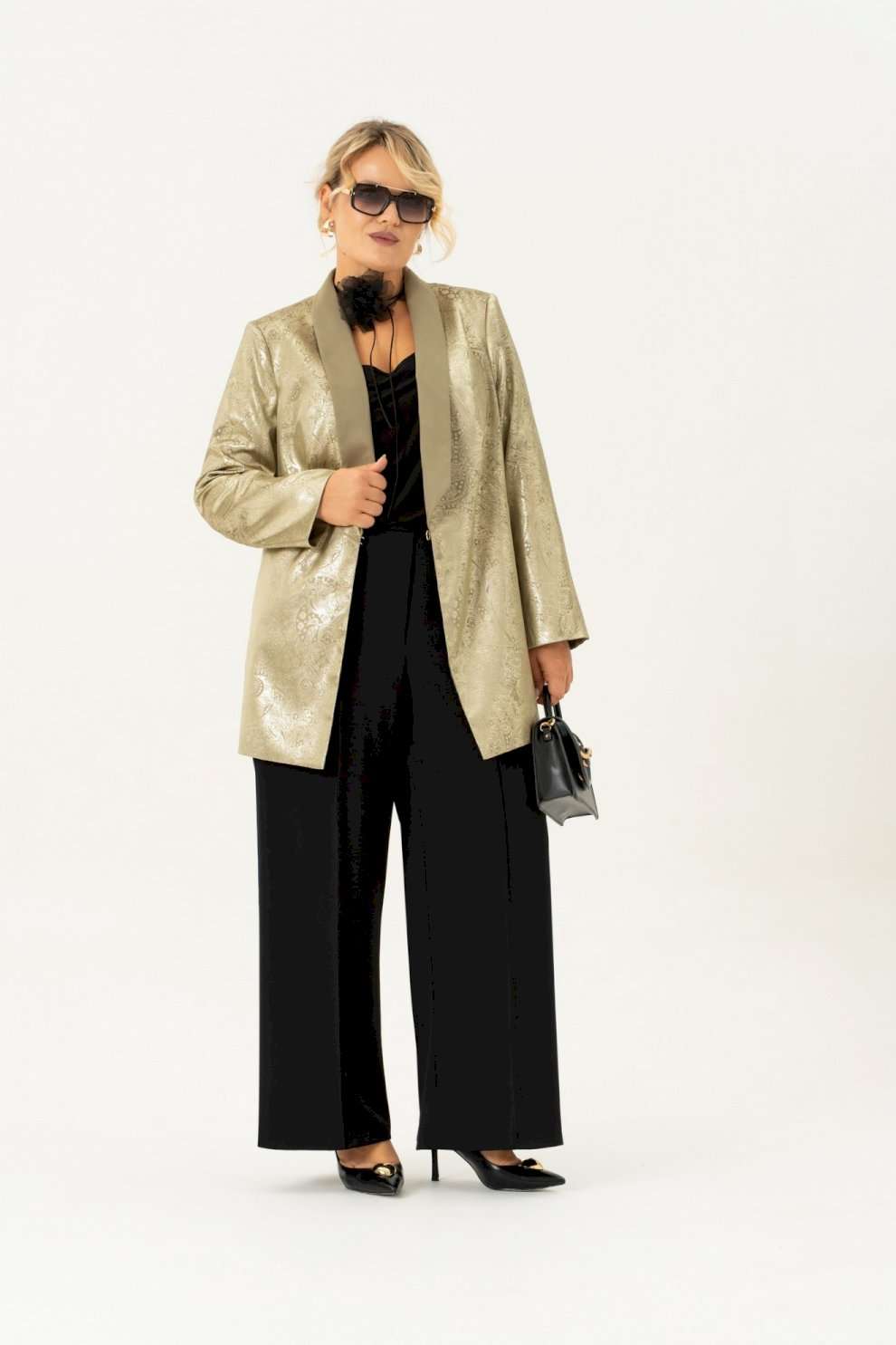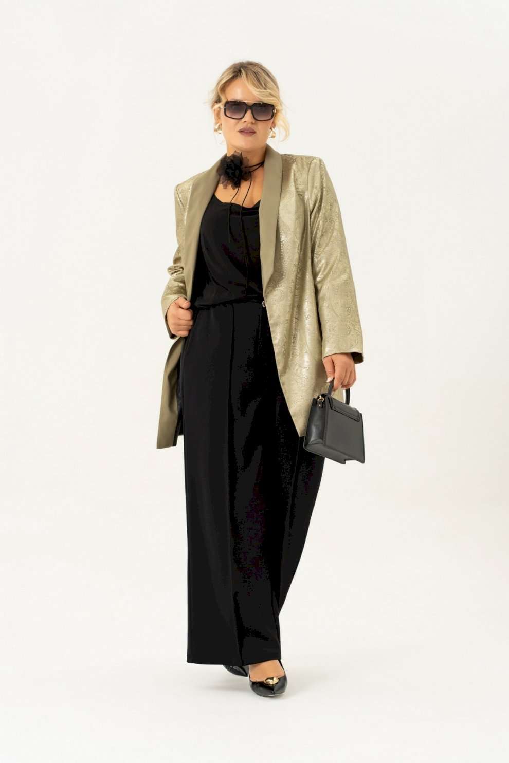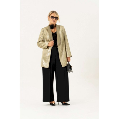 Этот комплект одежды идеально подходит для женщин, которые хотят выглядеть стильно и элегантно на любом мероприятии. Идеальный вечерний наряд, который придаст особый шик Вашему образу. Комплект состоит из брюк , блузы и жакета, и образует абсолютно классическую тройку. Неважно, это деловое собрание или праздничное мероприятие - этот брючный комплект подойдет для любого случая. Базовая модель прекрасно подчеркнет вашу фигуру и придаст вам очаровательный вид. Комплект выполнен из качественной ткани и дополнен жакетом с застежкой на декоративный крючок , которые делают его еще более привлекательным и уникальным. На жакете обработан воротник шалька и карманы в фигурных рельефах. Жакет на подкладке с длинным рукавом. Блуза без рукова из стрейчевой ткани с нагрудными выточками. Брюки-палаццо на эластичной резинке с эмитацией гульфика. По переду расположены карманы с наклонным входом. Нарядный вечерний комплект создаст модный образ на свадьбу, или на вечеринку, а так же подчеркнет Ваш стиль . Брючный комплект женский больших размеров отличается высокой степенью практичности и универсальности,приобретая один комплект- Вы получаете много образов, комплектуя элементы комплекта с другими вещами из своего гардероба! Длина брюк (см): 105