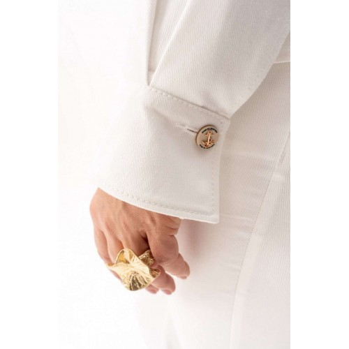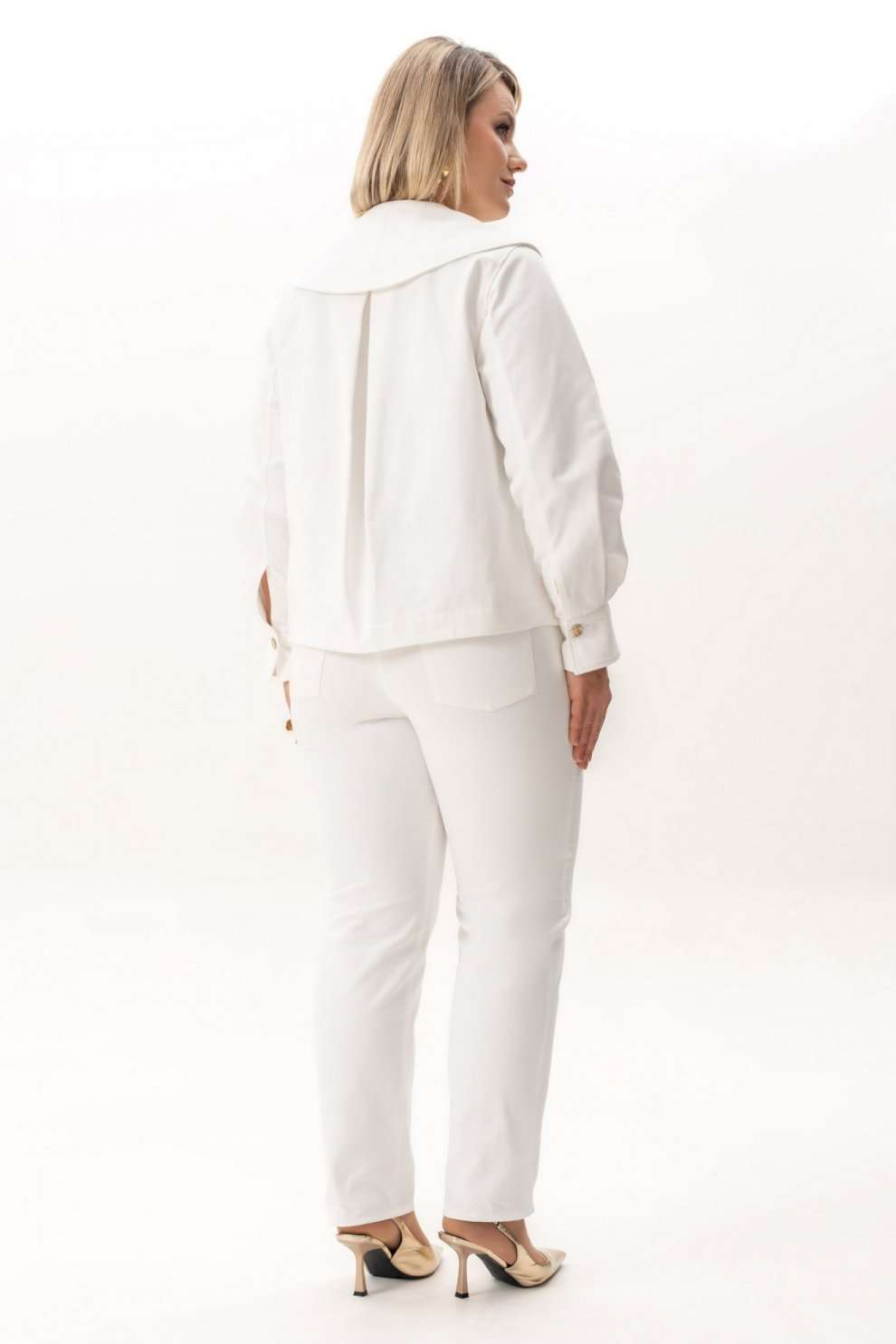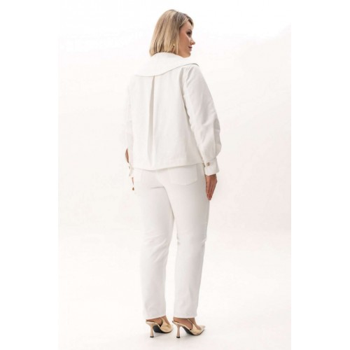 Костюм брючный 4151 Algranda (Новелла Шарм) — это идеальный выбор для тех, кто ценит комфорт и стиль. Коллекция бренда Новелла Шарм предлагает универсальный белый джинсовый костюм, выполненный из 100% хлопка. Джинсы с высокой посадкой и эластичной резинкой в поясе обеспечивают комфорт и адаптацию к фигуре без давления. Жакет-короткая куртка, длиной 66 см, на пуговицах, идеально сочетает в себе элементы классики и современности. Идеален для весны, лета и осени, он легко трансформируется в наряд для особого случая с добавлением аксессуаров. Прямой крой брюк длиной 112 см делает их подходящими как для повседневной носки, так и для выходов в свет. Длина рукава составляет 61 см, что добавляет элегантности и завершающий штрих образу.