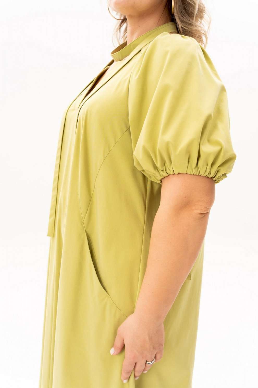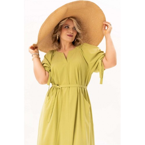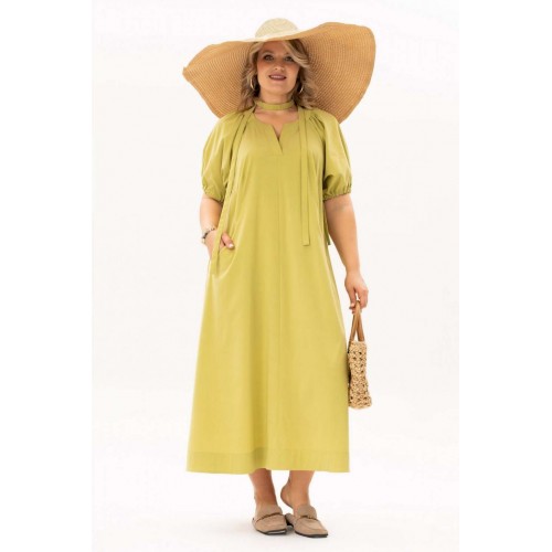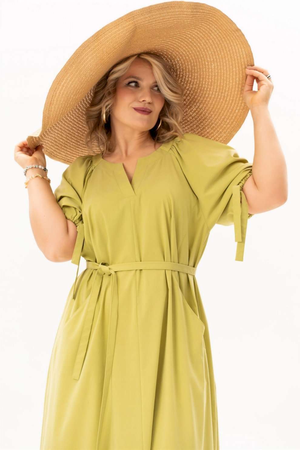 Платье 4155 Algranda (Новелла Шарм) — это стильное летнее платье, идеальное для создания лёгкого образа. Коллекция бренда Algranda сочетает в себе комфорт и современный дизайн. Платье выполнено из лёгкой ткани с содержанием вискозы, что позволяет коже дышать и обеспечивает комфорт в тёплую погоду. Свободный А-образный крой и длина миди (130 см) делают его подходящим для повседневных прогулок и встреч. Съёмный пояс-завязка позволяет варьировать силуэт от свободного до подчёркивающего фигуру. V-образный вырез и элегантные рукава-фонарики с кулисками добавляют оригинальности. Оливково-лаймовый оттенок подчеркивает загар, а длина рукава с плечом составляет 41 см.