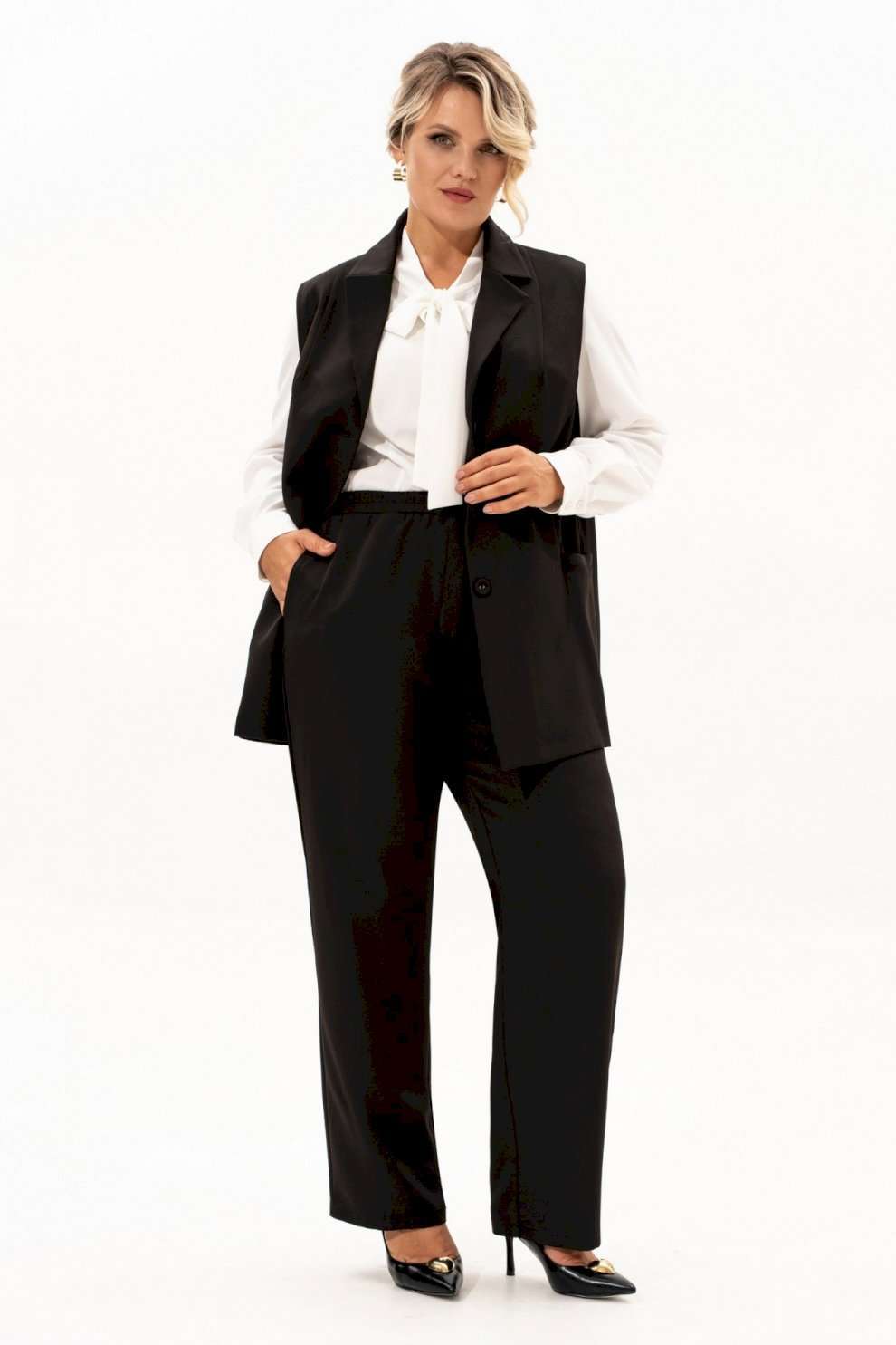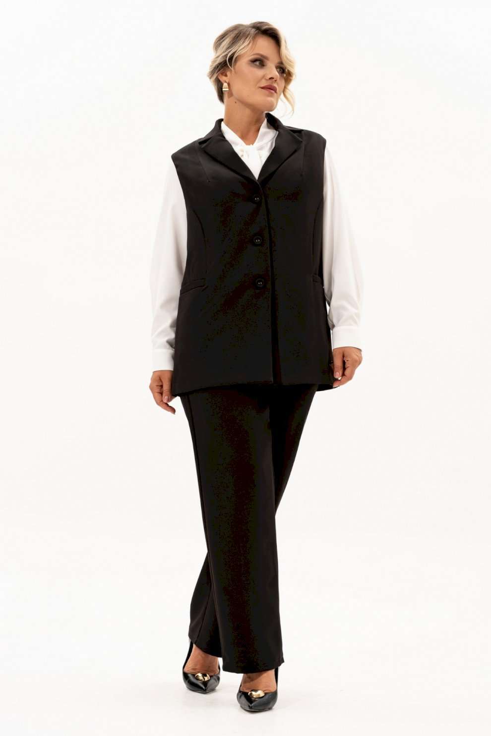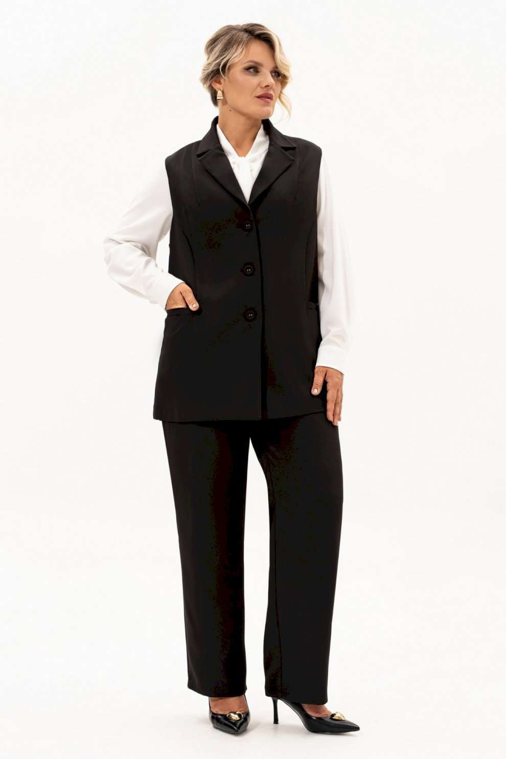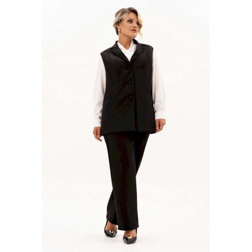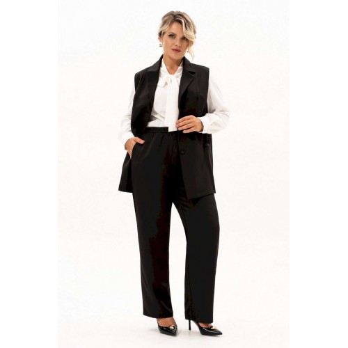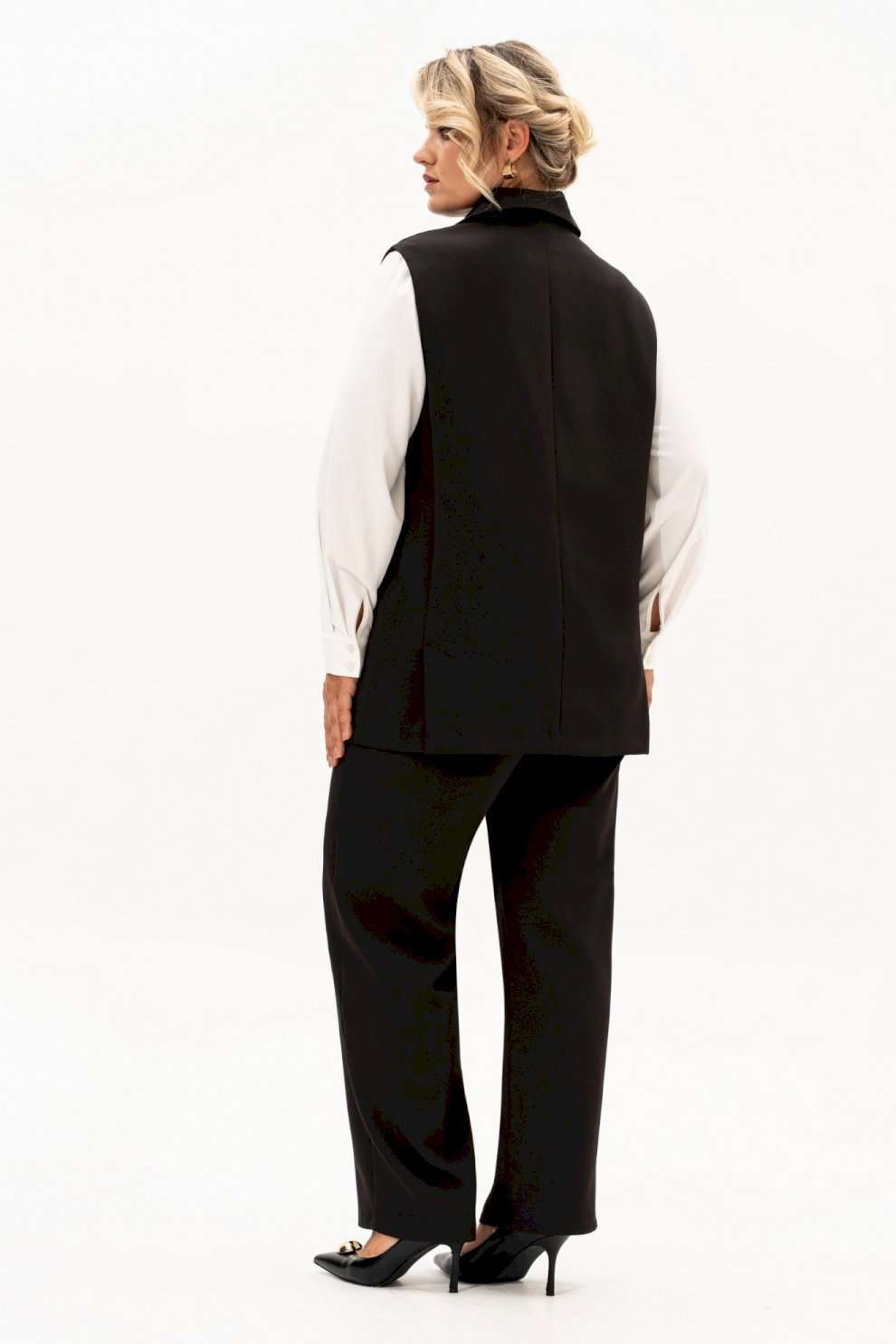 Элегантный костюм с жилетом – тренд осенне-зимнего сезона! Этот костюм является настоящей находкой для любой модницы, идеально сочетая строгий стиль и современный дизайн! Костюм-двойка, выполненный из качественной костюмной ткани, включает в себя классические прямые брюки и молодежный жилет, создавая гармоничный образ в духе old money. Детали: Жилет – с лацканами и воротником, прорезными карманами с листочкой, на спинке обработаны шлицы в рельефах. Брюки – прямого силуэта на эластичной резинке по поясу с имитацией застежки-гульфика для удобства и безупречного силуэта. Этот универсальный костюм подходит для офиса, деловых встреч, вечерних мероприятий и праздничных выходов. Дополните его аксессуарами – и ваш образ заиграет новыми красками! С выбором этого костюма, стиль, комфорт и элегантность станут вашими спутниками в новом сезоне! Длина брюк (см): 105 Длина жилета (см):79