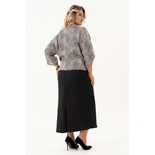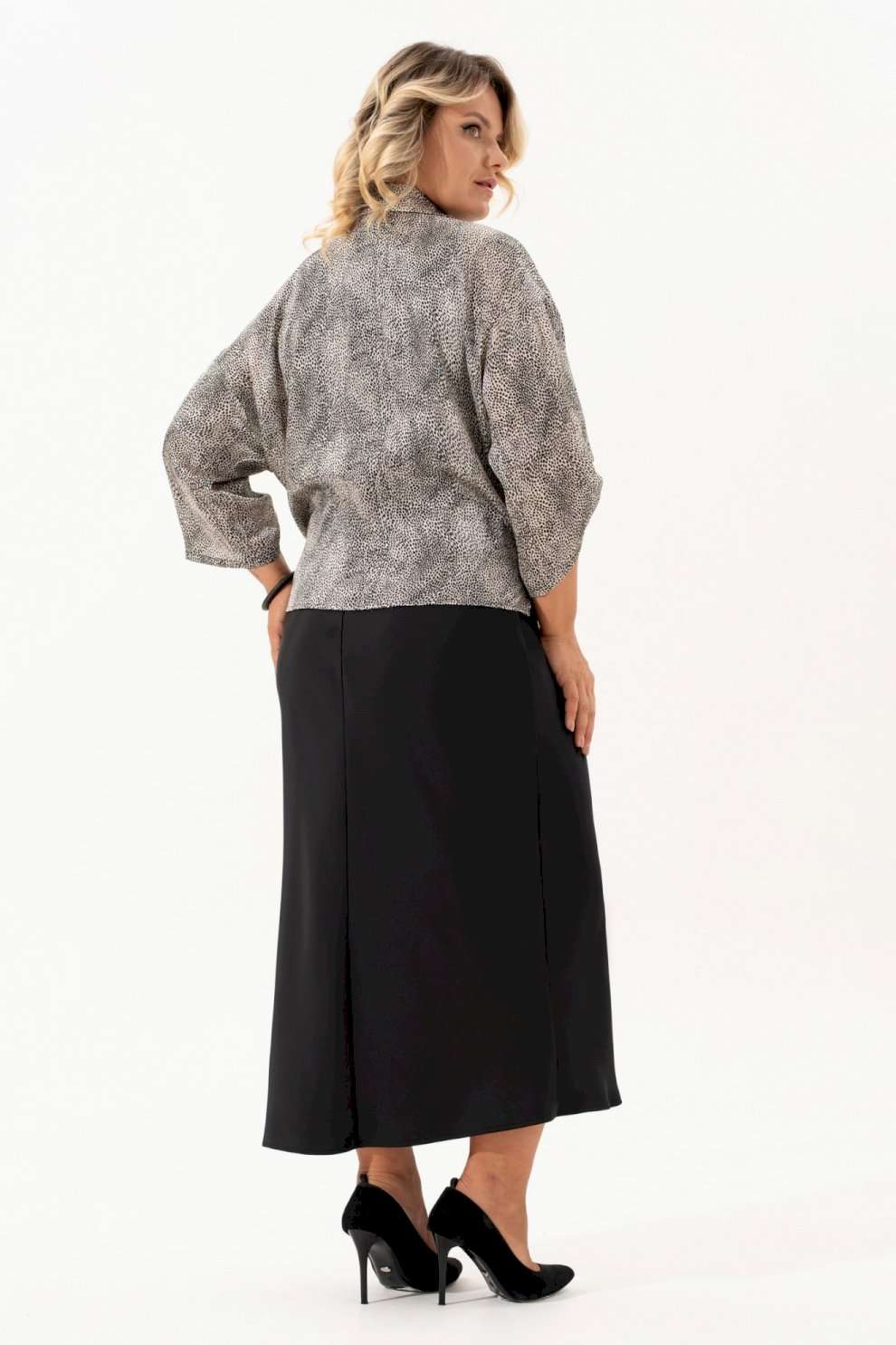 Нарядный двухпредметный комлект, состоящий из рубашки и платья. Рубашка в стиле casual выполнена из принтованной ткани с крэш-эффектом и мелким леопардовым узором — оригинальное сочетание естественной динамики и актуального принта. Модель без застёжек, с воротником на стойке и удлинёнными концами полочек, которые можно элегантно завязать на талии. Рукава длиной 3/4 собраны на паты с декоративной пуговицей, создавая расслабленный и волнующий образ. Второй элемент комплекта — платье из струящегося атласа, кроенное по косой, что обеспечивает красивую посадку и мягкое облегание по фигуре. Углубленная горловина добавляет лёгкой чувственности, а нагрудные вытачки от проймы подчёркивают линию груди. Этот комплект легко адаптируется под разный стиль: носите рубашку отдельно с джинсами, а платье дополните сандалиями и украшениями, подходящими для романтичных прогулок или встреч в городе. Длина изделия (см): 136 Длина блузы (см): 62 Длина рукава с плечом (см): 55