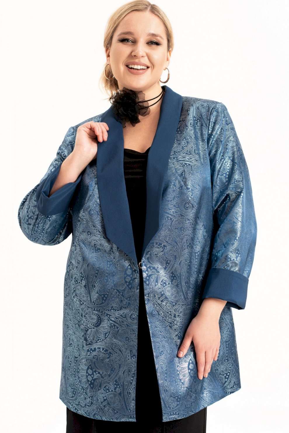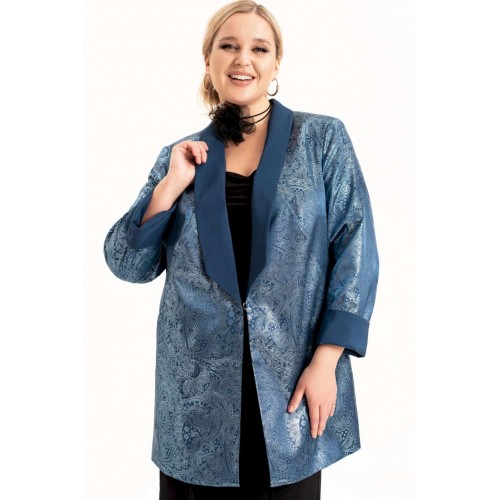 Этот женский нарядный жакет представлен в ярких тонах. Благодаря своему прямому, слегка приталенному силуэту, жакет обеспечивает максимальный комфорт и удобство при ношении. Вам не придется беспокоиться о чувстве стеснения или дискомфорта, так как он идеально подстраивается под вашу фигуру. Этот нарядный пиджак гарантированно привлечет внимание и подчеркнет вашу индивидуальность. Он доступен в больших размерах и подходит для женщин с разными типами фигуры. Вы сможете выглядеть модно и элегантно независимо от своего размера. На жакете обработан воротник шалька и карманы в фигурных рельефах. Жакет на подкладке с длинным рукавом. Застежка на декоративный крючок. Длина изделия (см): 80 Длина рукава (см): 62