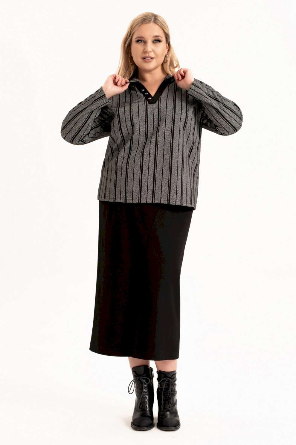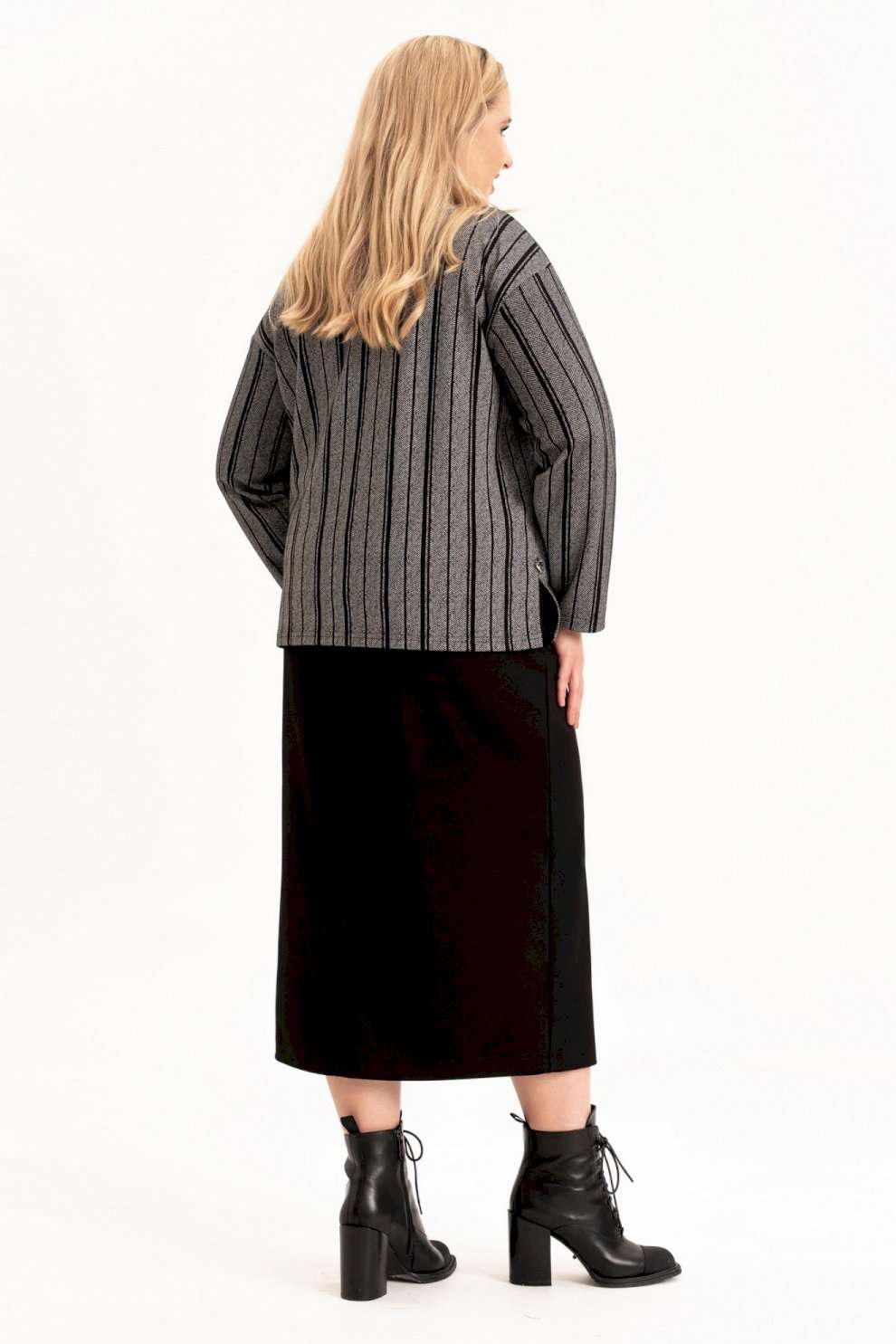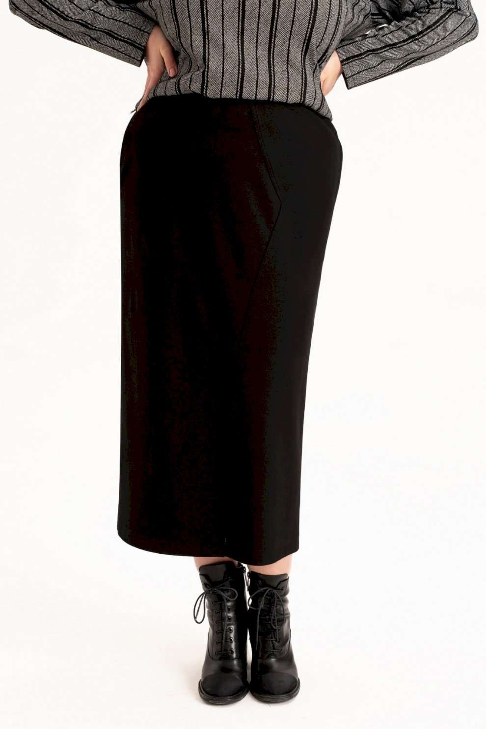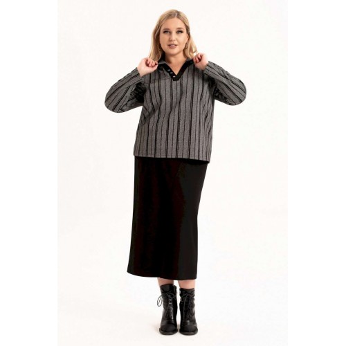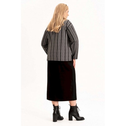 Стильный женский трикотажный костюм с юбкой станет настоящей находкой для каждой современной модницы. Удобный и практичный женский костюм оверсайз прекрасно подходит для любого типа фигуры, помогая выгодно скрыть недостатки и подчеркнуть достоинства. Приталенный силуэт трикотажной юбки с высокой посадкой, а также свободный крой свитшота сделает образ лаконичным, поможет всегда оставаться в тренде. Неповторимый стиль и удивительный комфорт умело сочетаются в этом женском костюме с юбкой. Женский костюм отлично подходит для повседневной носки, а также для более формальных ситуаций. Этот костюм идеально подходит как для офисной среды, так и для обеденного свидания или других повседневных мероприятий. Вы сможете легко создать разнообразные образы, изменяя аксессуары и обувь. В нем каждая сможет чувствовать себя комфортно. Удобный крой позволит не сковывать движения, при этом полноценно облегая силуэт женской фигуры. Костюм выполнен с учетом последних модных тенденций, что обеспечивает его стильный дизайн. Высококачественный трикотажный материал »лакоста», используемый при создании, придает костюму особую мягкость и удобство во время носки. Юбка с разрезом по цетру переднего полотнища и боковыми карманами добавляет нотку женственности и элегантности к образу. Горловина свитшота V-образная с обработанными планками и воротником, с боковыми разрезами и пришивным декором. Свитшот оверсайз отличается не только свободным кроем, но и имеет спущенную линию рукава, выгодно скрывая мельчайшие недостатки женской фигуры. Длина рукава (см): 61 Длина жакета (см): 62 Длина юбки (см): 90