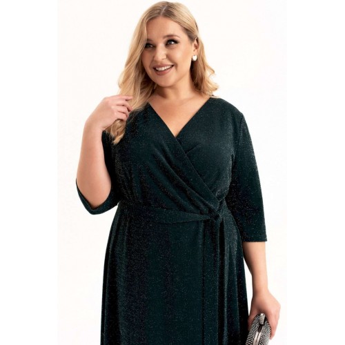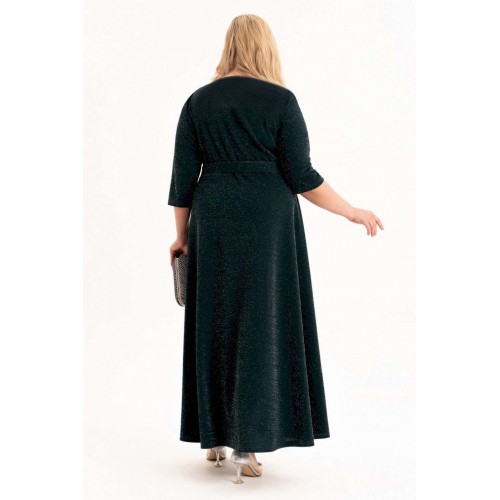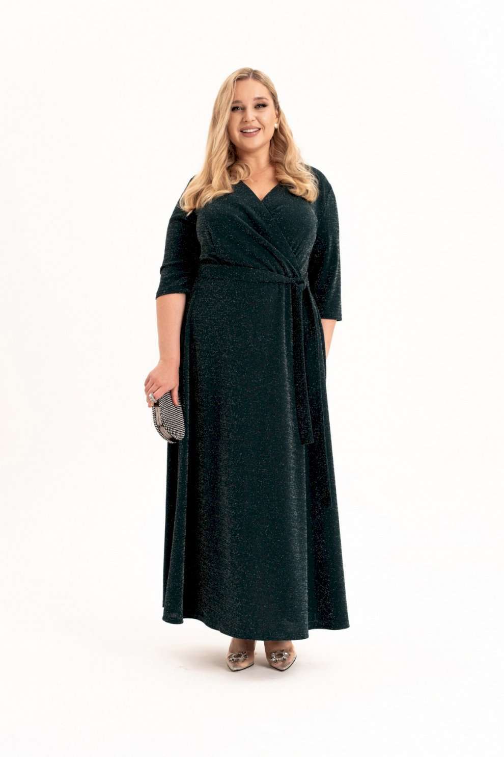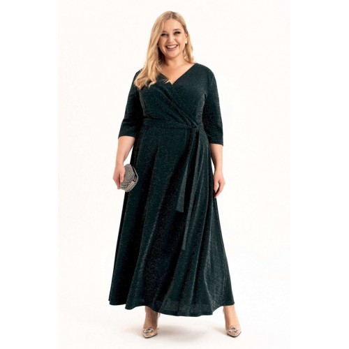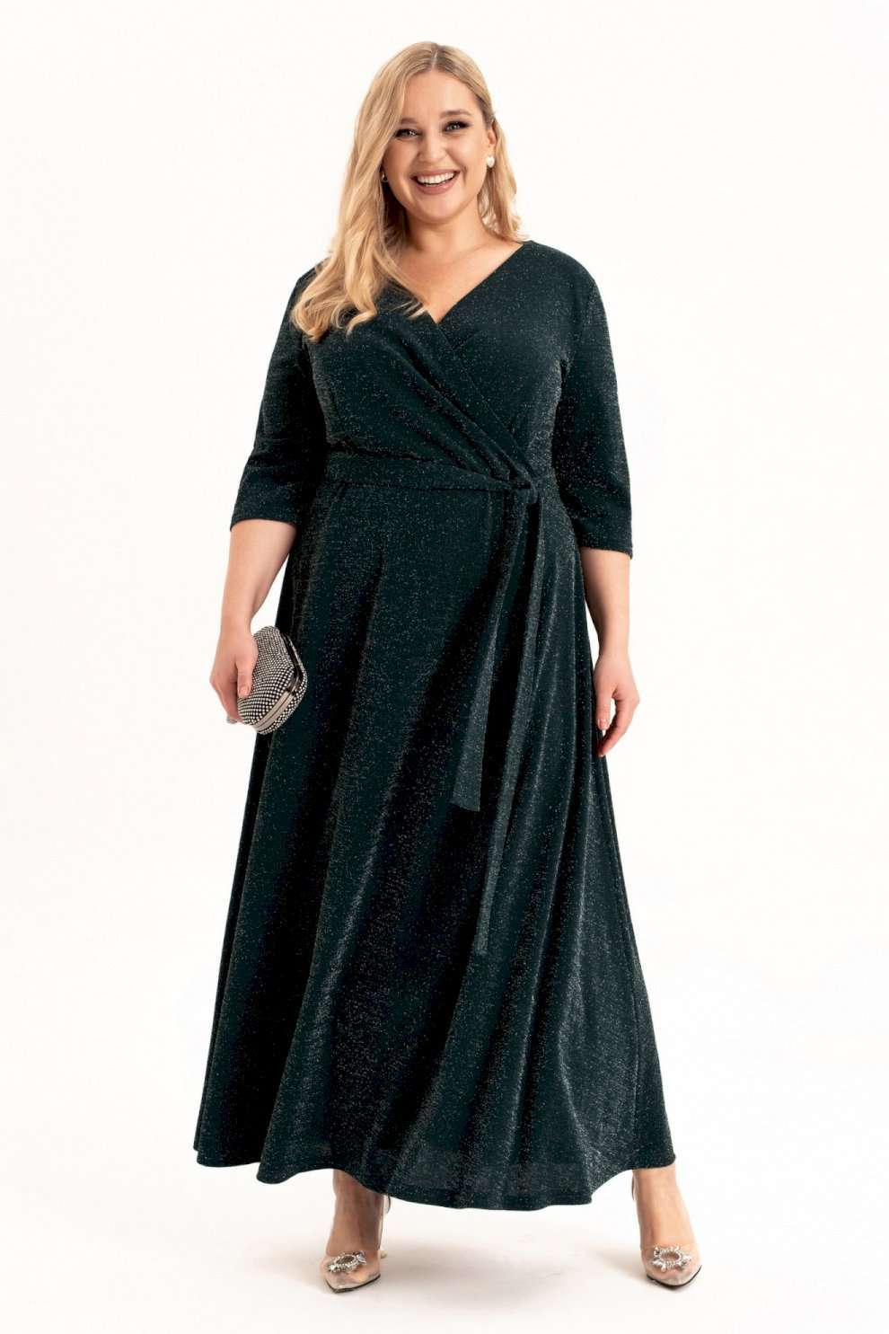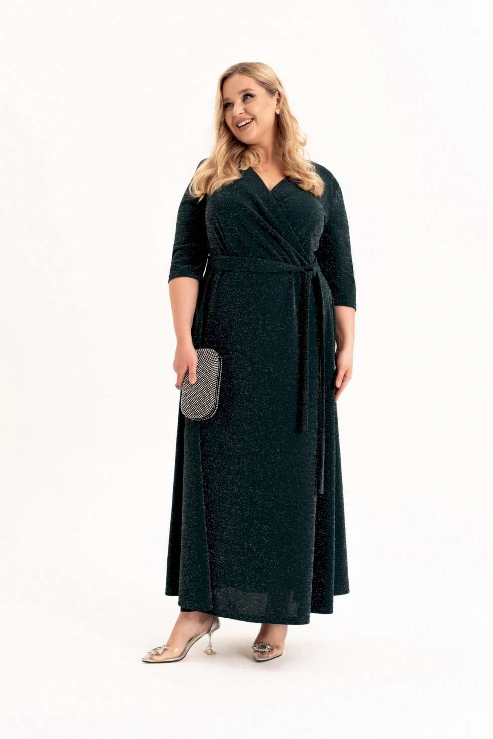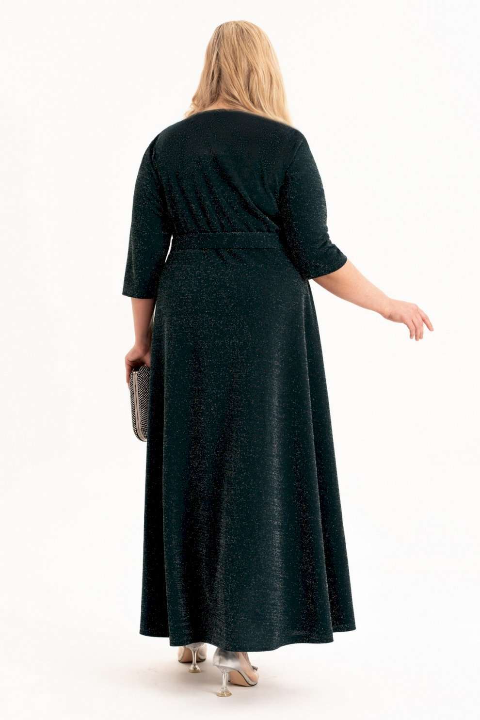Нарядное платье на запах - это элегантный выбор для любой женщины, подростка или девушки, идеальное сочетание стиля и комфорта. Длинное вечернее платье сочного изумрудного цвета из стрейчевого трикотажного полотна с люрексом. Ткань мягкая, очень приятная к телу. Верхняя часть платья переда и спинки отрезные по линии талии. Лиф переда с эффектным запахом и рельефным бочком. Нижняя часть платья расширена к низу. Рукав втачной, длиной ¾. Платье со съёмным поясом. Съемный пояс и закрытые плечи выгодно подчеркивают женственность фигуры, а рукава длиной три четверти и пикантный V-образный вырез добавляют неповторимости вашему образу. Выполненное из премиальной ткани с блеском, платье представлено в различных размерах. Это универсальное платье подойдет для любого случая: будь то деловая встреча, вечерняя прогулка или особенный праздник. Тренд сезона 2025-2026года. Его можно носить в любое время года, от весны до зимы. Внимание к деталям и трендовый дизайн делают его идеальным выбором для множества мероприятий, включая свадебные фотосессии, ресторанные посиделки или корпоративные вечера. Платье нарядно, кокетливо и подходит как высоким, так и невысоким девушкам. Независимо от вашего стиля или сезона, наше платье будет идеальным выбором. Длина изделия (см): 132 Длина рукава (см): 42
