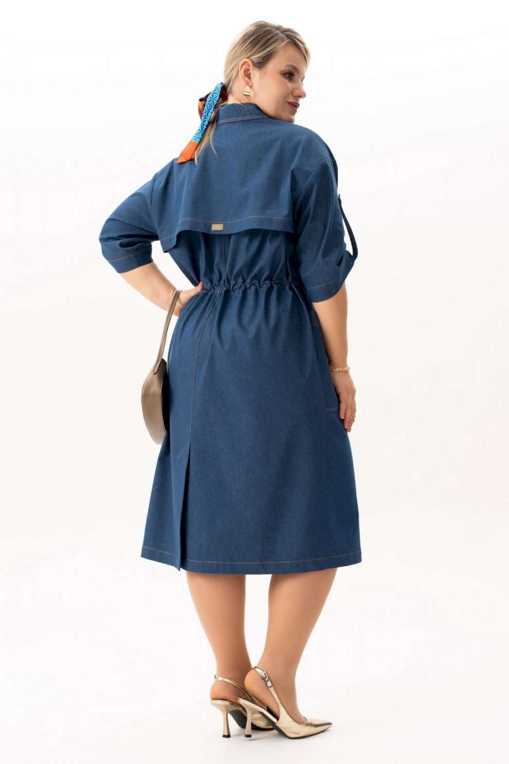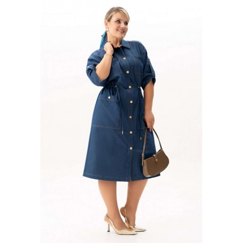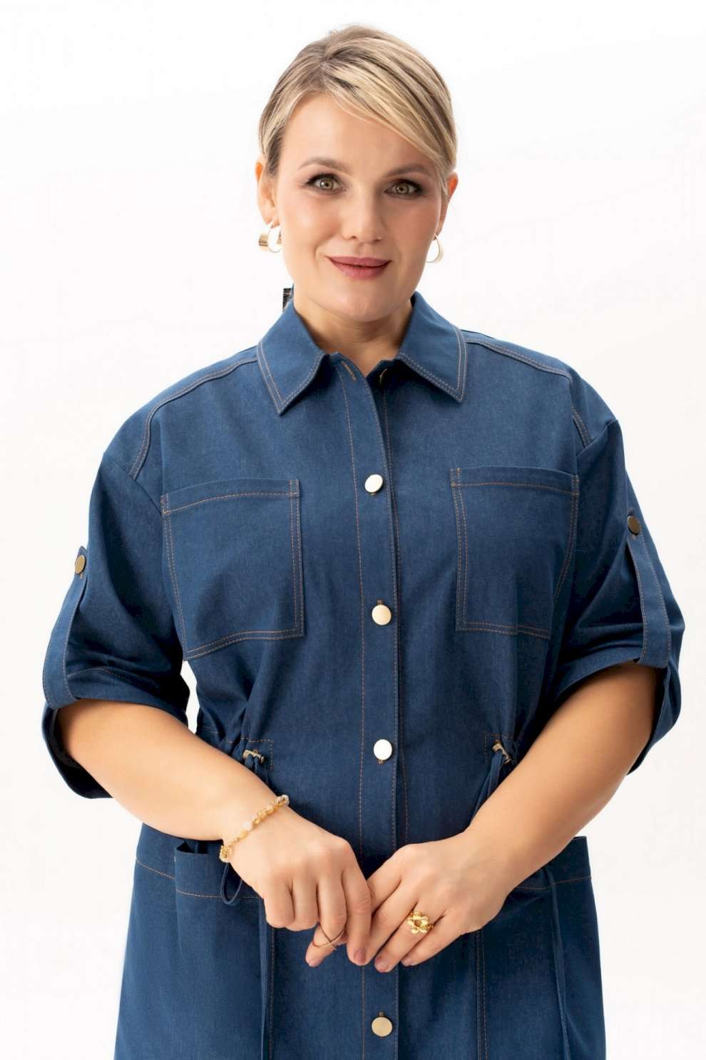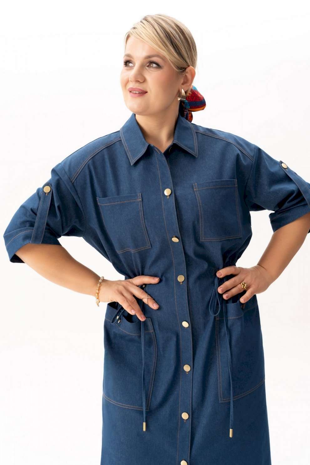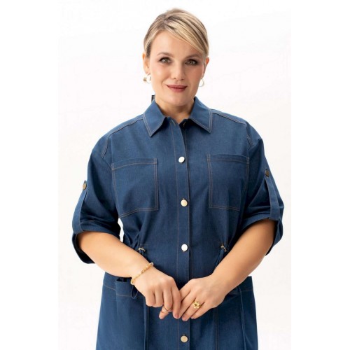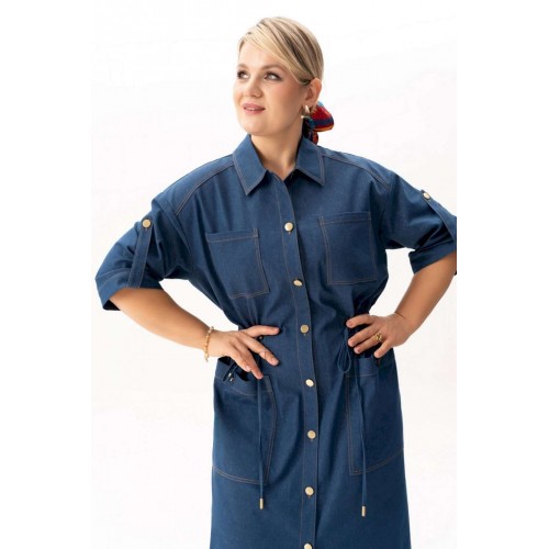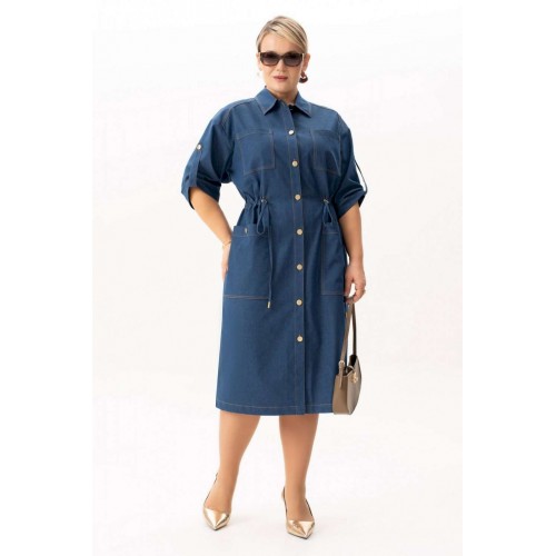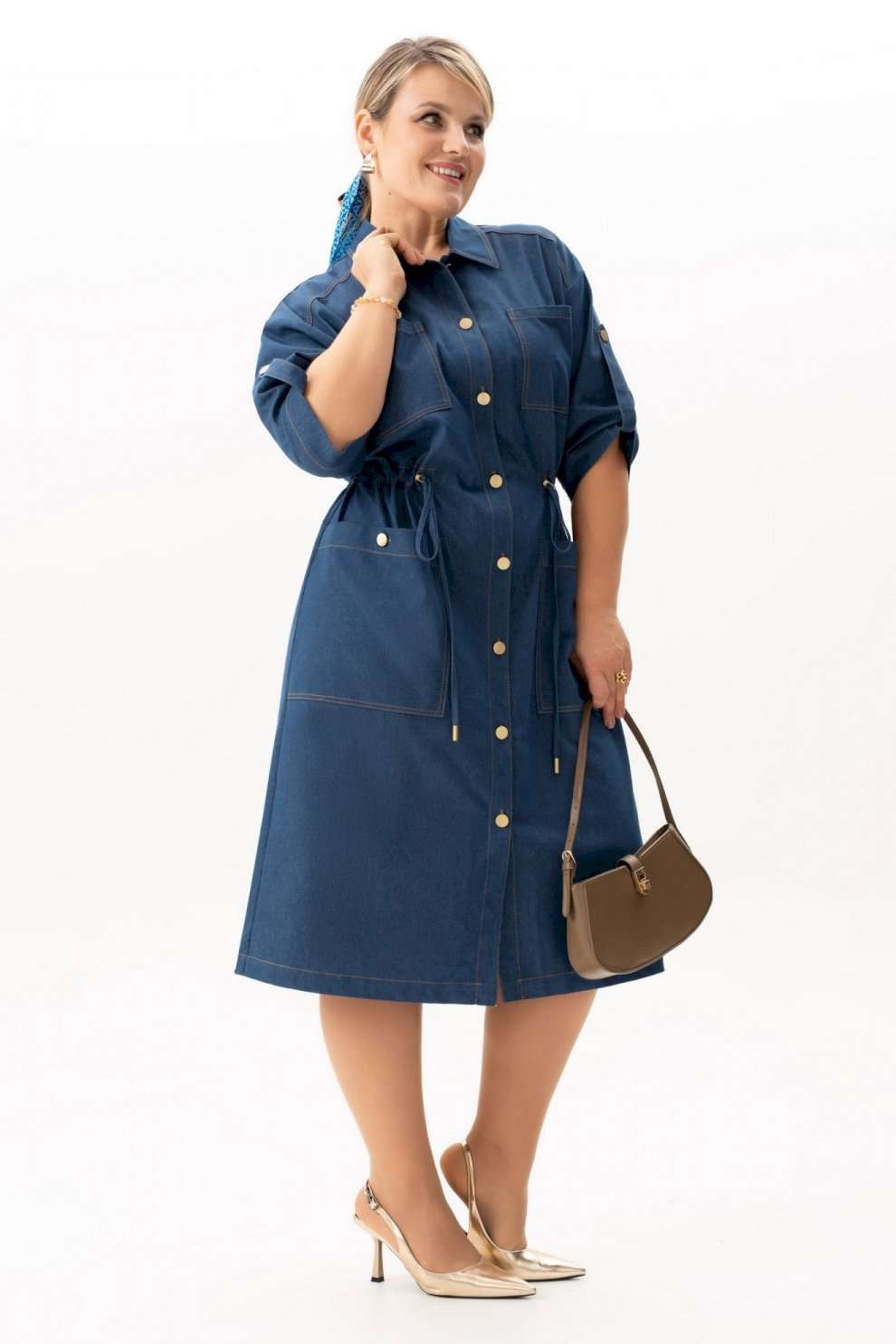 Платье 4138 Algranda — стильное джинсовое изделие из коллекции бренда Новелла Шарм. Выполнено из легкого хлопка с добавлением вискозы и спандекса, что обеспечивает комфорт в течение всего дня. Платье миди длины 115 см, с фасоном рубашечного типа, подходит для весенних и летних сезонов. Элегантный крой с регулировкой на поясе кулиской скрывает недостатки фигуры, добавляя стройности. Карманы добавляют практичности, а рукава с патами позволяют регулировать длину. Сочетание с воротником и декоративной кокеткой создает классический образ для работы и вечерних выходов. Универсальный синий цвет изделия легко комбинируется с аксессуарами.