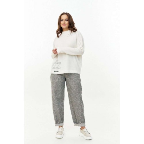 Джемпер из мягкого ворсистого трикотажа, свободного силуэта, спущенной линией плеча и горловиной стойкой. Рукав длинный. Перед изделия декорирован авторской вышивкой.