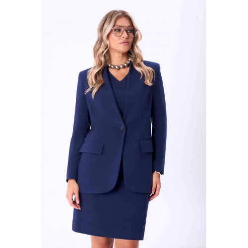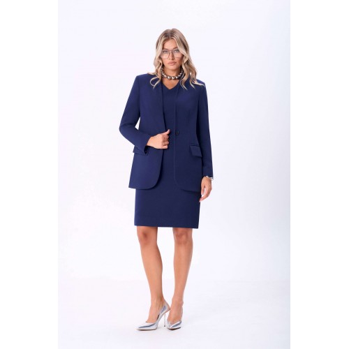 Костюм женский, состоящий из платья и жакета. Платье прилегающего силуэта на подкладке. Спереди с рельефами, переходящими в вытачки. Спинка со средним швом, переходящим в шлицу. Рукав одношовный втачной. Жакет прилегающего силуэта на подкладке. По переду жакета рельефы, выходящие из проймы Спинка со средним швом и рельефами.