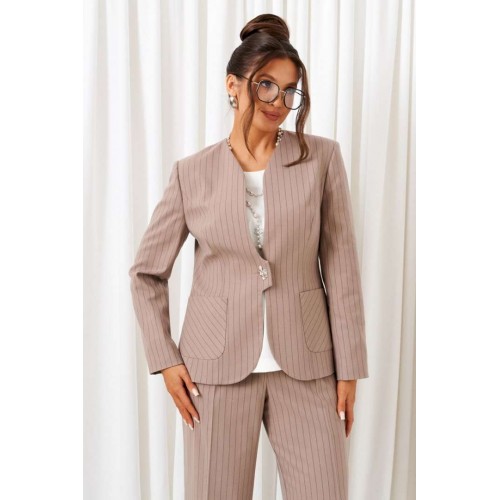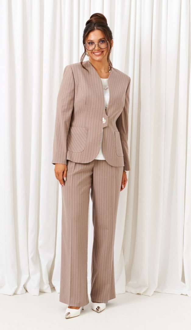 BEAUTIFUL-FREE 6416 полоска капучино Костюм брючный