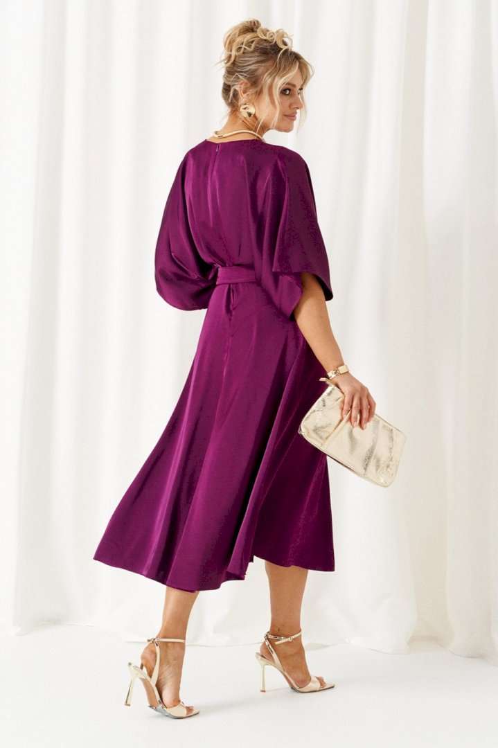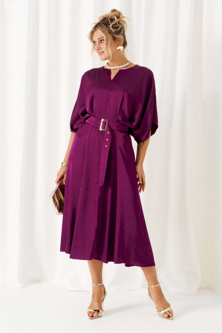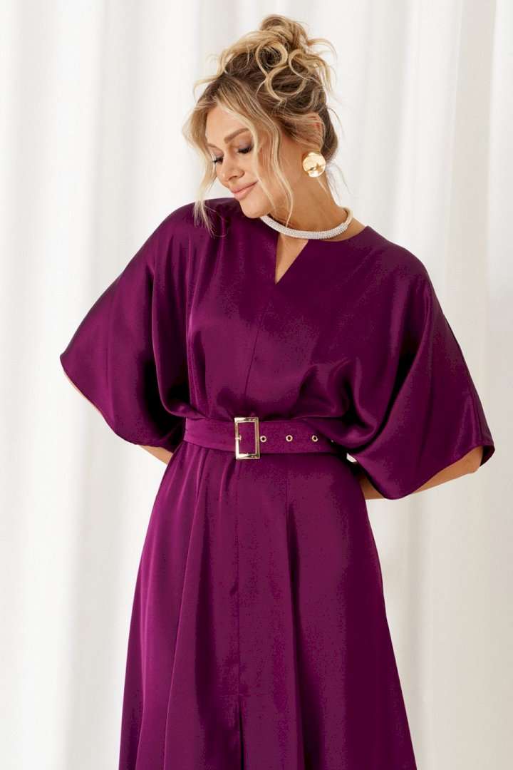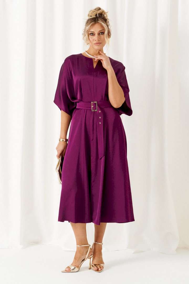 Мы представляем вашему вниманию легкое, нарядное, элегантное платье. Данная модель будет уместна для деловой встречи, а также для неформальных мероприятий разного рода. Платье женское, в нарядно-романтическом стиле; отрезное по линии талии; выполнено из лёгкой, струящейся плательной ткани. Передняя верхняя часть платья разрезная по среднему шву, в верхней части которого расположен небольшой треугольный разрез. Спинка разрезная по среднему шву, в который вставлена длинная, потайная молния. Конструкция верхней части платья выполнена в свободном стиле со спущенной линией плеча и глубокими складками на линии талии. Нижняя, передняя часть платья свободного кроя, состоит из 4-х клиньев с центральным разрезом спереди. Задняя, нижняя часть состоит из 2-х клиньев. Горловина округлой формы. Рукав цельнокроеный, объёмный, со спущенной линией плеча. В комплекте к платью прилагается широкий пояс на пряжке. Длина изделия по спинке: 124см. Длина рукава: 40-42 см.