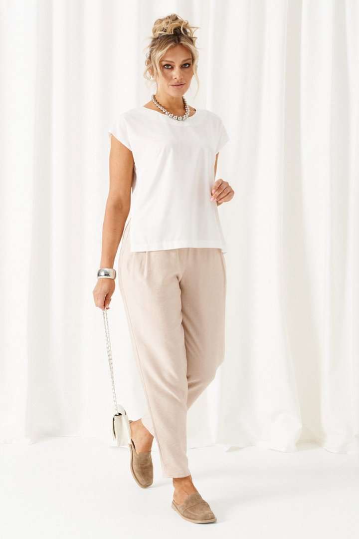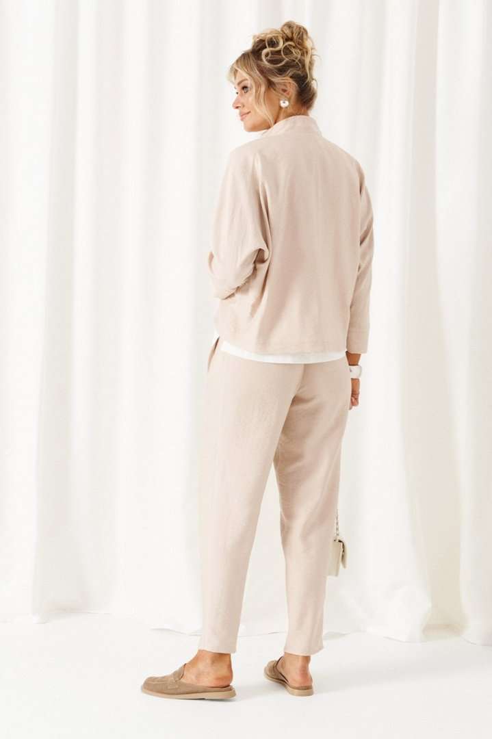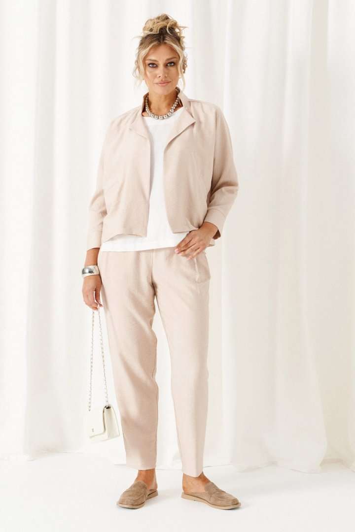 Состав: жакет, брюки – лен 80%; вискоза 20%, блузка – пэ 68%, вискоза 27%; спандекс 5%