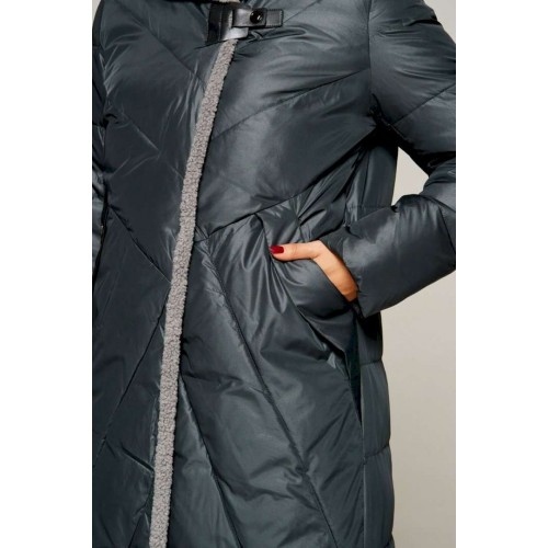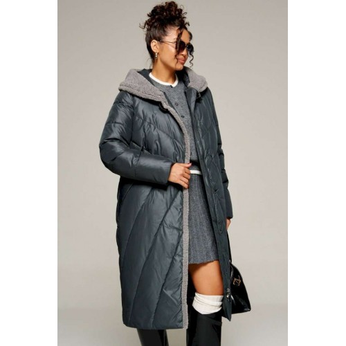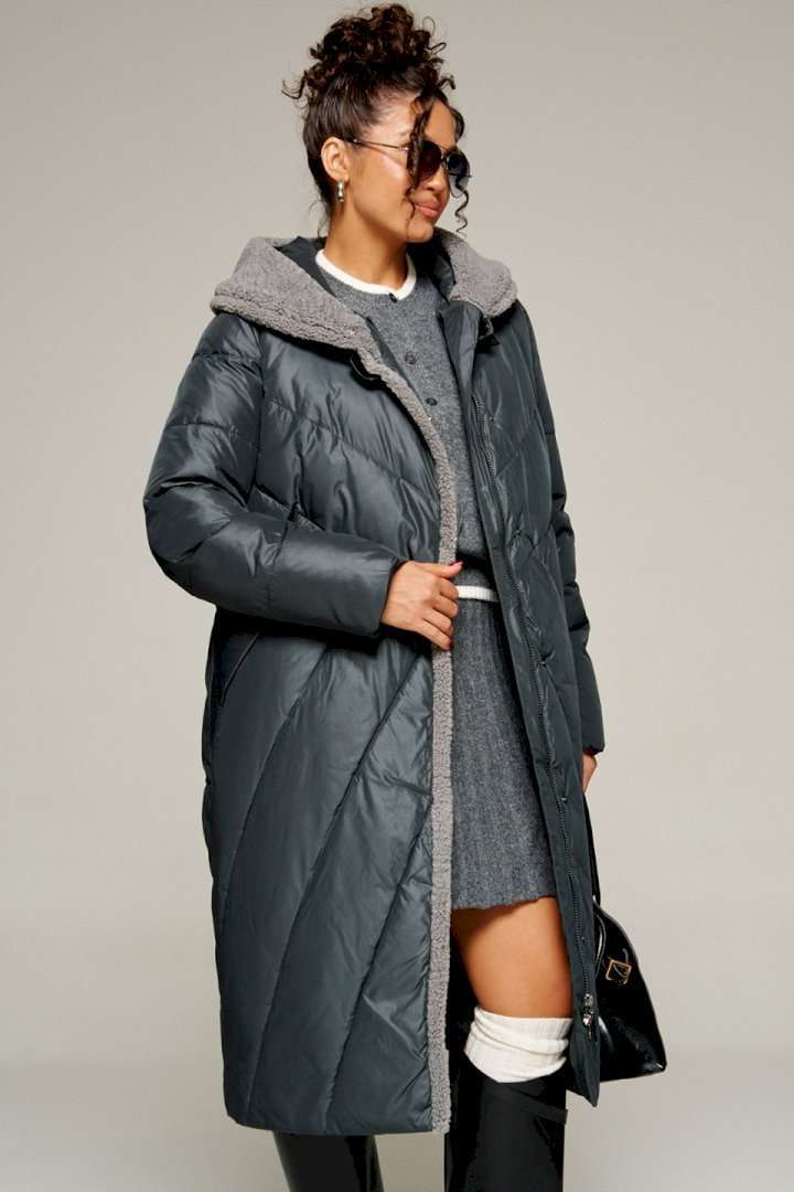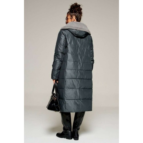 Зимнее, стеганое полупальто прямого силуэта для ценителей стиля и практичности. Это отличное сочетание современных материалов и точного кроя. Лёгкое, удобное и классическое пальто подходит для холодных дней, обеспечивая тепло и комфорт в холодную погоду. Идеально сочетает в себе сдержанность и расслабленность, универсальность и гармоничность. Пальто выполнено из прочной, влагостойкой и приятной на ощупь полиэстерной ткани; на синтетической подкладке. Утеплитель холлофайбер 250 г/м. кв. предназначен для использования изделия при температурном режиме от -10 до -25 градусов. Модель прямого силуэта, базового кроя; предназначена для повседневной носки. Перед с симметричными боковыми карманами с широким отворотом, фиксируемые на кнопку. С правой стороны на отвороте прикреплен отделочный элемент. Спинка с боковыми рельефами от проймы. Рукав длинный втачной двухшовный. По низу внутри рукава предусмотрена дополнительная вставка в виде притачной трикотажной манжеты. Капюшон умеренного объема. По периметру капюшона с внешней стороны выполнена оторочка из искусственного меха «овчина», переходящая на правый борт, которая создаёт дополнительное тепло и защиту от ветра и холода. Застежка центральная на двустороннюю молнию от верха до низа и кнопки. Под капюшоном спереди настрочен дополнительный элемент застежки из экокожи. Низ изделия ровный. Подкладка гладкая с наличием внутреннего кармана слева. Длина (по среднему шву спинки) ~ 110 см. (+2 см.) Длина рукава ~ 65 см. (+1.5 см.) С учетом плюсовых прибавок подходит на рост 170 см.