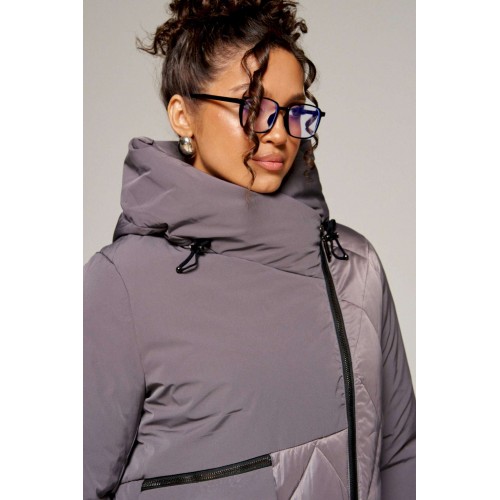 Наше теплое пальто— идеальный выбор для инвестиции в гардероб. Силуэт эффектно подчёркивает фигуру, а в меру свободный крой не сковывает движений. Благодаря качественному утеплителю пальто отлично согревает, а его цветовая гамма отвечает всем актуальным направлениям моды. Пальто выполнено из прочной, влагостойкой и приятной на ощупь полиэстерной ткани; на синтетической подкладке. Утеплитель холлофайбер 200 г/м. кв. предназначен для использования изделия при температурном режиме от -10 до -20 градусов. Модель прямого силуэта, базового кроя; предназначена для повседневной носки. Перед асимметричный. С правой стороны расположены кокетка и вертикальный подрез от неё. В кокетку вставлена декоративная молния и клапан с пришивным отделочным элементом. На центральной правой части переда расположен боковой прорезной карман с обтачкой. С левой стороны – два вертикальных рельефа: от плеча (в который вставлена часть молнии) и от проймы, а также боковой прорезной карман на молнии с декоративным фиксатором. Центральные части переда выполнены из отделочной стеганой ткани с блеском аналогичного оттенка с цветом изделия. Спинка с широкой кокеткой, заканчивающейся мягкой складкой и двумя боковыми вертикальными рельефами от кокетки. Рукав втачной длинный двухшовный. По низу внутри рукава предусмотрена дополнительная вставка в виде притачной трикотажной манжеты. Капюшон умеренного объема, застегивающийся спереди. По периметру капюшона вставлен шнур с декоративными фиксаторами. Застежка смещенная на двустороннюю молнию от верха до низа. Низ изделия ровный. Для удобства движения внизу в боковых швах предусмотрены небольшие разрезы. Подкладка гладкая с наличием внутреннего кармана слева. Длина (по среднему шву спинки) ~ 107 см. (+2 см.) Длина рукава ~ 65,5 см. (+1.5 см.) С учетом плюсовых прибавок подходит на рост 170 см.