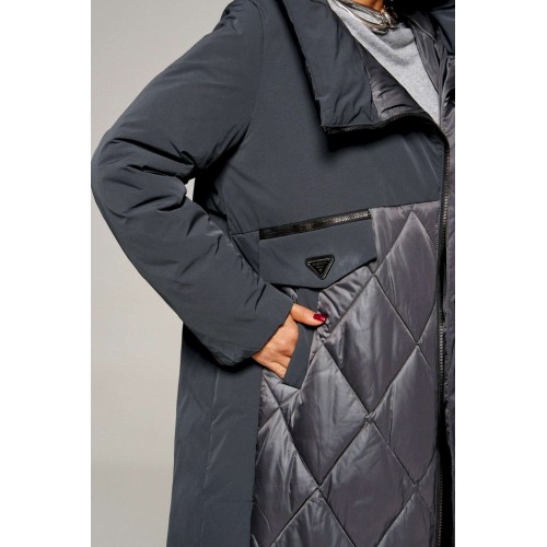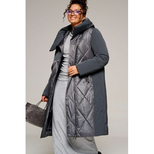 Наше теплое пальто— идеальный выбор для инвестиции в гардероб. Силуэт эффектно подчёркивает фигуру, а в меру свободный крой не сковывает движений. Благодаря качественному утеплителю пальто отлично согревает, а его цветовая гамма отвечает всем актуальным направлениям моды. Пальто выполнено из прочной, влагостойкой и приятной на ощупь полиэстерной ткани; на синтетической подкладке. Утеплитель холлофайбер 200 г/м. кв. предназначен для использования изделия при температурном режиме от -10 до -20 градусов. Модель прямого силуэта, базового кроя; предназначена для повседневной носки. Перед асимметричный. С правой стороны расположены кокетка и вертикальный подрез от неё. В кокетку вставлена декоративная молния и клапан с пришивным отделочным элементом. На центральной правой части переда расположен боковой прорезной карман с обтачкой. С левой стороны – два вертикальных рельефа: от плеча (в который вставлена часть молнии) и от проймы, а также боковой прорезной карман на молнии с декоративным фиксатором. Центральные части переда выполнены из отделочной стеганой ткани с блеском аналогичного оттенка с цветом изделия. Спинка с широкой кокеткой, заканчивающейся мягкой складкой и двумя боковыми вертикальными рельефами от кокетки. Рукав втачной длинный двухшовный. По низу внутри рукава предусмотрена дополнительная вставка в виде притачной трикотажной манжеты. Капюшон умеренного объема, застегивающийся спереди. По периметру капюшона вставлен шнур с декоративными фиксаторами. Застежка смещенная на двустороннюю молнию от верха до низа. Низ изделия ровный. Для удобства движения внизу в боковых швах предусмотрены небольшие разрезы. Подкладка гладкая с наличием внутреннего кармана слева. Длина (по среднему шву спинки) ~ 107 см. (+2 см.) Длина рукава ~ 65,5 см. (+1.5 см.) С учетом плюсовых прибавок подходит на рост 170 см.