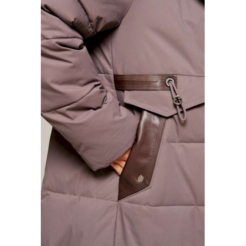 Зимнее, стеганое полупальто прямого силуэта для ценителей стиля и практичности. Это отличное сочетание современных материалов и точного кроя. Лёгкое, удобное и классическое пальто подходит для холодных дней, обеспечивая тепло и комфорт в холодную погоду. Идеально сочетает в себе сдержанность и расслабленность, универсальность и гармоничность. Пальто выполнено из прочной, влагостойкой и приятной на ощупь полиэстерной ткани; на синтетической подкладке. Утеплитель холлофайбер 250 г/м. кв. предназначен для использования изделия при температурном режиме от -10 до -25 градусов. Модель прямого силуэта, базового кроя; предназначена для повседневной носки. Перед с подрезной кокеткой на уровне талии и симметричными декоративными клапанами от неё, а также с боковыми прорезными карманами с клапанами из экокожи, фиксируемые на кнопку. Спинка цельнокроеная с вертикальными рельефами от проймы. Рукав длинный втачной двухшовный. По низу внутри рукава предусмотрена дополнительная вставка в виде притачной трикотажной манжеты. Капюшон с застежкой спереди умеренного объема. Внутренняя часть капюшона выполнена из искусственного меха, который выполняет декоративную и защитную функции, создавая дополнительное тепло и защиту от ветра и холода. Застежка центральная на двустороннюю молнию от верха до низа под ветрозащитной планкой и кнопки по краю борта. Низ изделия ровный. На уровне талии расположена кулиса с продетым шнуром в цвет изделия и декоративными металлическими фиксаторами. Видимая часть кулисы спереди выполнена из экокожи. Подкладка гладкая с наличием внутреннего кармана слева. Длина (по среднему шву спинки) ~ 101 см. (+2 см.) Длина рукава ~ 65 см. (+1.5 см.) С учетом плюсовых прибавок подходит на рост 170 см.