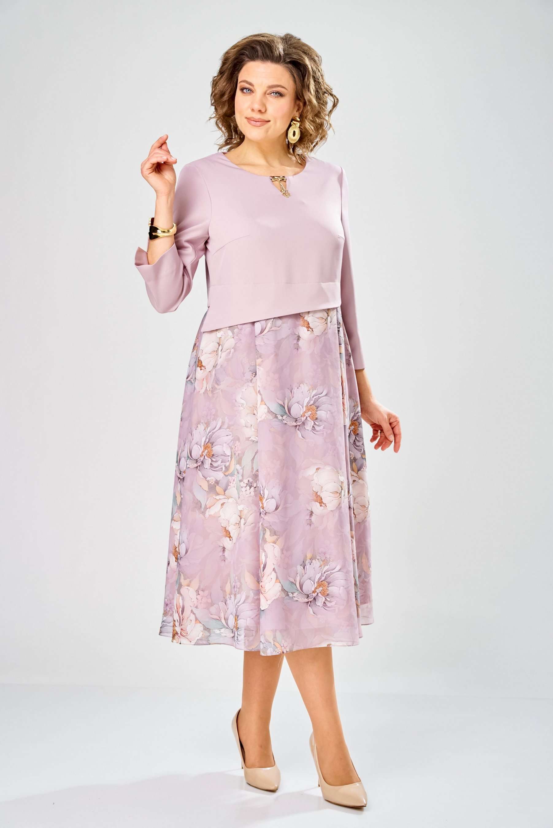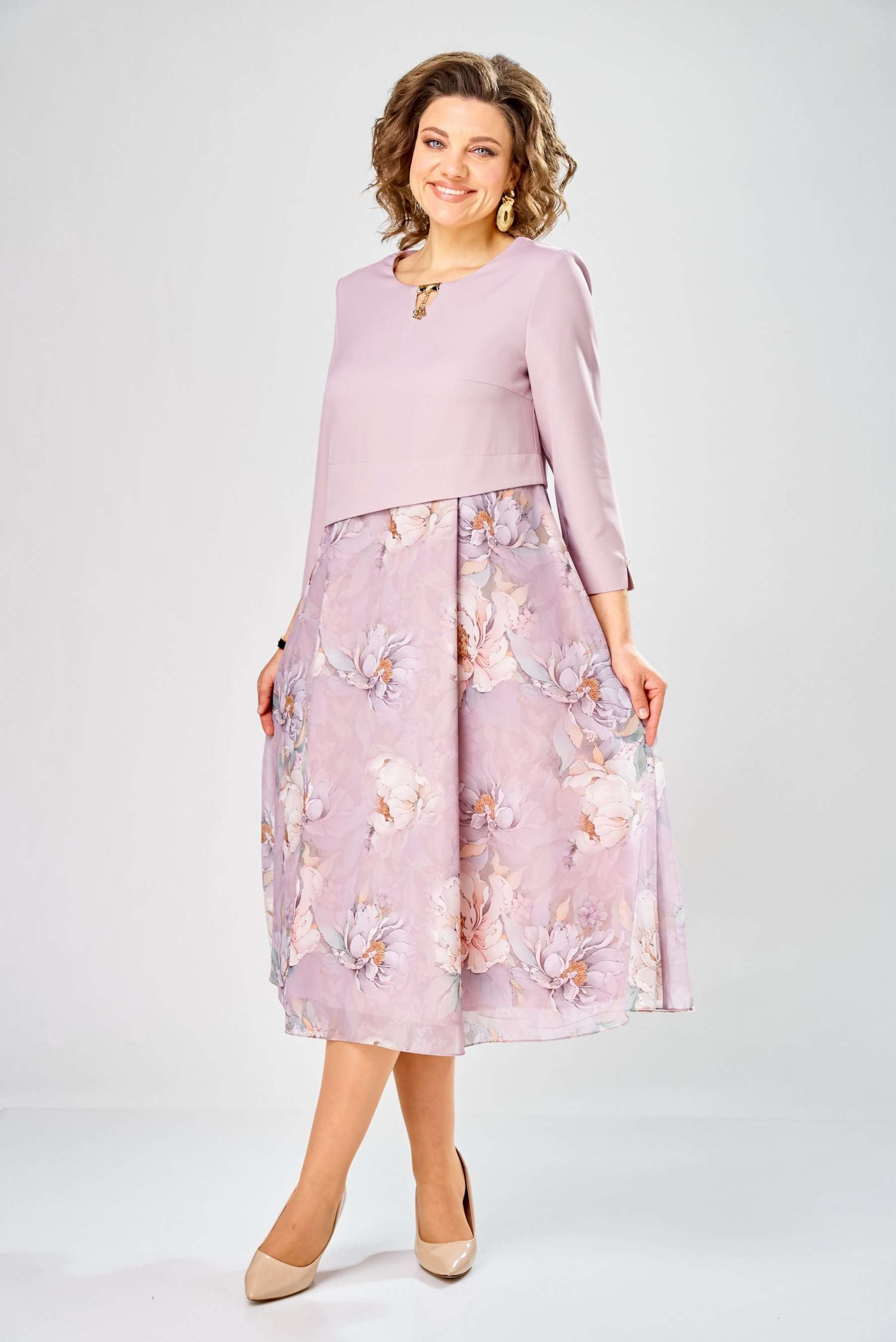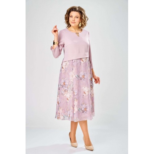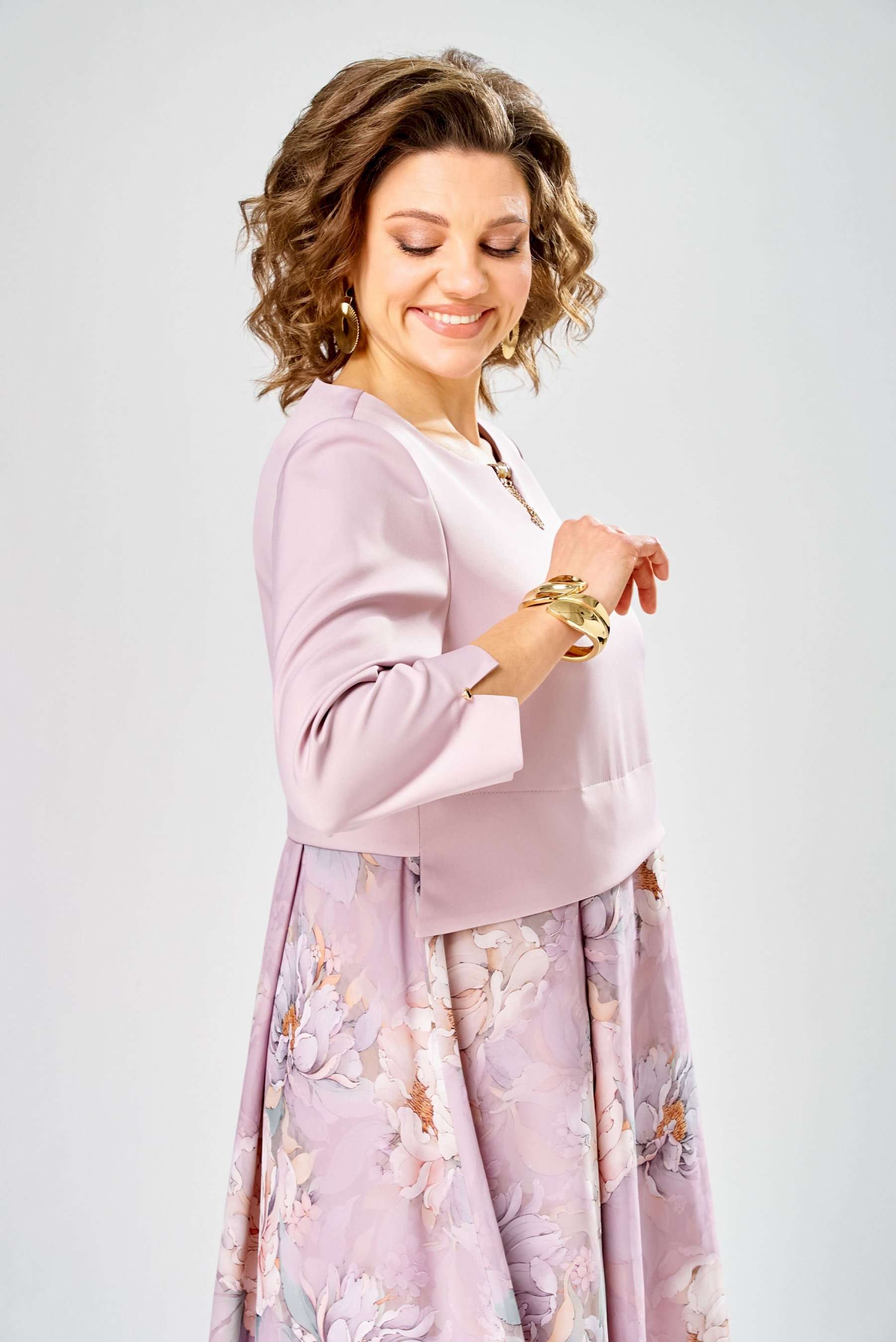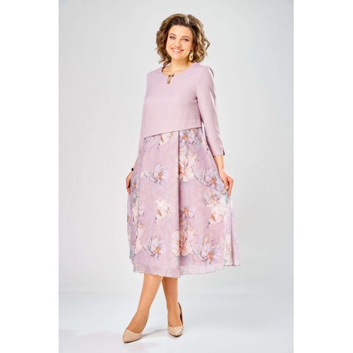 Элегантное женское платье, выполнено из двух видов ткани. Лиф из плательной ткани, горловина круглая с декоративным элементом по центру, по низу лифа ответная складка, по переду низ асимметричный, рукава втачные, по низу декоративный элемент с пуговицей. Юбка платья из шифона, расширенная со складками, на подкладке. Длина платья – 113 см Длина рукава – 50 см