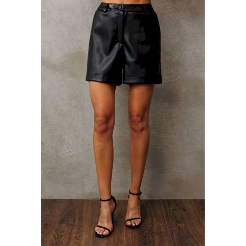Эти стильные короткие шорты из экологической кожи черного цвета — идеальный выбор для современного гардероба. Модель на притачном поясе с шлевками предлагает классический крой с застежкой-гульфик и петлей-пуговицей для удобства и надежности. Шорты оснащены удобными карманами в боковых швах с наклонным входом спереди и элегантной вытачкой на спинке от пояса, что добавляет изделию аккуратности и женственности в силуэте.