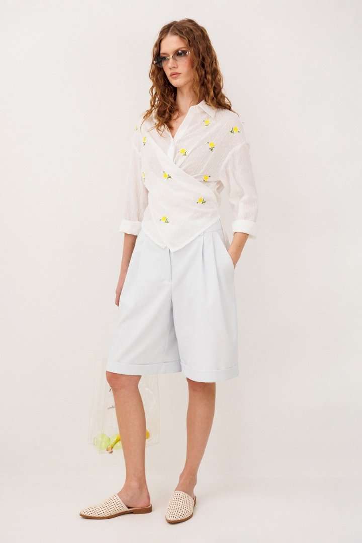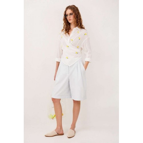 Шорты 3306 голубой BUTER станут стильным дополнением вашего летнего гардероба. Коллекция бренда BUTER предлагает бермуды, выполненные из сочетания полиэстера, вискозы и льна, обеспечивающего комфорт и легкость в носке. Их голубой цвет добавляет свежести образу, а строгий крой с притачным поясом на пуговице и манжетами придаёт элегантность. Две складки и карманы с наклонным входом делают модель функциональной и современной. Шорты идеальны для повседневного или делового стиля, подходящие для весенне-летнего сезона.