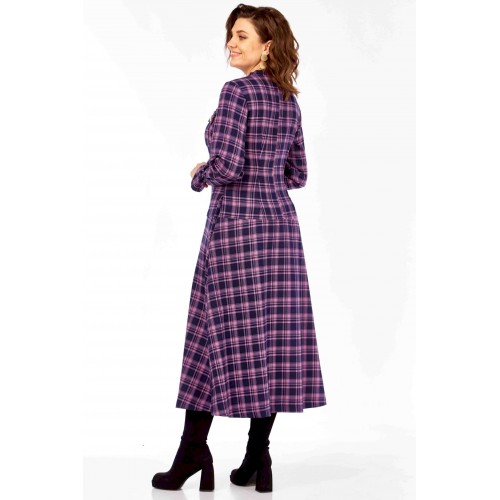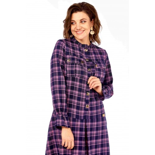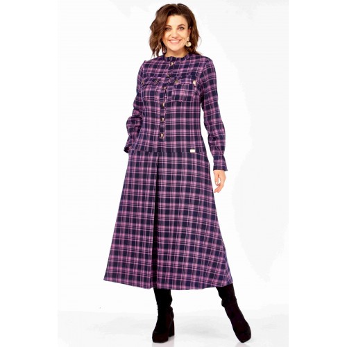 Это платье —ода динамичной женственности и смелой интерпретации классики. Традиционный шотландский тартан, обычно ассоциирующийся с строгостью и консерватизмом, здесь преображен благодаря «дерзкой» цветовой палитре Фасон платья сочетает элегантность и функциональность: строгий воротник-стойка и золотистые кнопки на накладных карманах придают образу решительности и характера, в то время как расклешенная юбка и мягкие, собранные манжеты добавляют игривости, женственности и легкости в движении. Это платье для женщины, которая не боится выделяться, любит эксперименты со стилем и ценит комфорт, не жертвуя элегантностью. Образ излучает уверенность, яркость и индивидуальность. Это женщина, которая может быть одновременно строгой и очаровательной, энергичной и изысканной. Платье А- силуэта в клетку из качественной натуральной ткани (шерсть и хлопок) от Celentano. Воротник-стойка, по полочке и спинке идет подрез чуть ниже линии талии, от которого на полочке выполнена встречная складка. Полочка с центральной застежкой на кнопки, нагрудными вытачками и карманами-хулиганами. Спинка с центральным швом и таллиевыми вытачками. Рукав втачной одношовныйа на конце манжета с легкой сборкой . Кнопки на платье металлические. Длина изделия по спинке 120 см., длина рукава 62 см.