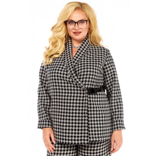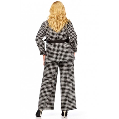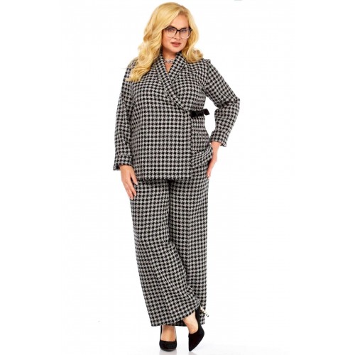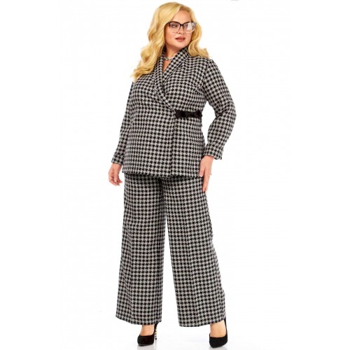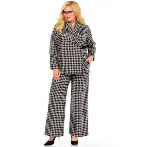 Слияние стихий: костюм, рожденный из гармонии комфорта и безупречного кроя. • Сердце костюма - смесовая ткань (шерсть 60%, хлопок 40%). Теплая шерсть в сочетании с нежным, дышащим хлопком, позволяет Вам чувствовать себя комфортно в любую погоду. Ткань соответствует самым высоким требованиям ГОСТ, гарантируя долговечность и безупречный внешний вид. • Жакет на запах: это не просто элемент одежды, это инструмент для создания вашего неповторимого силуэта. Регулируйте запах, подчеркивая талию и создавая тот образ, который вам необходим сегодня. Мягкая линия плеча и элегантный воротник подчеркивают женственность и изящество. Конструкция жакета продумана до мелочей: полуприлегающий силуэт, шалевый воротник, вытачки - все это создает элегантный и женственный образ. Отсутствие застежки компенсируется гарусной лентой, которая, фиксирует запах и позволяет вам регулировать степень прилегания жакета к фигуре. • Брюки-палаццо: прямой, расширенный от бедра силуэт, высокая посадка и струящаяся ткань. Пояс притачной, сзади на резинке, с застежкой на пуговицу и молнию, карманы-хулиганы – эти брюки созданы для того, чтобы вы чувствовали себя комфортно и уверенно в любой ситуации. Они визуально удлиняют ноги и создают элегантный, современный силуэт. • Акцент на талии: пояс – это та самая деталь, которая делает образ завершенным и подчеркивает вашу женственность. Завяжите его игривым бантом или оставьте свободно ниспадающим – выбирайте тот вариант, который отражает ваше настроение. Длина жакета 72 см, рукав с учетом манжеты 62 см, манжета 12 см. Длина брюк по боковому шву с учетом пояса 106 см. Носите жакет и брюки вместе, создавая строгий и элегантный образ, или сочетайте их с другими элементами гардероба, экспериментируя и создавая свои неповторимые стили.