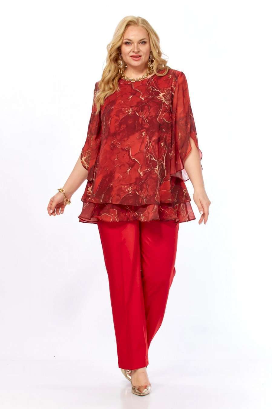 Состав: Блузка – полиэстер 100% (шифон). Брюки – полиэстер 50%, вискоза 50%