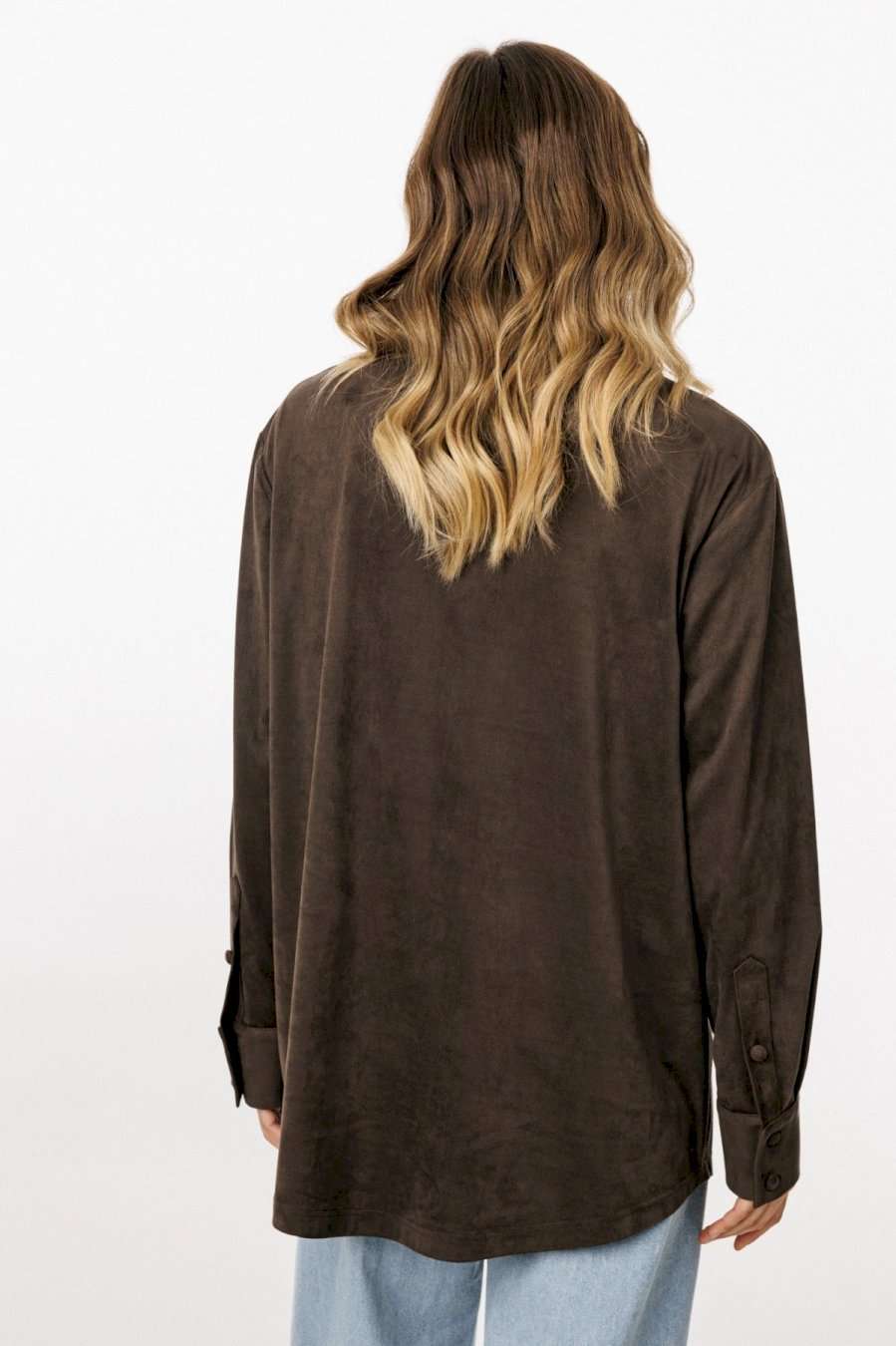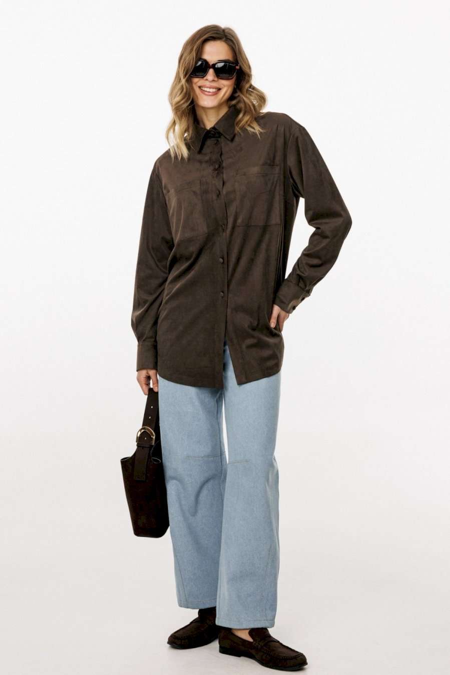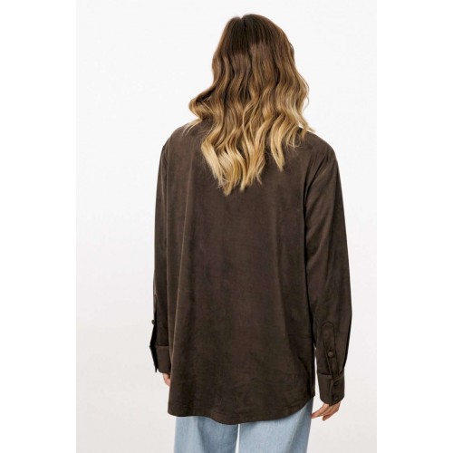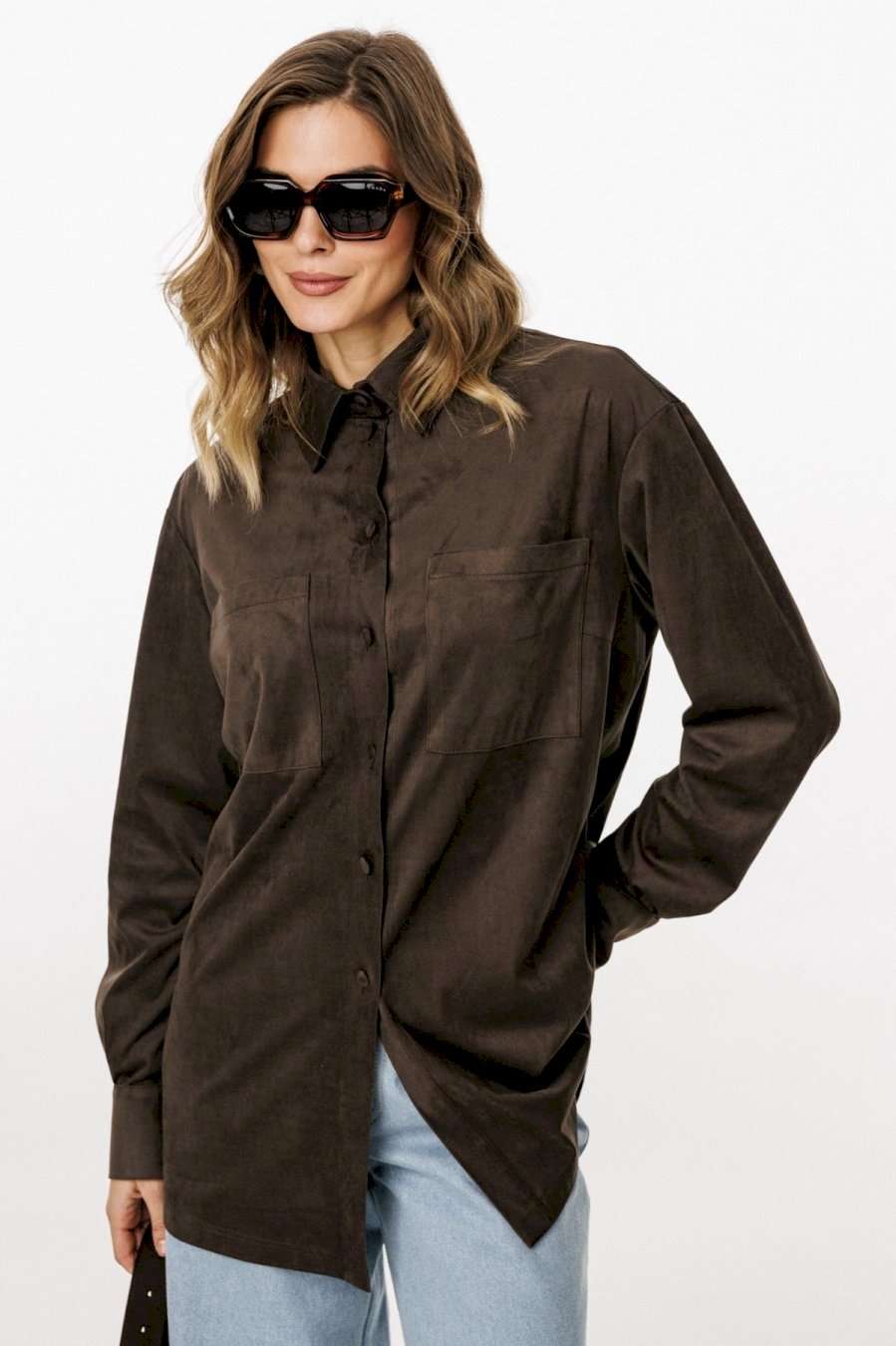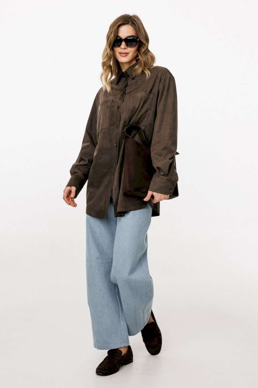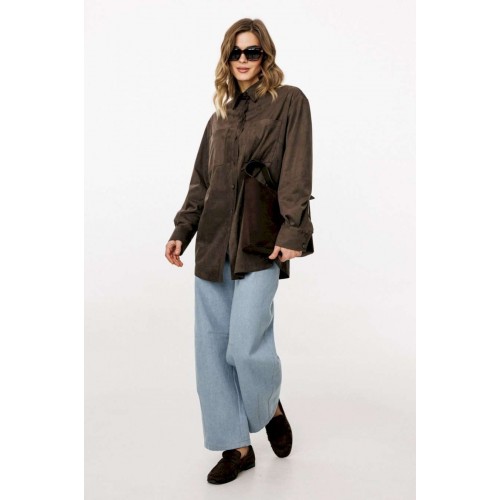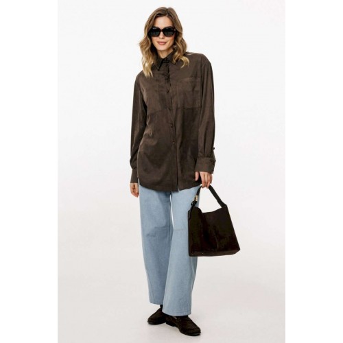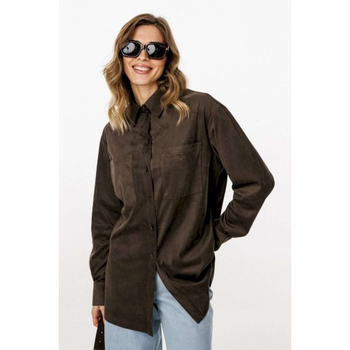Блузка выполнена из тонкой искусственной замши. Блузка прямого силуэта, длиной до линии бедер. Спереди нагрудные карманы и центральная застежка с планкой на пуговицы. Спинка цельная. Воротник стояче-отложной с отрезной стойкой. Рукав втачной, одношовный. Низ рукава на притачной манжете с застежкой на пуговицы. Низ блузки фигурной формы. Длина блузки: р. 44-48 - 76,5 см, р. 50-54 - 78 см. Длина рукава от горловины: р. 44-48 - 76 см, р. 50-54 - 77 см. БЛУЗКА м. 3051 44 46 48 50 52 54 Длина по центру спинки 76,5 76,5 76,5 78 78 78 Длина рукава от горловины 76 76 76 77 77 77 Объем по груди 112 116 12 124 128 132 Объем по талии 114 118 122 126 130 134 Объем по низу 114 118 122 126 130 134 Объем рукава вверху 37 39 41 41 43 45