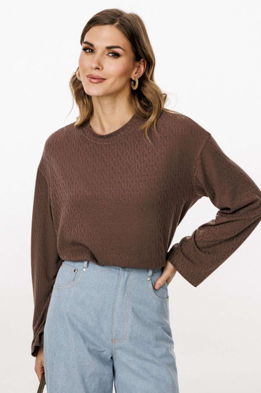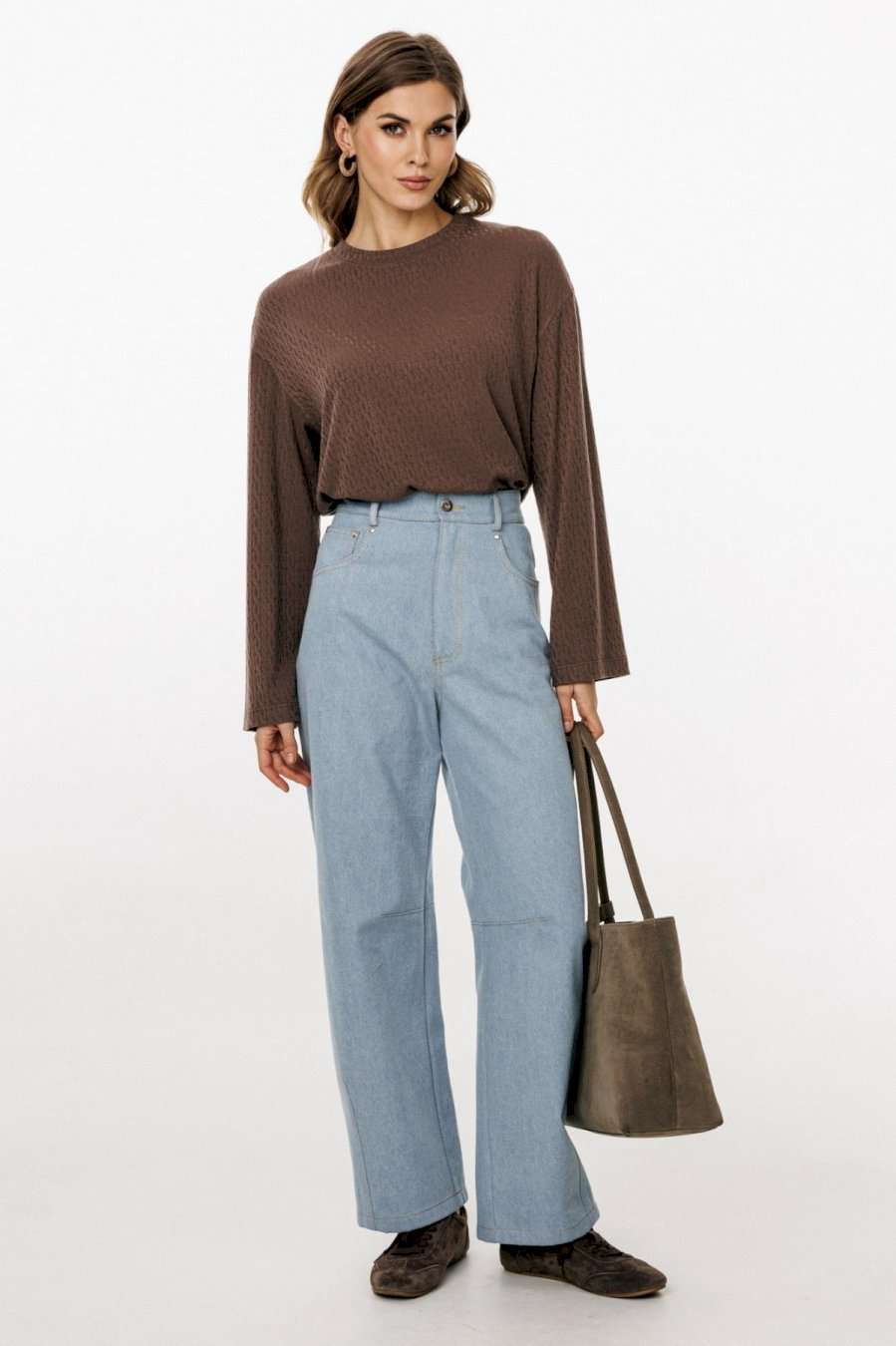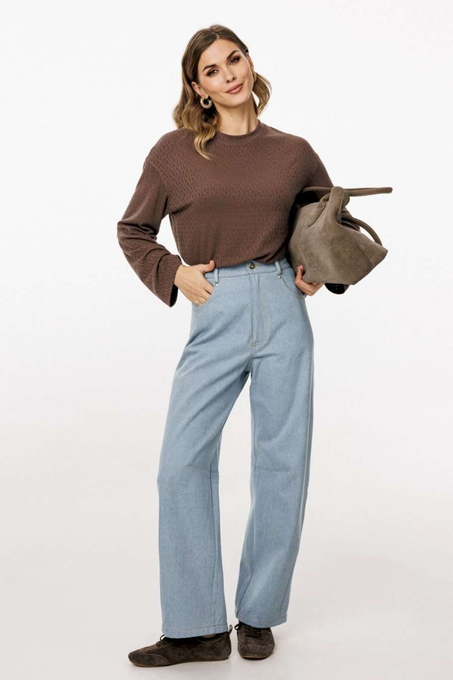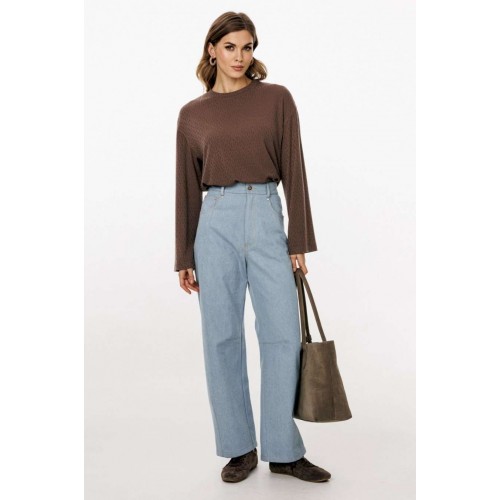 Джемпер выполнен из трикотажного полотна с рисунком. Джемпер прямого силуэта, длиной до линии бедра. Перед и спинка цельные. Горловина округлой формы, обработана широкой бейкой. Плечевой шов удлинен. Рукав одношовный, прямой. Длина джемпера: р.44-48 - 66 см, р.50-54 - 67 см. Длина рукава от горловины: р.44-48 - 73,5 см, р.50-54 - 74,5 см. ДЖЕМПЕР м. 3059 44 46 48 50 52 54 Длина по центру спинки 66 66 66 67 67 67 Длина рукава от горловины 73,5 73,5 73,5 74,5 74,5 74,5 Объем по груди 110 114 118 122 126 130 Объем по талии 109 113 117 121 125 129 Объем по низу 108 112 116 120 124 128 Объем рукава вверху 39 41 43 43 45 47 Объем рукава внизу 32 32 32 34 34 34
