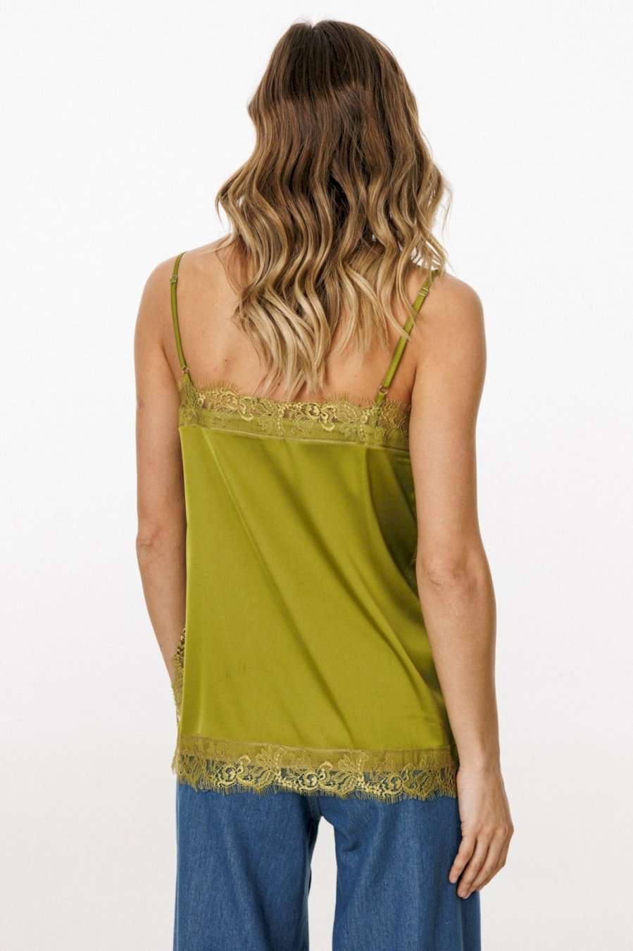 Топ выполнен из тонкого атласа. Топ прямого силуэта длиной выше линии бедер. По переду обработаны нагрудные вытачки. Топ на регулируемых бретелях из основной ткани. В боковых швах обработаны разрезы. Топ декорирован тесьмой-кружевом по горловинам переда и спинки, по боковым и по низу. Длина топа: р. 42-46 - 50 см, р. 48-52 - 52 см. ТОП м. 3064 42 44 46 48 50 52 Длина по центру спинки 50 50 50 52 52 52