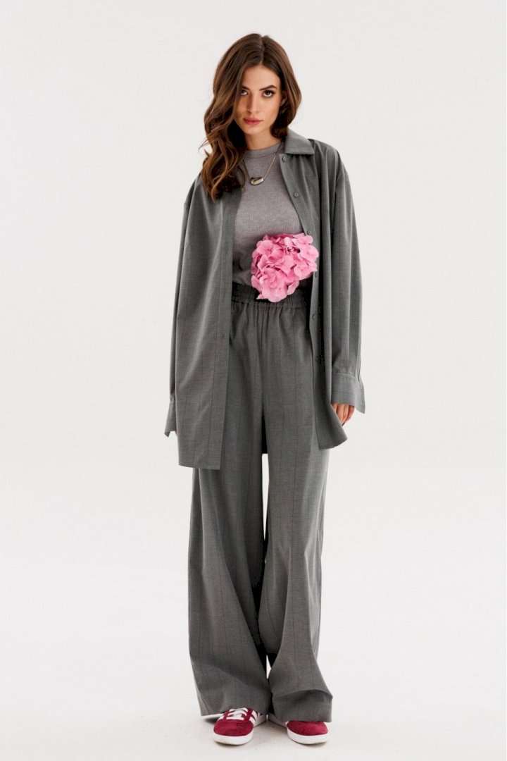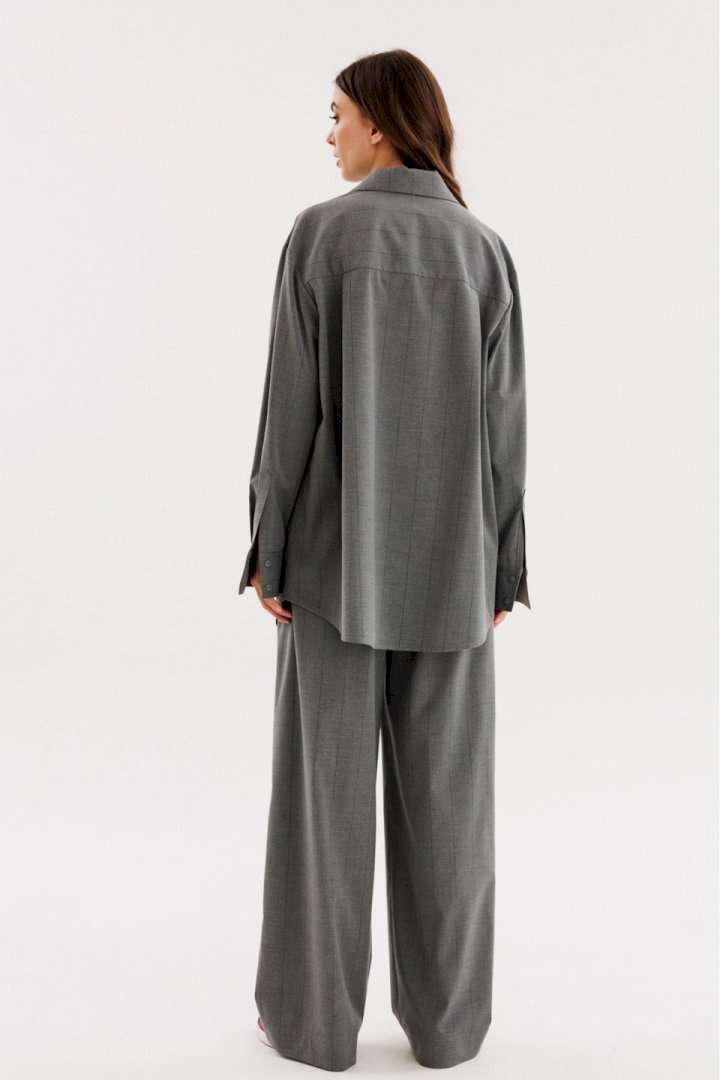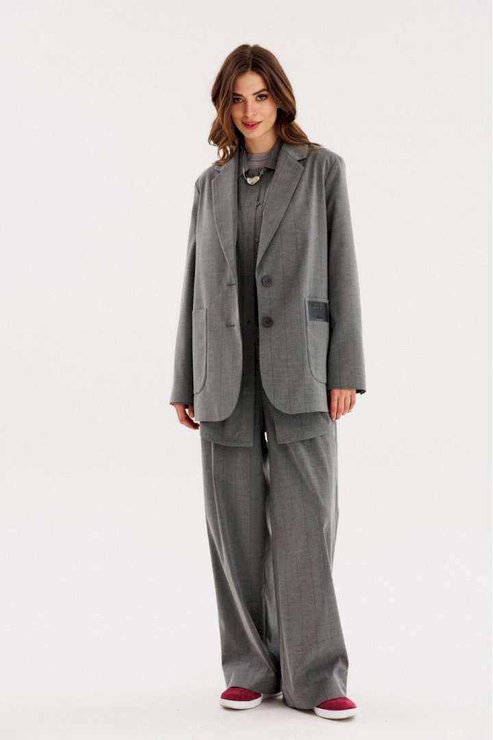 Брюки выполнены из костюмной ткани в полоску. Брюки прямого покроя длиной в пол, на притачном поясе с эластичной тесьмой. Спереди боковые карманы с наклонным входом. Пояс декорирован спереди брендированной нашивкой. Длина брюк: р. 44-48 - 112 см, р. 50-54 -113 см. Гарантийный срок не установлен. ГОСТ 25294-2003