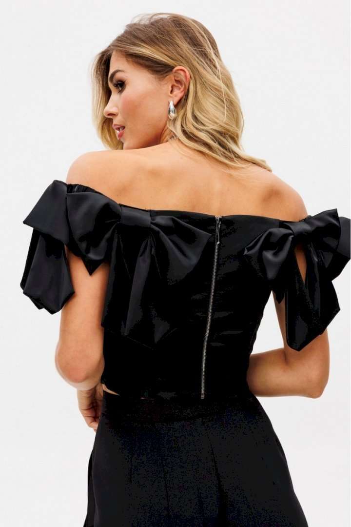 Топ выполнен из атласа. Топ выполнен в виде корсета, длиной до линии талии. Спереди рельефы. В рельефах и боковых швах регилин. На спинке рельефы и застежка на металлическую молнию. В пройме обработаны бретели на руку с эластичной тесьмой внутри. Топ декорирован бантами. Топ на притачной по низу подкладке. Длина топа: р. 42-46 - 28 см. Гарантийный срок не установлен ГОСТ 25294-2003