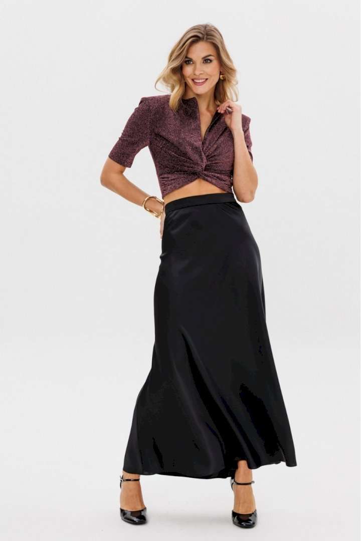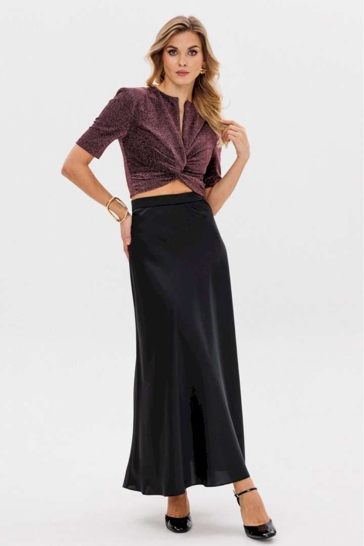 Блузка приталленного силуэта длиной до линии талии. Спереди средний шов с застежкой на потайную молнию, перекрут со сборками по боковым швам. Спинка цельная. Рукав втачной одношовный, длиной до лини локтя. Блузка с плечевыми накладками, на подкладке. Длина блузки -28 см. Длина рукава блузки - 27,5 см. Гарантийный срок не установлен ГОСТ 31409 - 2009
