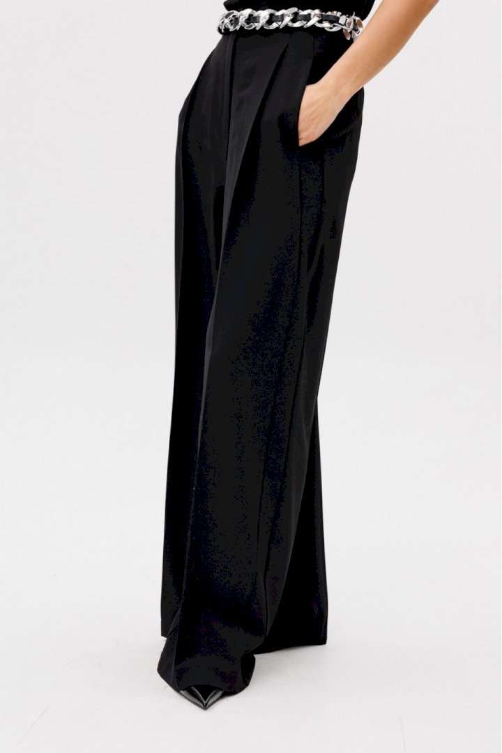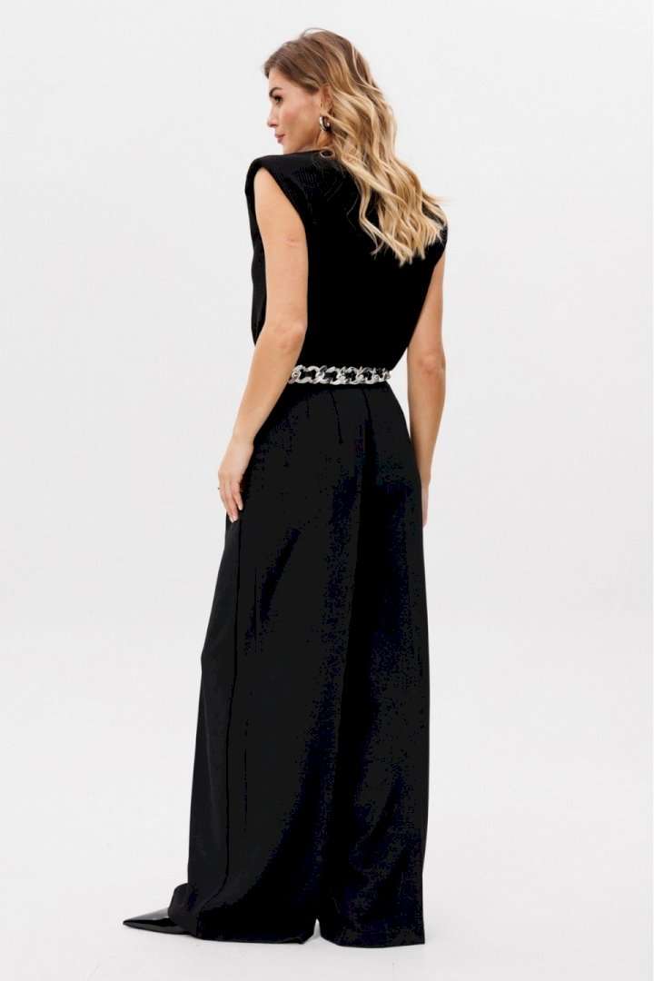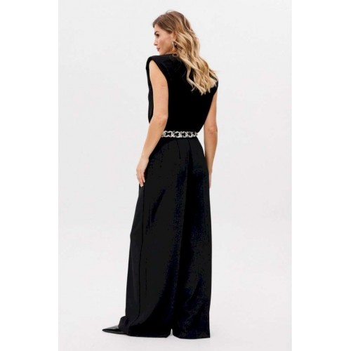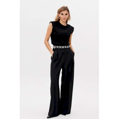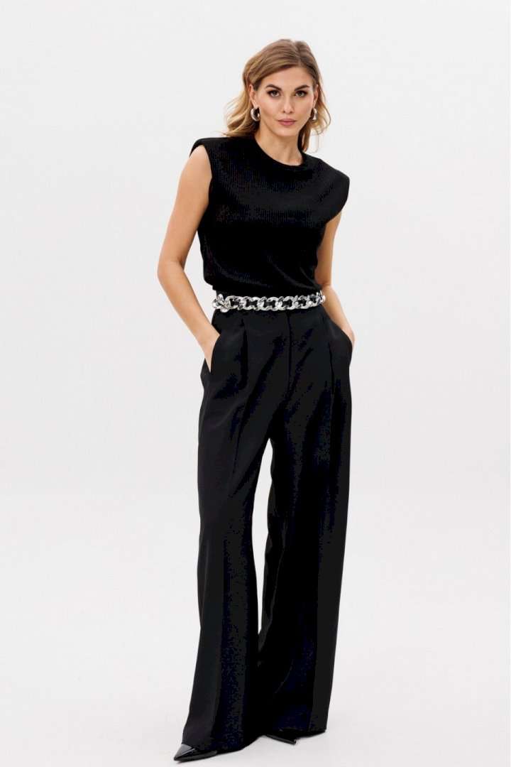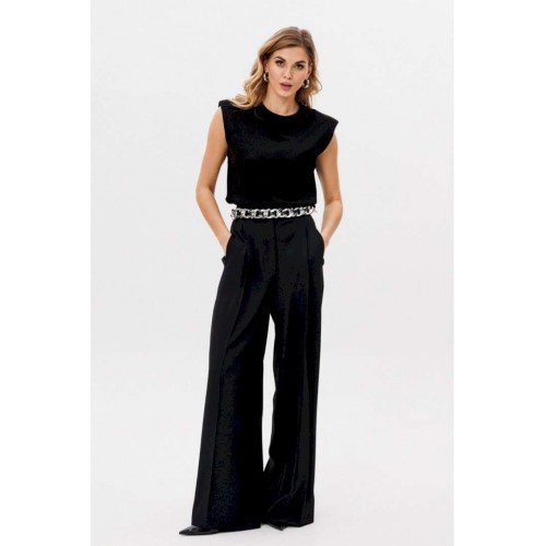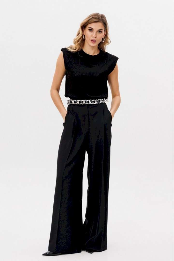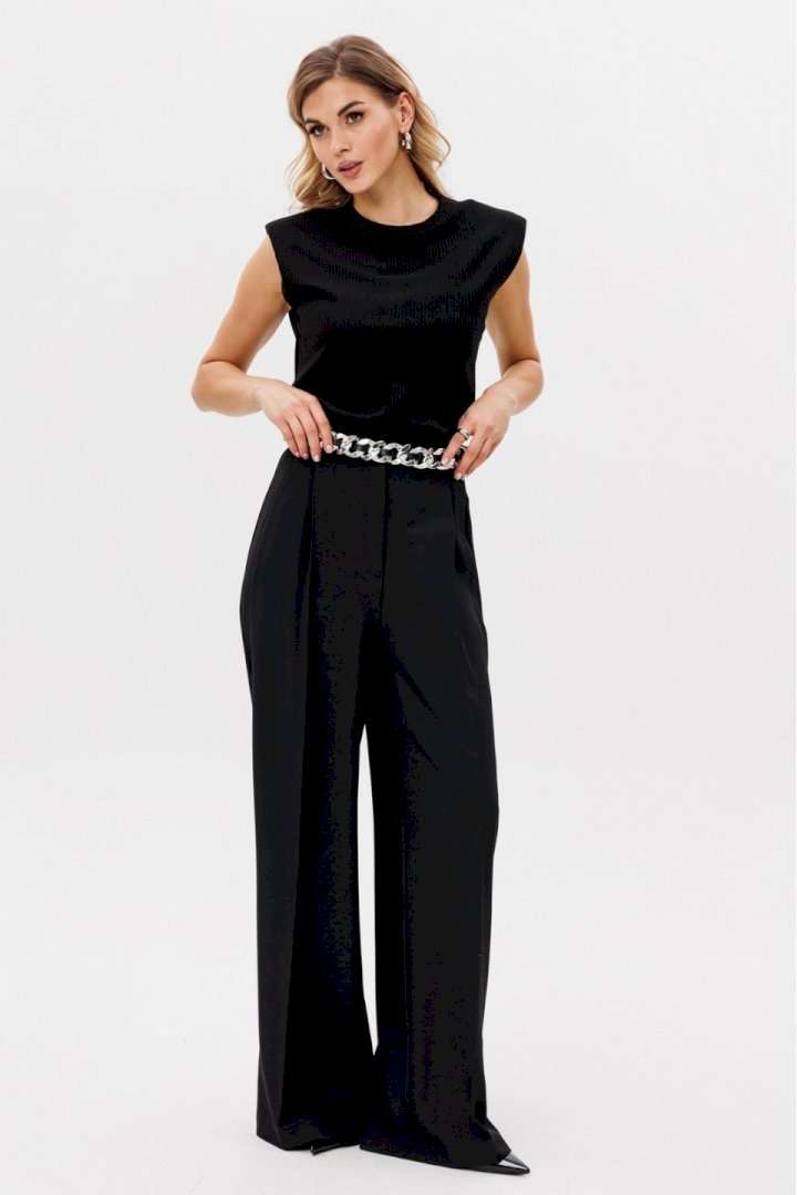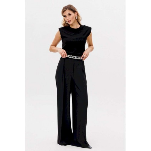Описание товара: Элегантные женские брюки-палаццо черного цвета. Данная модель изготовлена из качественной костюмной ткани, идеально сочетающей в себе стиль и комфорт. Приталенный пояс подчеркивает фигуру, а длинные прямые штанины визуально удлиняют силуэт. Брюки украшены боковыми лампасами, добавляющими изысканности. Практичные складки и боковые карманы обеспечивают удобство ношения. Застежка на молнию спереди обеспечивает легкость использования. Брюки идеально смотрятся как в офисе, так и при создании вечернего образа. Длина брюк вместе с поясом составляет 114 см. Продукция соответствует ГОСТ 25294 - 2003. Гарантийный срок не установлен. Эта модель является идеальным выбором для создания элегантного и одновременно комфортного образа.