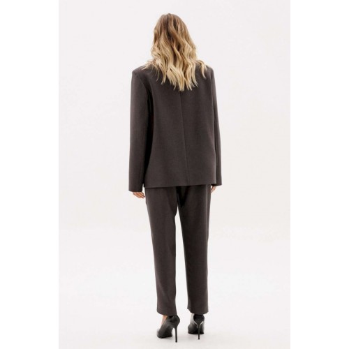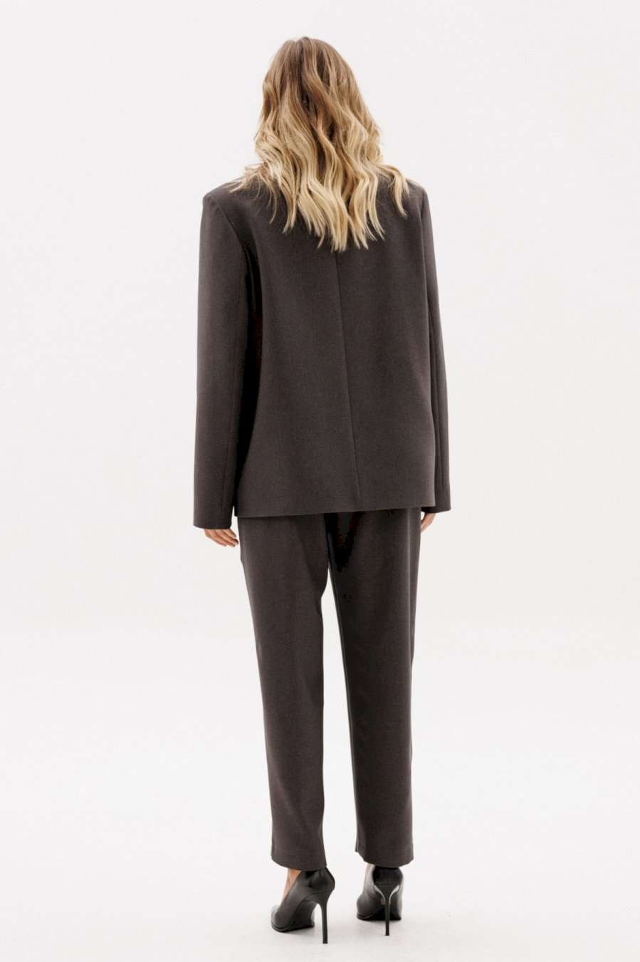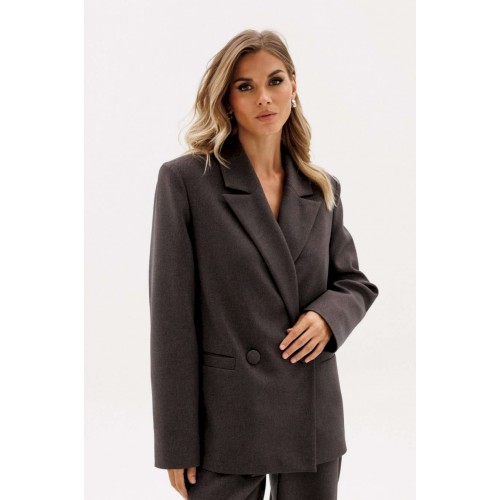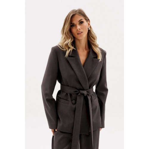 Жакет выполнен из костюмной ткани. Жакет прямого силуэта длиной до линии бедер. Спереди лацканы. Застежка двубортная на обтяжные пуговицы. Воротник пиджачного типа. Спинка со средним швом. Рукав втачного, двухшовный. Жакет на притачной по низу подкладке. В комплект входит съемный пояс из основной ткани. Длина жакета: р. 44-48 - 70 см, р. 50-54 - 71,5 см. Длина рукава: р. 44-48 - 63 см, р. 50-54 - 64 см