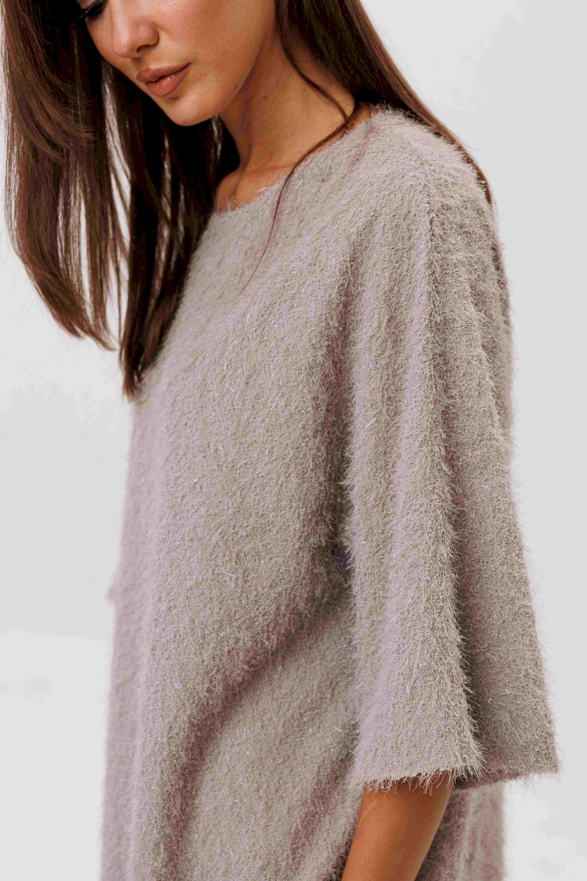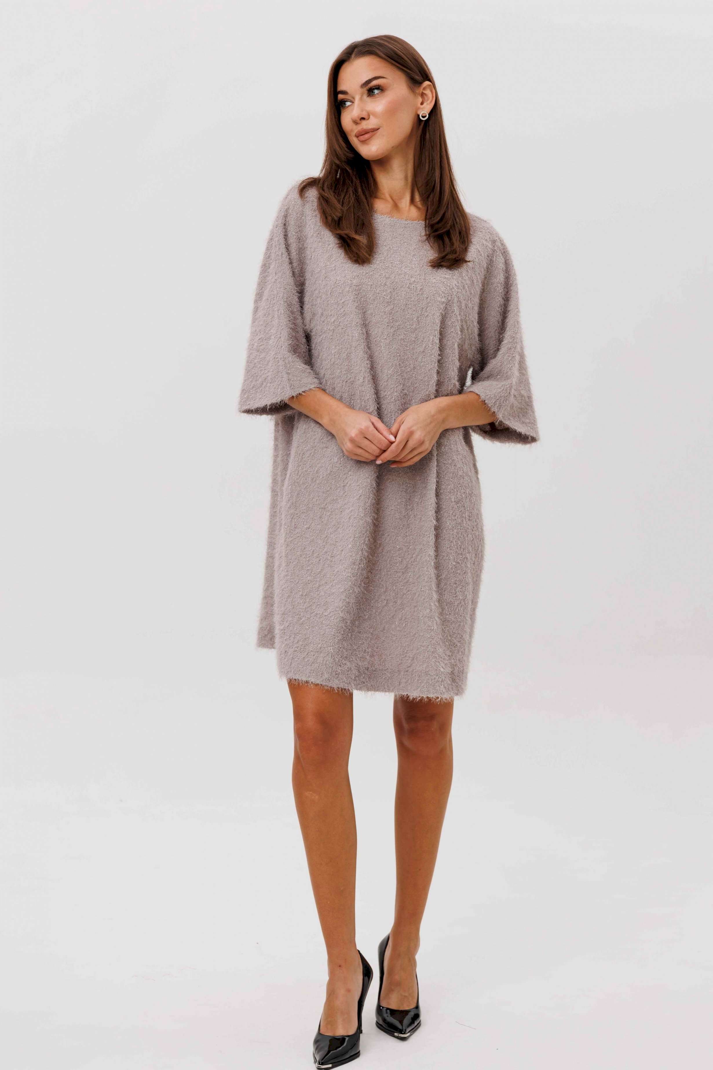 Окутайте себя мягкой роскошью с этим потрясающим платьем свободного силуэта, созданным из мерцающей фактуры «травка». Модель выполнена цельнокроенным покроем с ластовицей — такой крой обеспечивает идеальную посадку и абсолютный комфорт, скрывая всё лишнее и подчёркивая достоинства фигуры. Лёгкое сияние волокон делает платье по-настоящему нарядным, но при этом универсальным: в нём одинаково эффектно выглядят и в повседневной обстановке, и на вечерних встречах. Удобная застёжка-молния на спинке завершает образ продуманной функциональностью. Это платье — идеальный выбор для тех, кто ценит стиль без усилий, комфорт без компромиссов и элегантность в каждом движении.