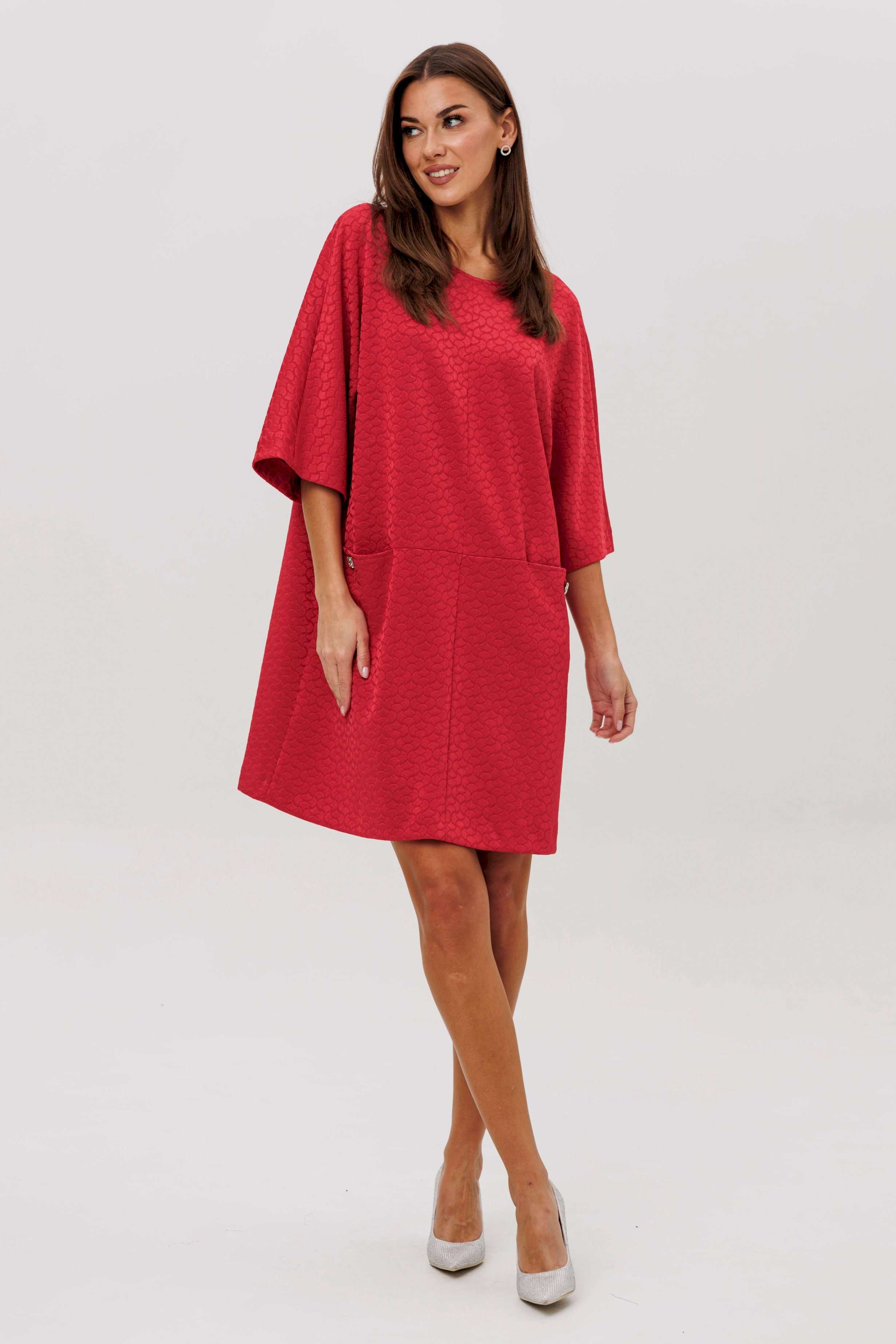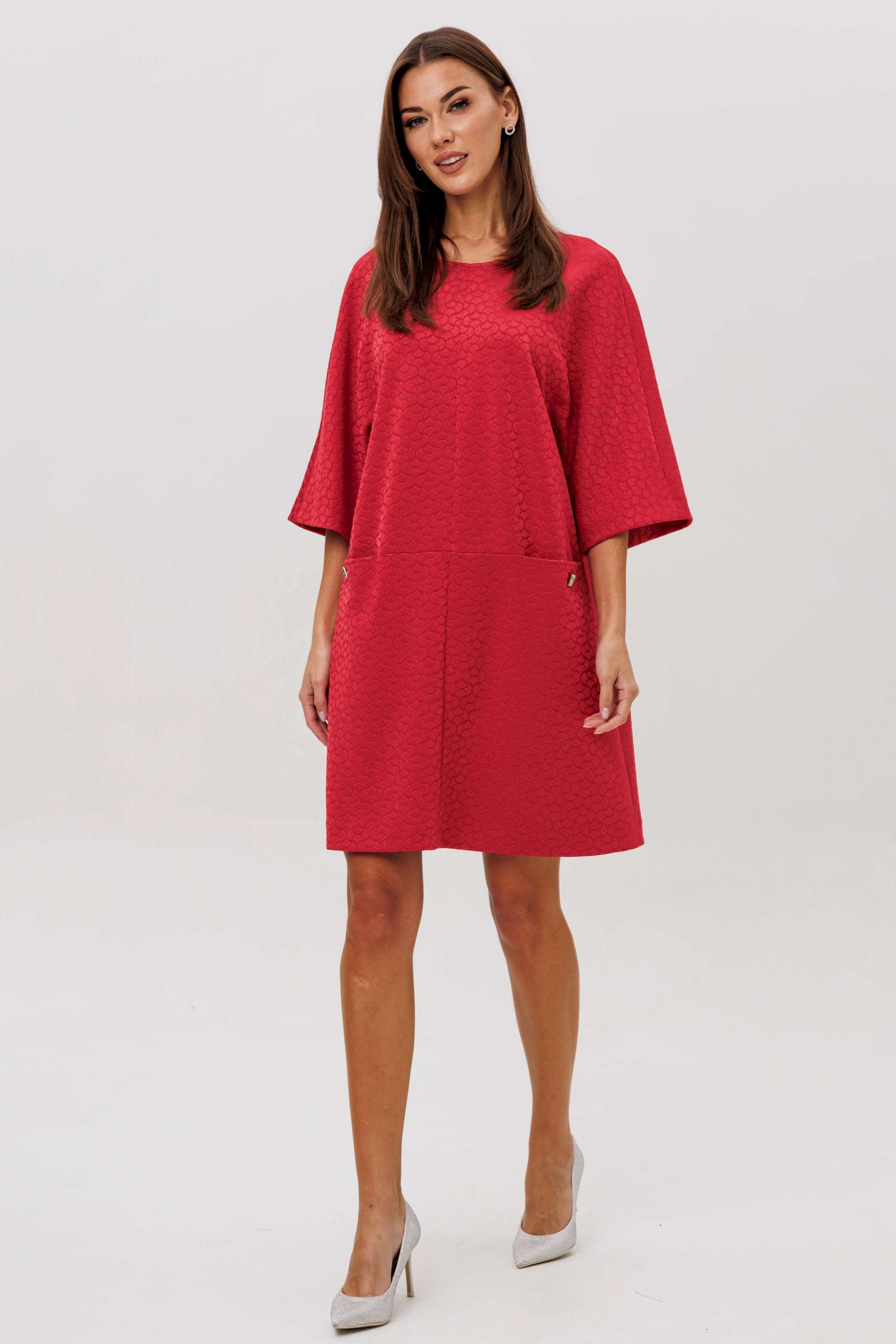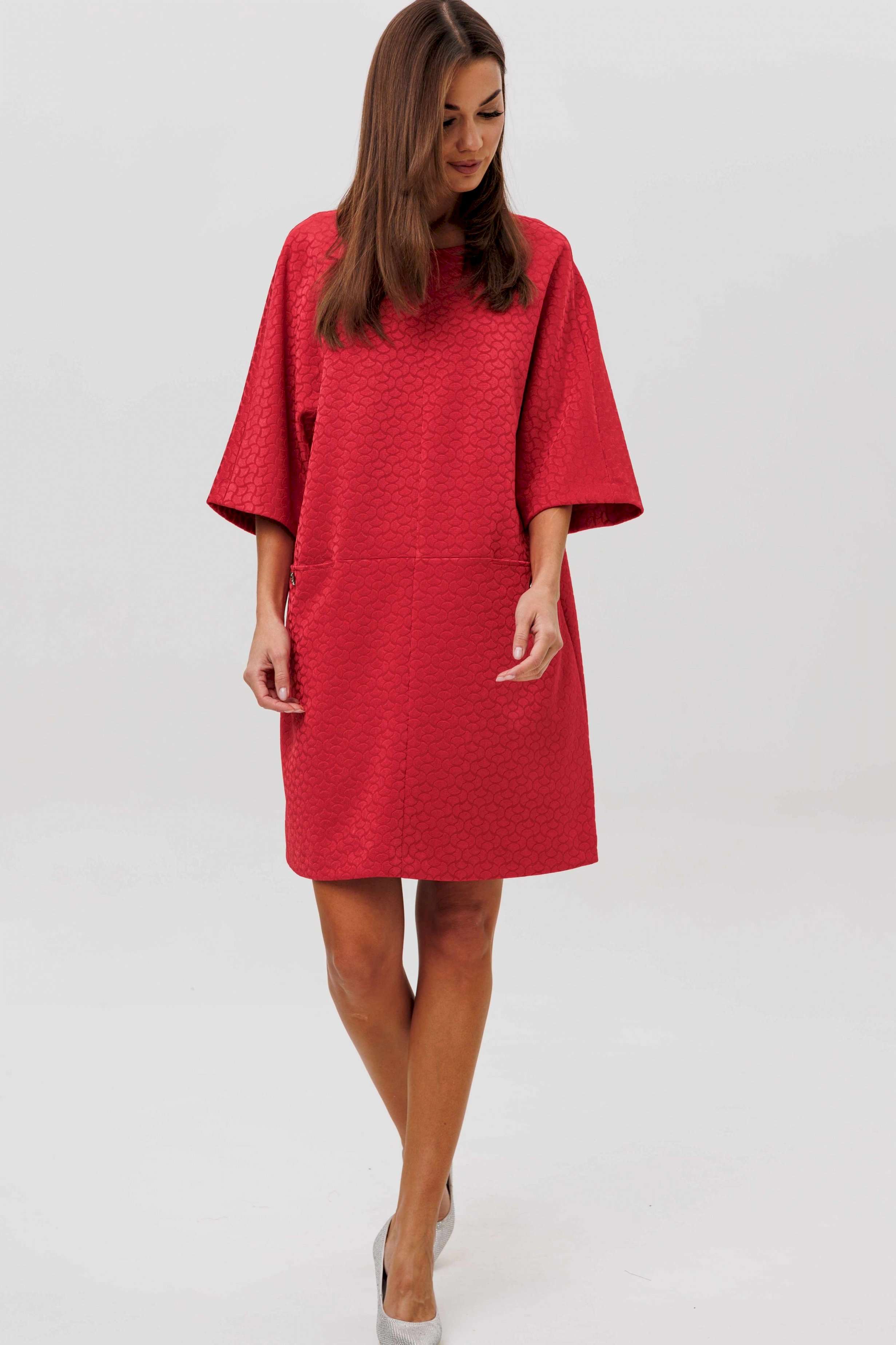 Стильное платье из жаккардового трикотажа — идеальный баланс комфорта и структуры. Фактурное полотно держит форму, создавая чистый силуэт, а свободный крой и функциональные карманы добавляют расслабленную лёгкость. Модель, которая моментально делает образ современным и уверенным.