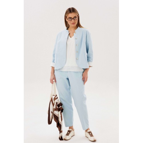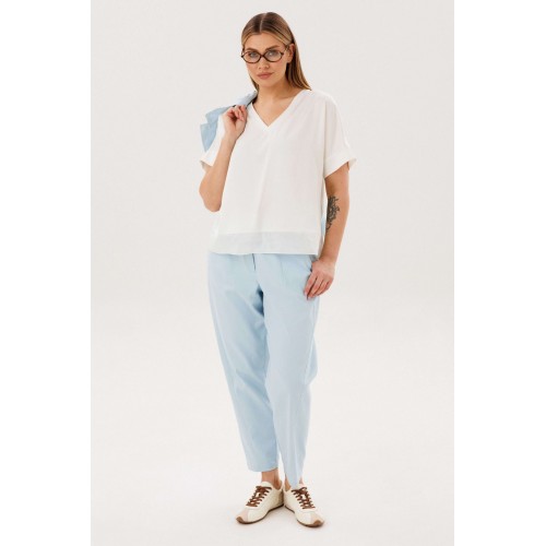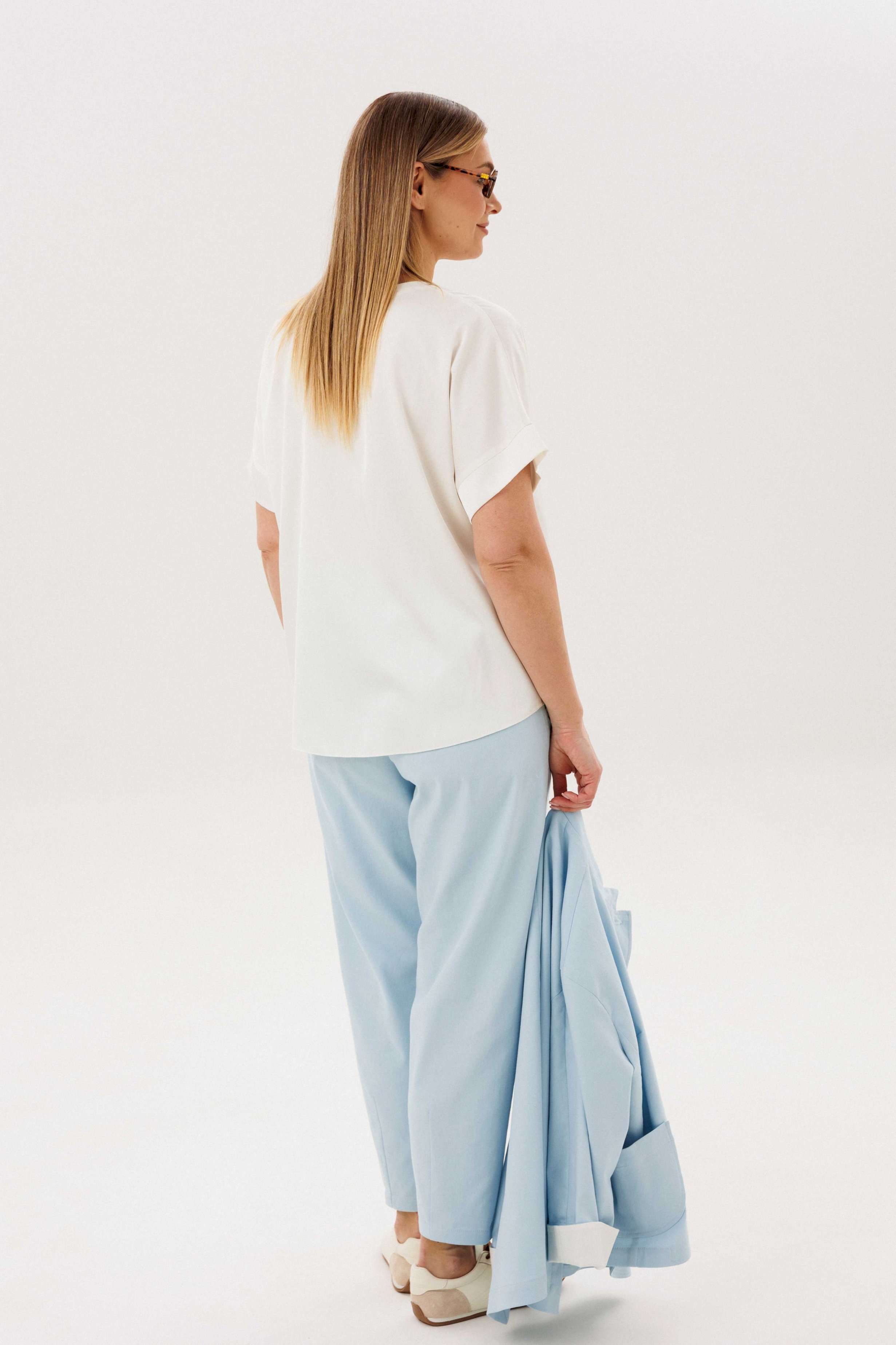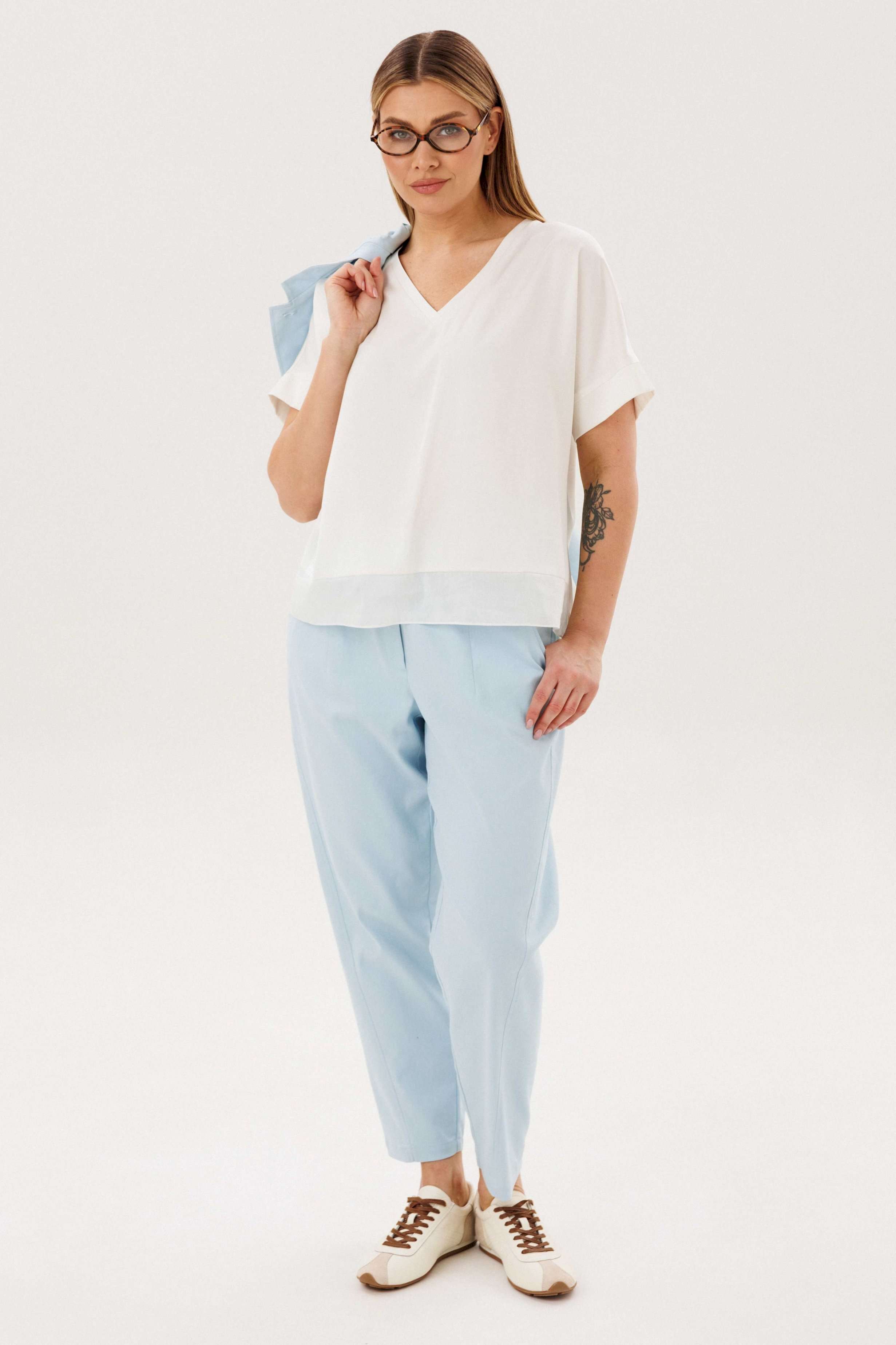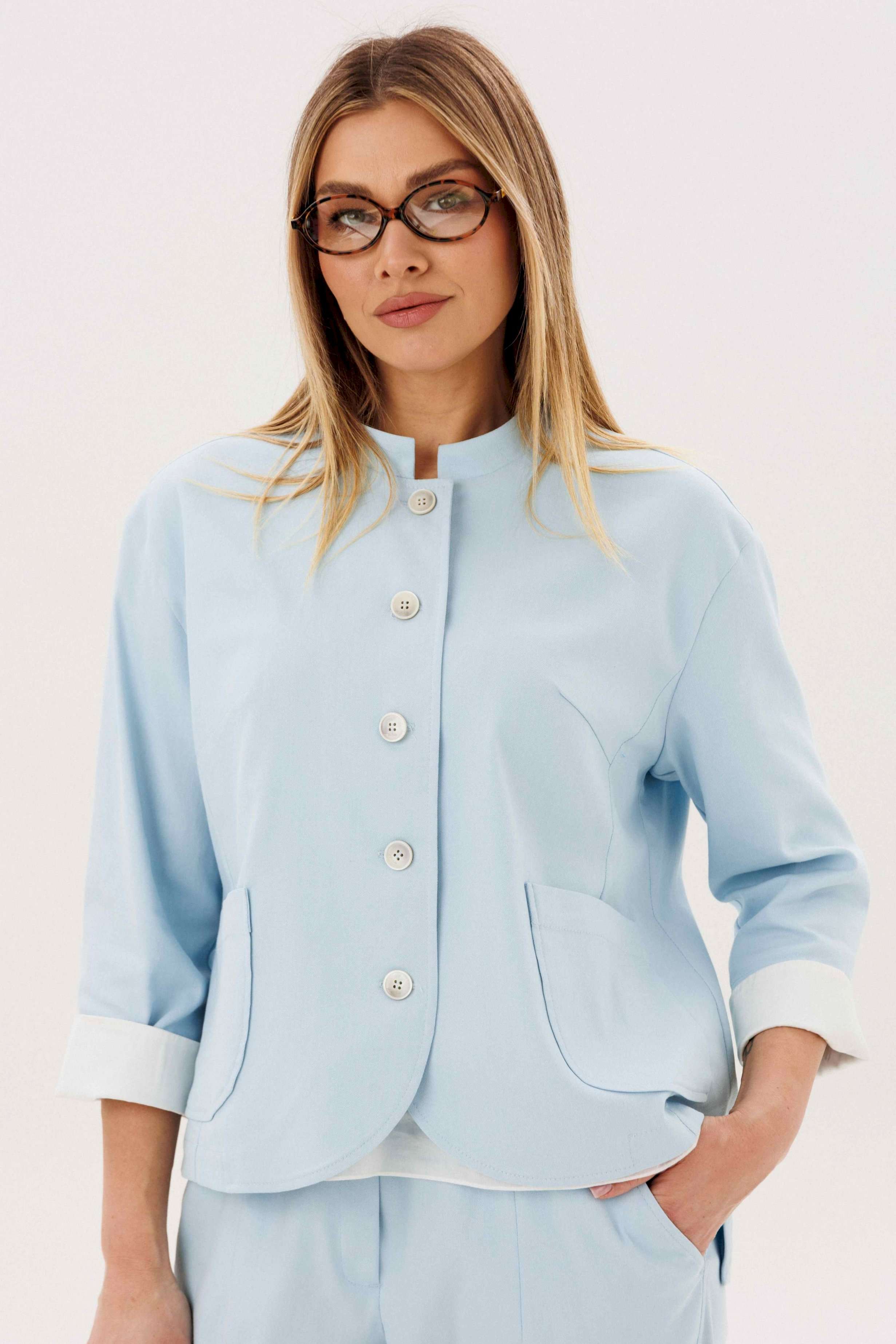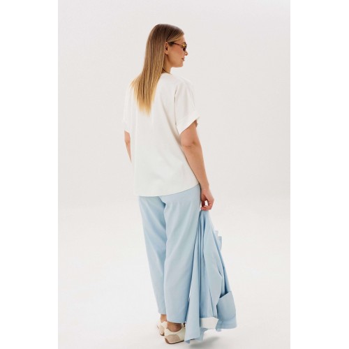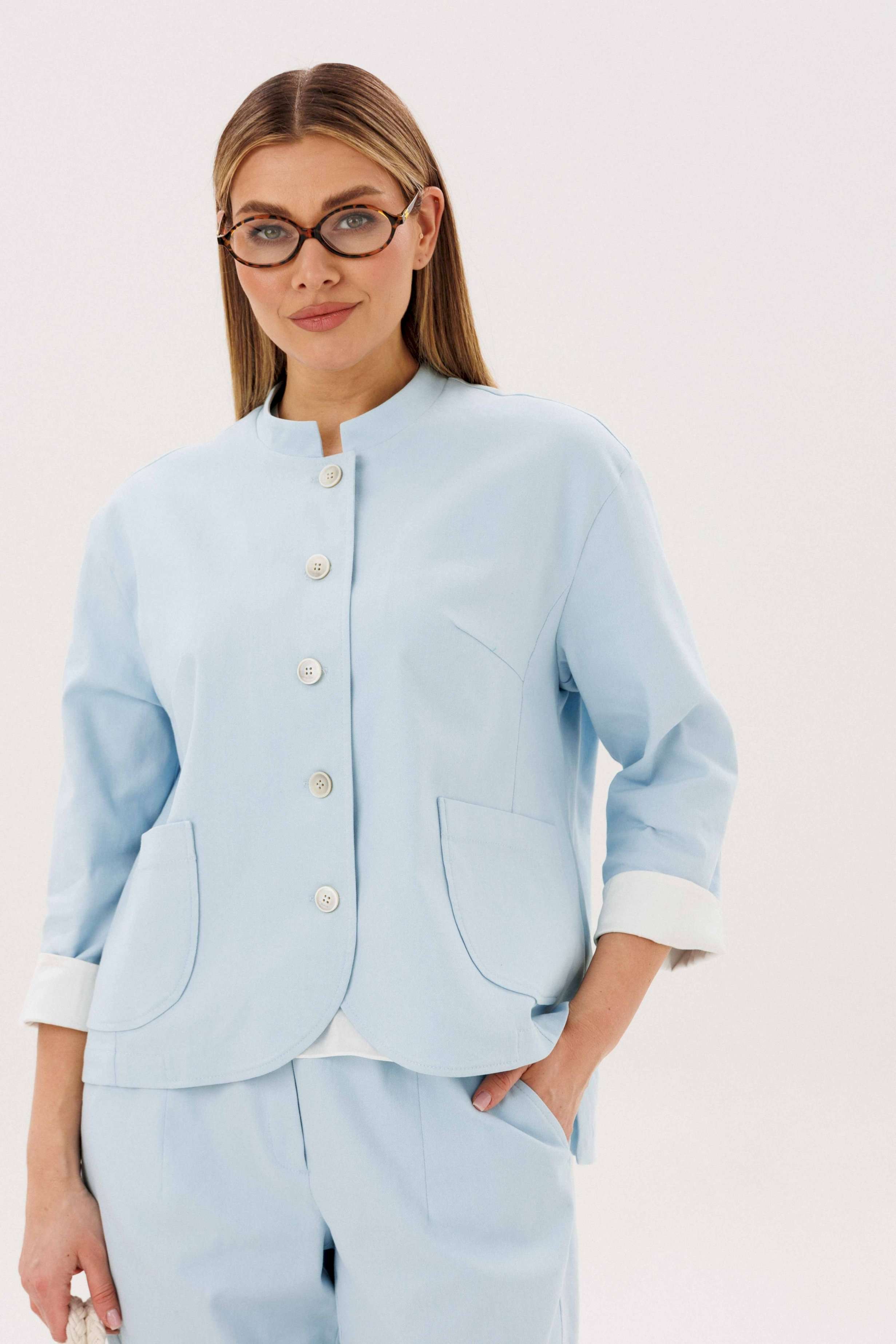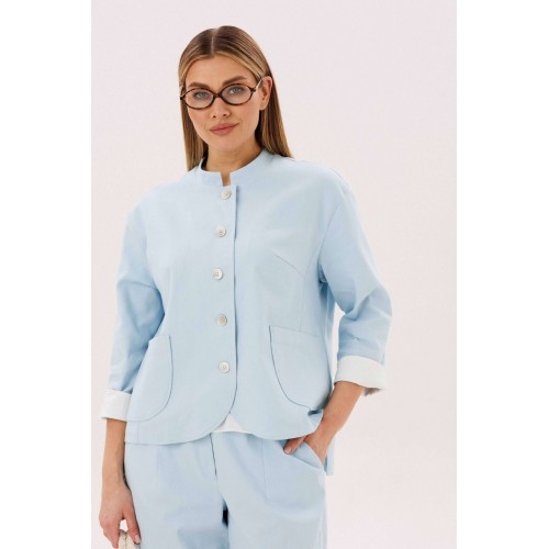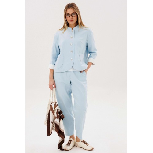 Стильный брючный комплект — идеальное сочетание комфорта и утончённой элегантности. Модель выполнена в нежном голубом оттенке и дополнена трендовой атласной блузой, создавая актуальный и гармоничный образ на каждый день. В комплект входит: Лаконичный жакет из хлопкового полотна Брюки прямого кроя с комфортной посадкой Атласная блуза с мягким блеском Жакет из натурального хлопка обеспечивает комфорт и отлично держит форму, подчёркивая аккуратный силуэт. Минималистичный дизайн с аккуратной линией горловины и пуговицами делает модель универсальной и современной. Брюки прямого кроя визуально вытягивают силуэт и создают элегантный, сбалансированный образ. Комфортная посадка позволяет чувствовать себя уверенно в течение всего дня. Атласная блуза добавляет комплекту изысканности: лёгкий блеск ткани освежает образ и делает его более выразительным, сохраняя при этом сдержанность. Преимущества комплекта: натуральное хлопковое полотно трендовое сочетание фактур (хлопок + атлас) универсальный и женственный силуэт готовый образ без необходимости подбора Комплект легко адаптируется под разные случаи: с кроссовками — для стильного casual, с обувью на каблуке — для более элегантного выхода. Идеальный выбор для тех, кто ценит комфорт, актуальные тренды и продуманный стиль.