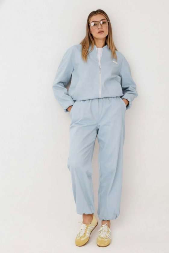 Современный спортивный комплект в нежном оттенке «Тиффани» — идеальное сочетание комфорта, функциональности и актуального дизайна. Лаконичный крой и продуманные детали делают модель универсальной для активного городского ритма. В комплект входит: Куртка-бомбер на молнии с эластичными манжетами и поясом Брюки свободного кроя с комфортной посадкой и мягкой резинкой по низу Изделие выполнено из качественного хлопчатобумажного полотна. Натуральная ткань обеспечивает воздухопроницаемость, комфорт при носке и приятные тактильные ощущения. Материал хорошо держит форму и подходит для ежедневного использования. Спортивный силуэт подчёркивает динамичный характер образа, а свежий оттенок «Тиффани» добавляет лёгкости и современности. Комплект идеально сочетается с базовыми футболками, кроссовками и аксессуарами в casual-стиле. Преимущества: Натуральный хлопковый состав Удобная посадка и свобода движений Актуальный спортивный крой Универсальность для повседневного гардероба Комплект \"\"Tiffany\"\" — это практичное решение для тех, кто выбирает комфорт, стиль и актуальные тренды в одном образе.