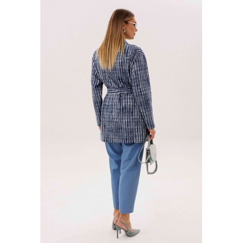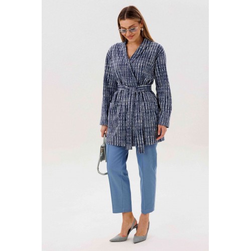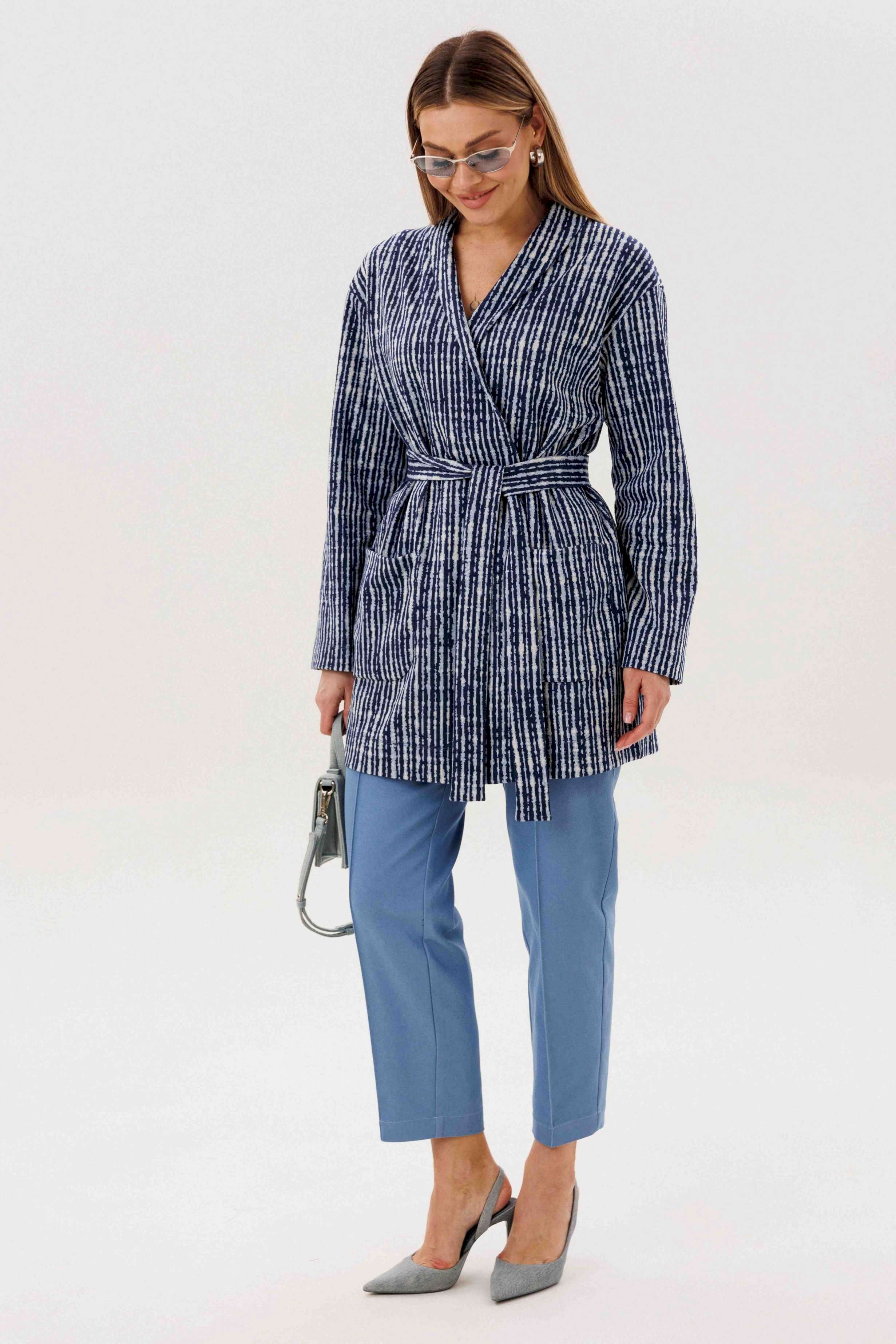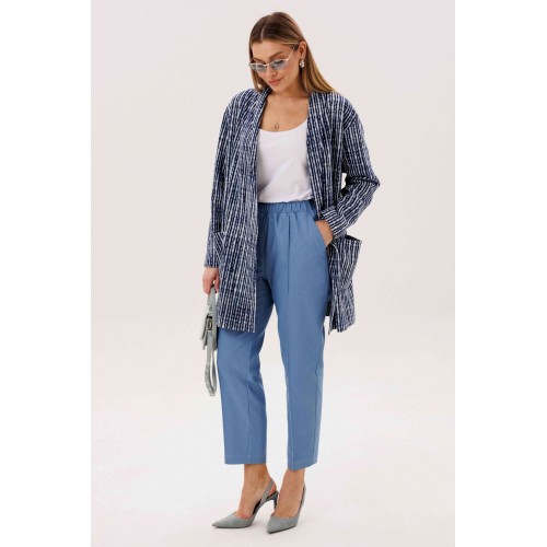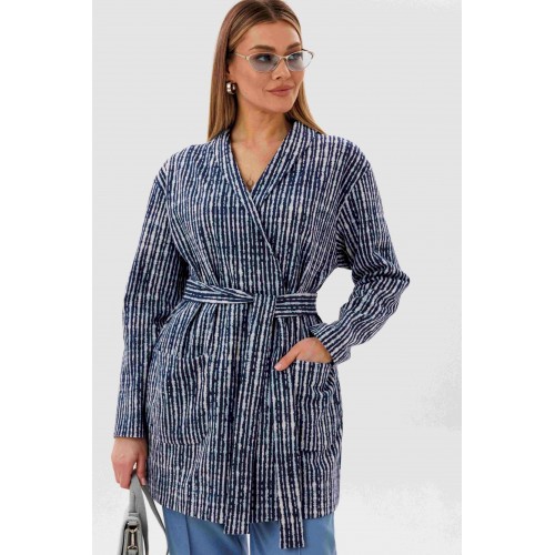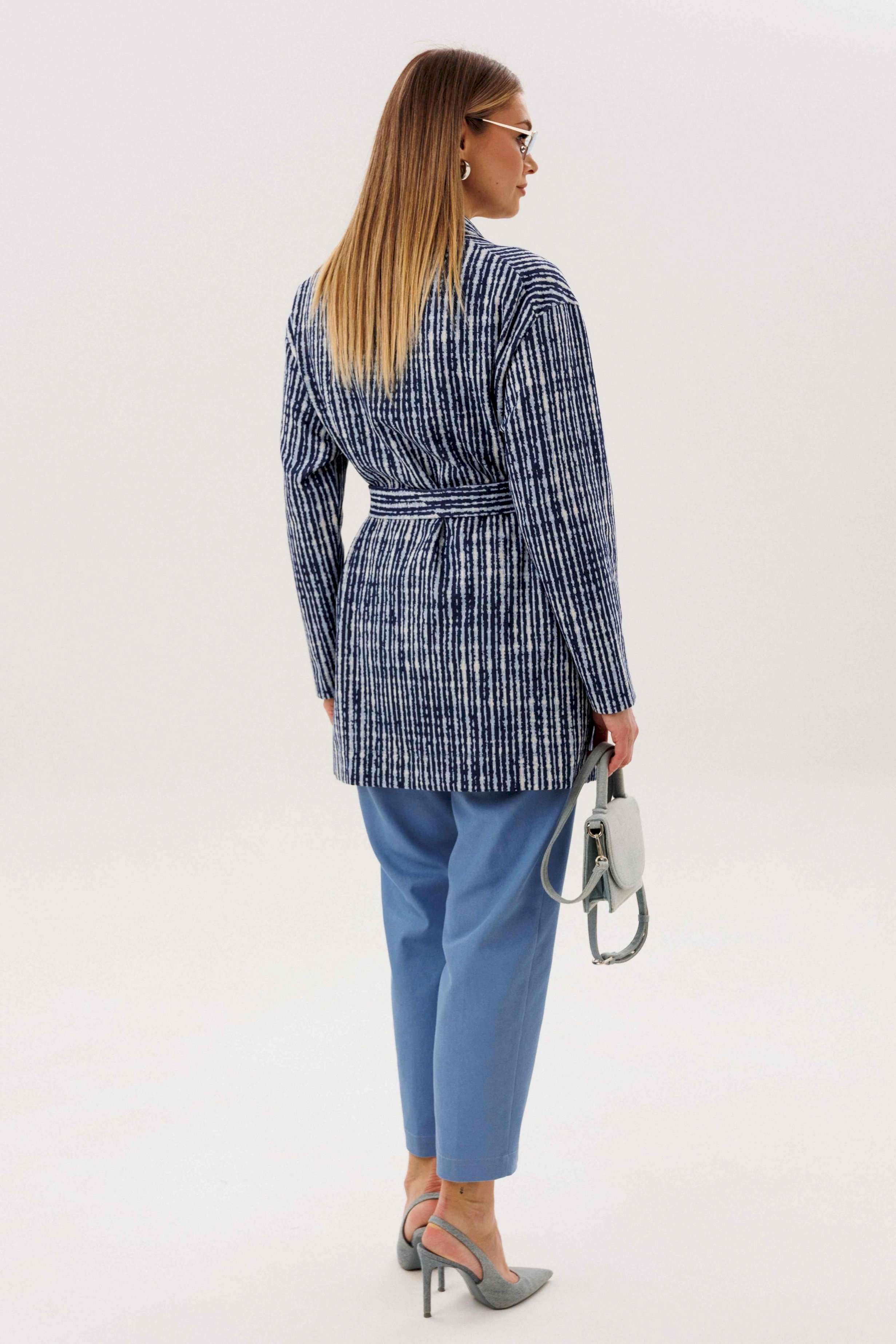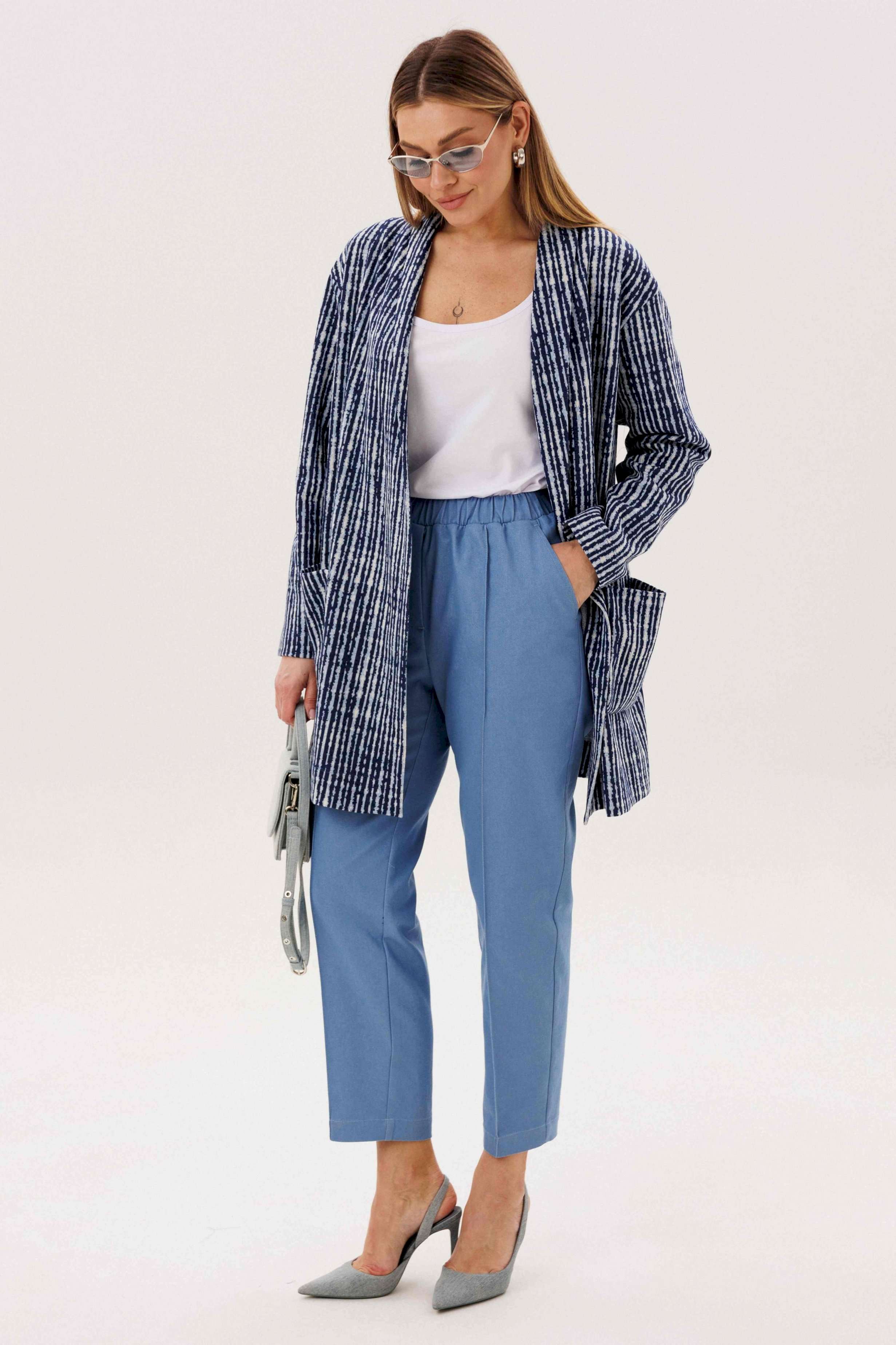 Стильный комплект, в котором выразительная фактура трикотажа сочетается с практичностью денима. Кардиган выполнен из мягкого трикотажного полотна с декоративным узором, который добавляет образу динамику и подчёркивает его fashion-характер. Прямой силуэт и аккуратная линия плеч делают модель универсальной и легко адаптируемой под разные стилистические сценарии. Брюки из джинсовой ткани с эластичным поясом обеспечивают комфортную посадку и свободу движений, сохраняя при этом аккуратный, собранный вид. Лаконичный крой позволяет сбалансировать активный верх и делает комплект удобным для повседневного городского ритма. Комплект идеально подойдёт для тех, кто ценит сочетание дизайна, комфорта и современного стиля — актуальное решение для повседневных и casual-образов.