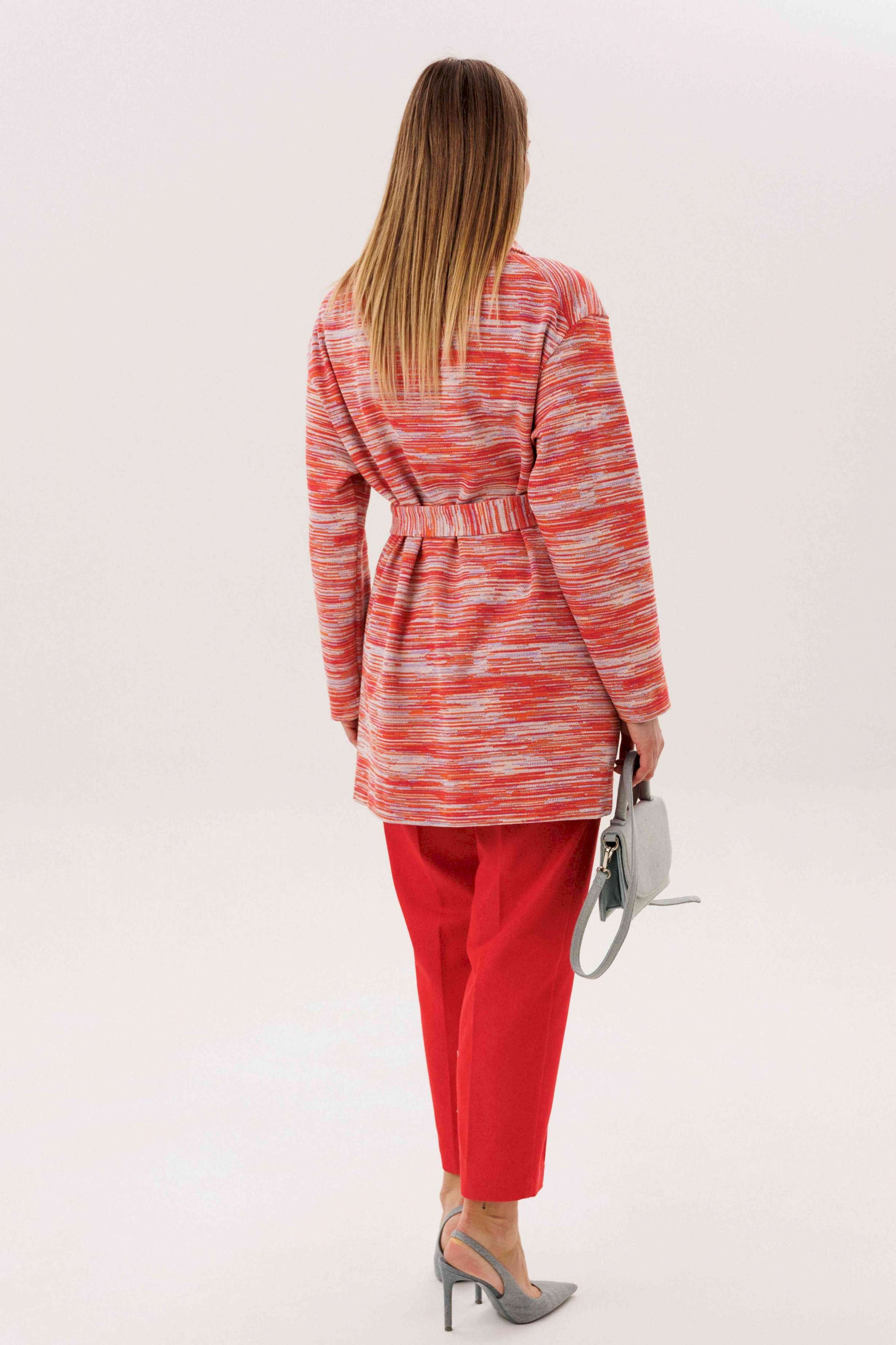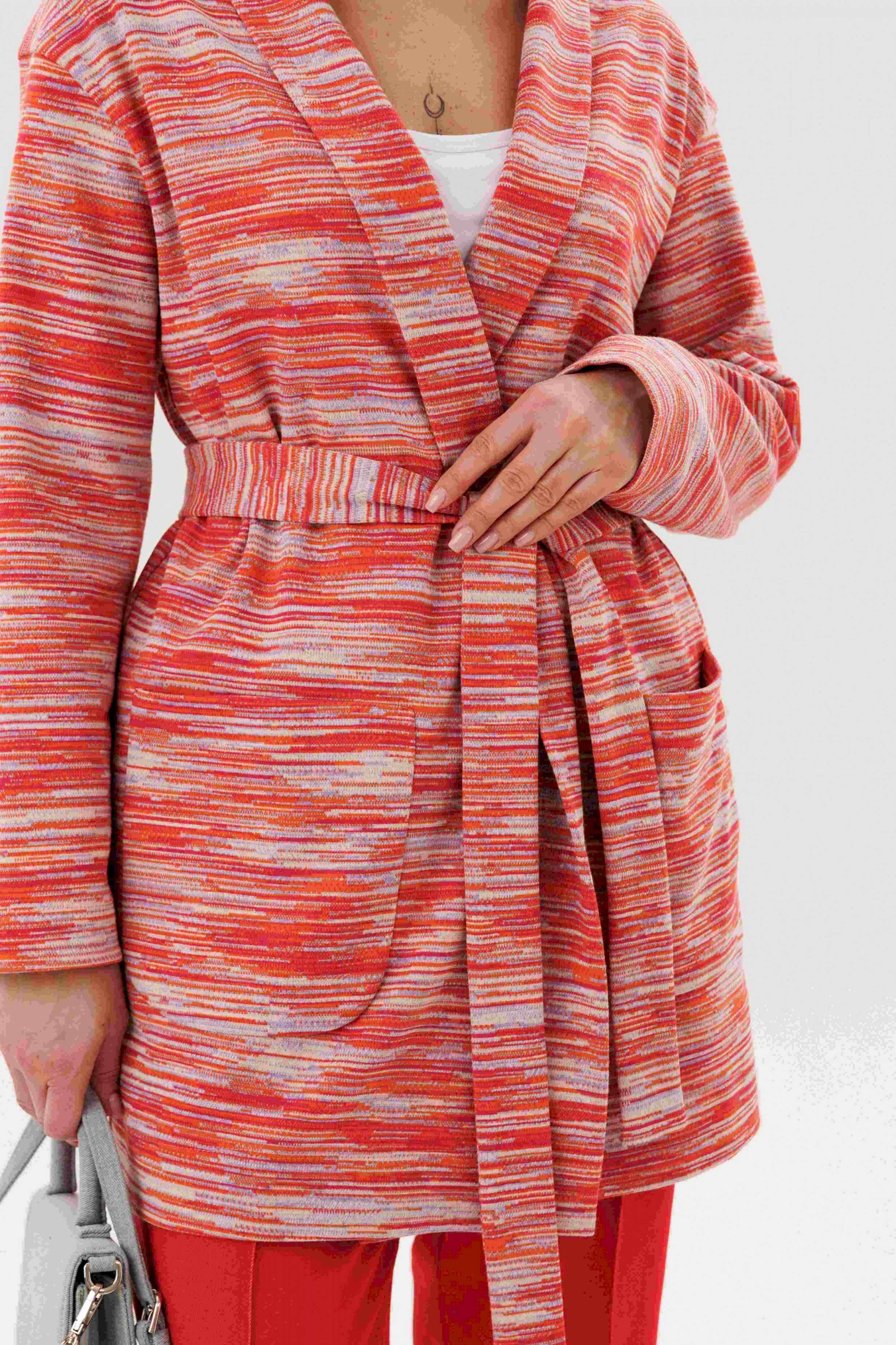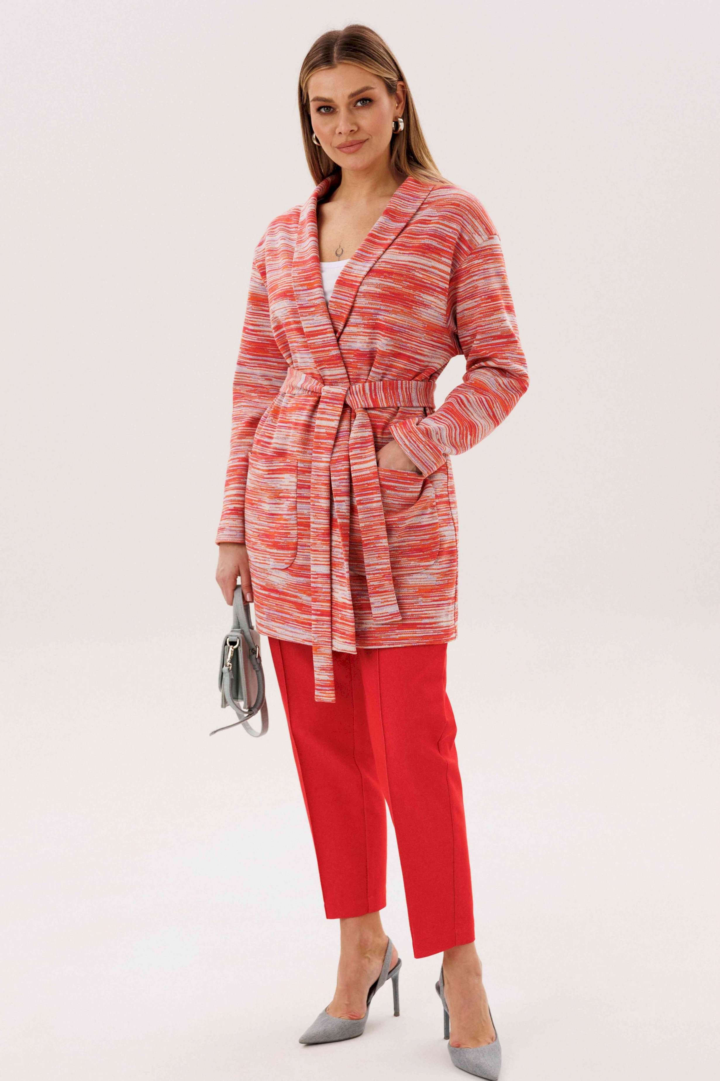 Стильный комплект, в котором выразительная фактура трикотажа сочетается с практичностью денима. Кардиган выполнен из мягкого трикотажного полотна с декоративным узором, который добавляет образу динамику и подчёркивает его fashion-характер. Прямой силуэт и аккуратная линия плеч делают модель универсальной и легко адаптируемой под разные стилистические сценарии. Брюки из джинсовой ткани с эластичным поясом обеспечивают комфортную посадку и свободу движений, сохраняя при этом аккуратный, собранный вид. Лаконичный крой позволяет сбалансировать активный верх и делает комплект удобным для повседневного городского ритма. Комплект идеально подойдёт для тех, кто ценит сочетание дизайна, комфорта и современного стиля — актуальное решение для повседневных и casual-образов.