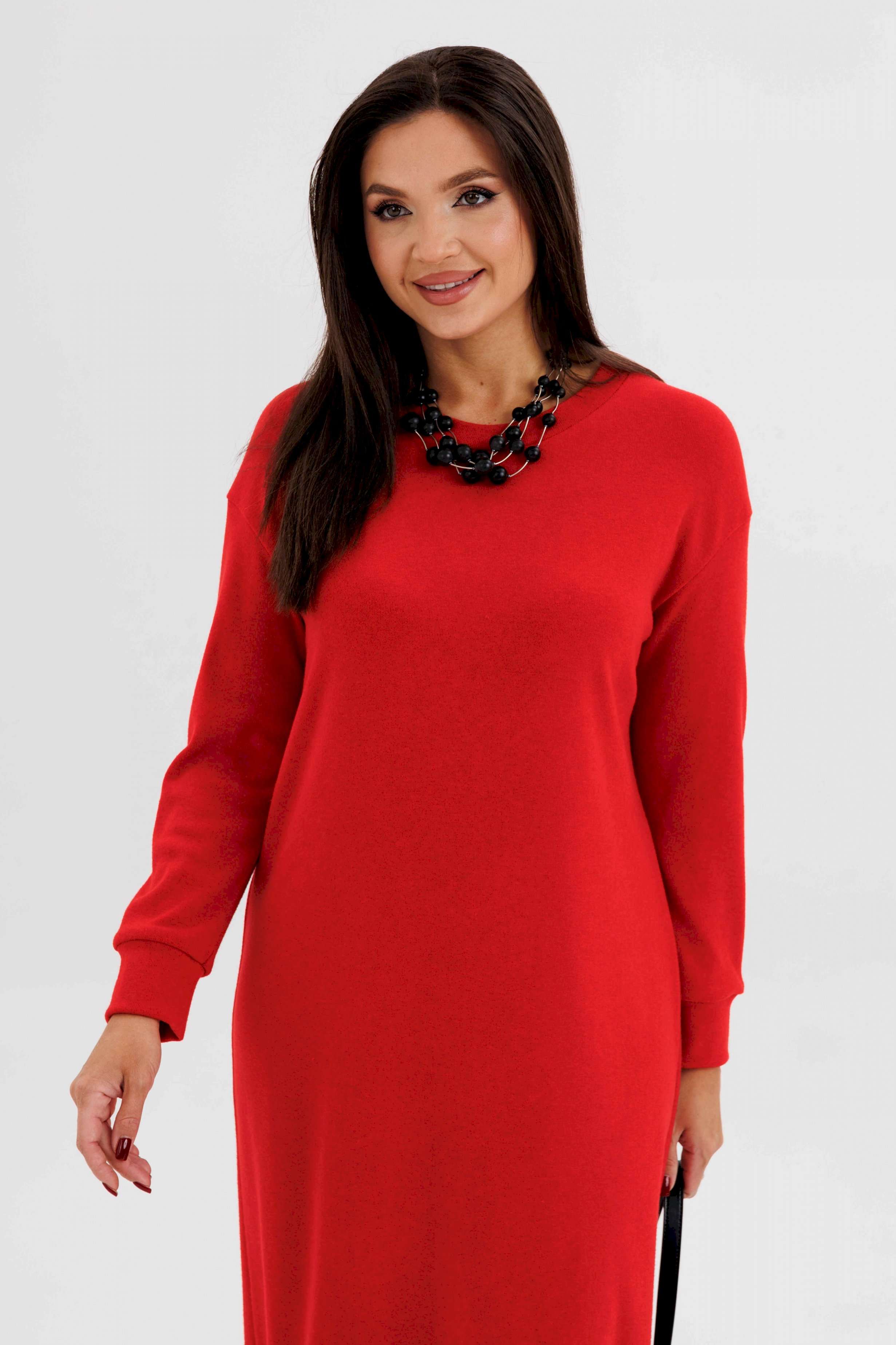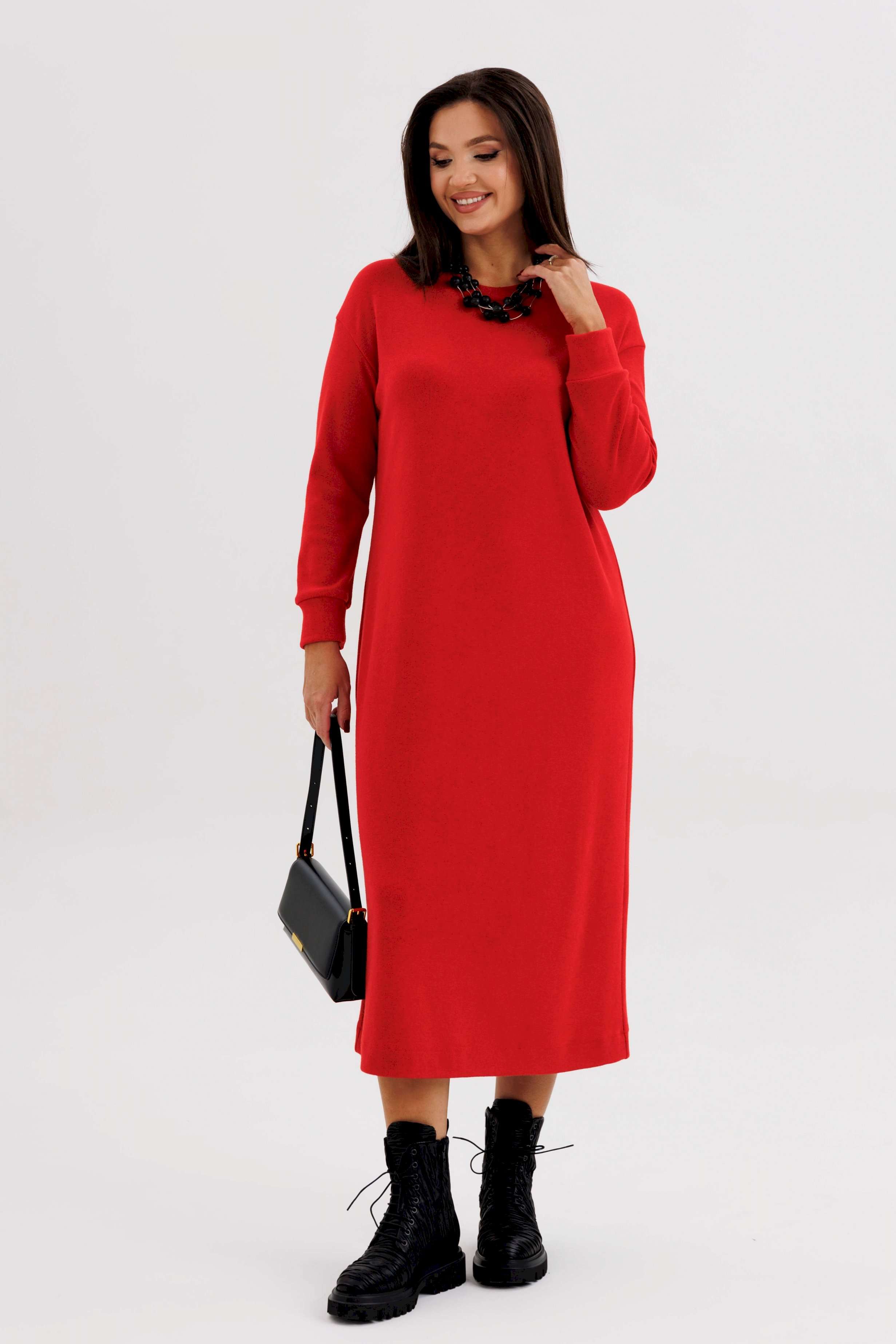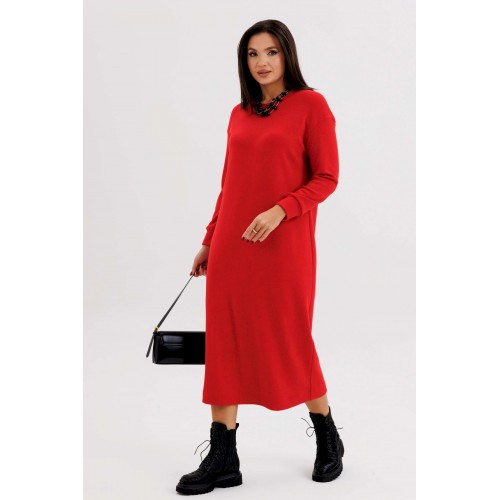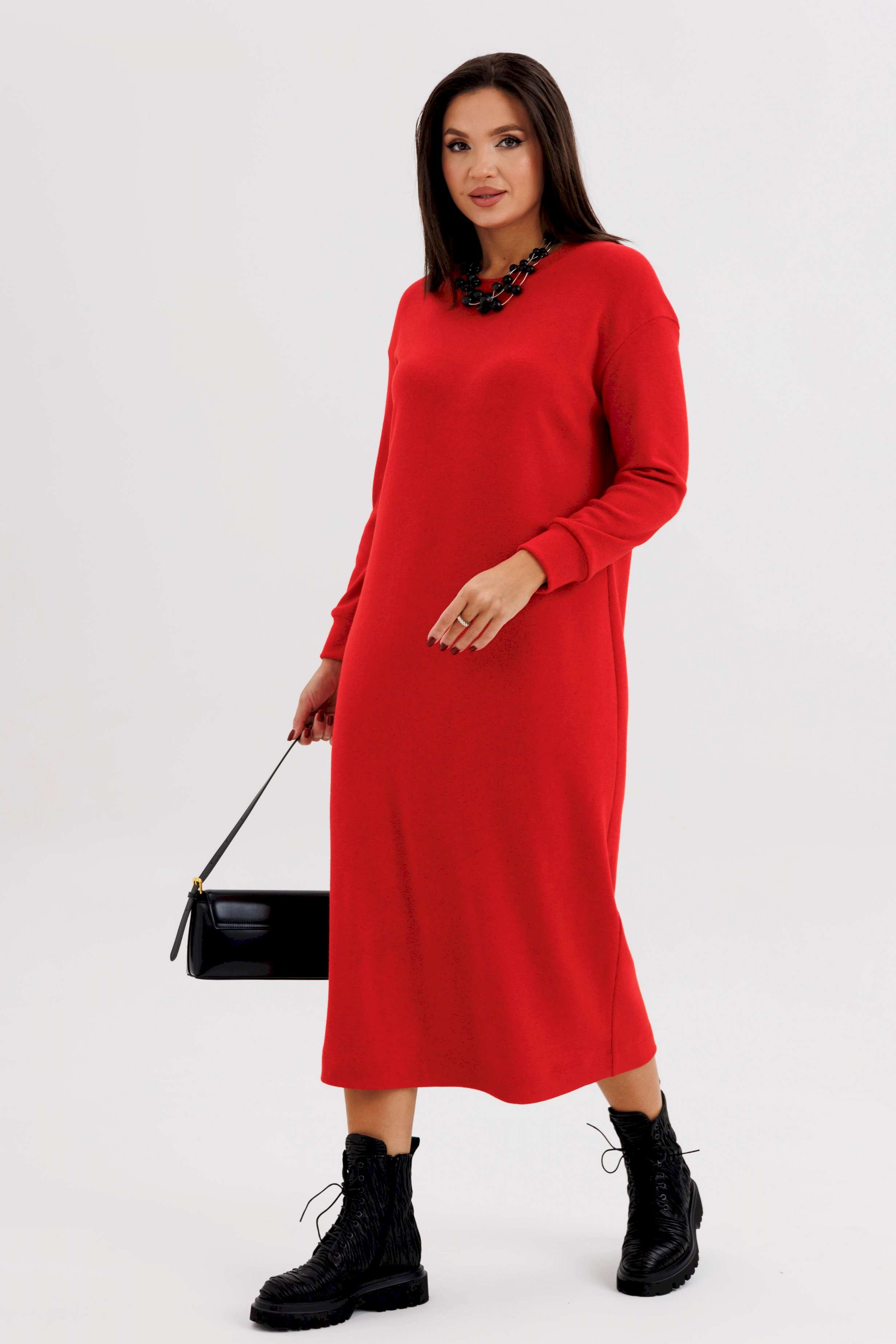 Красное платье миди из трикотажного полотна без разреза — стильный выбор для уверенных в себе женщин, ценящих комфорт и элегантность. Модель выполнена из мягкого эластичного трикотажа, который идеально садится по фигуре и подчёркивает силуэт, не ограничивая движения. Платье имеет прямой крой, длину миди (до середины икры) и закрытый подол без разреза, что делает образ сдержанным и утончённым. Благодаря лаконичному дизайну, платье легко впишется как в повседневный, так и в деловой гардероб. Мягкая фактура ткани приятна к телу и подходит для любого сезона. Насыщенный красный цвет подчёркивает женственность и уверенность, а минималистичный стиль позволяет комбинировать платье с различными аксессуарами и обувью — от классических туфель до ботильонов. Ключевые преимущества: Модный прямой силуэт без разреза Удобная длина миди Эластичное трикотажное полотно высокого качества Универсальный дизайн — на работу, прогулку, свидание или вечерний выход.