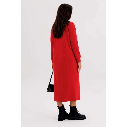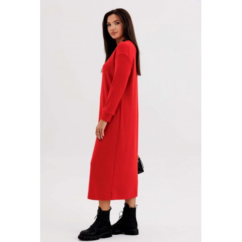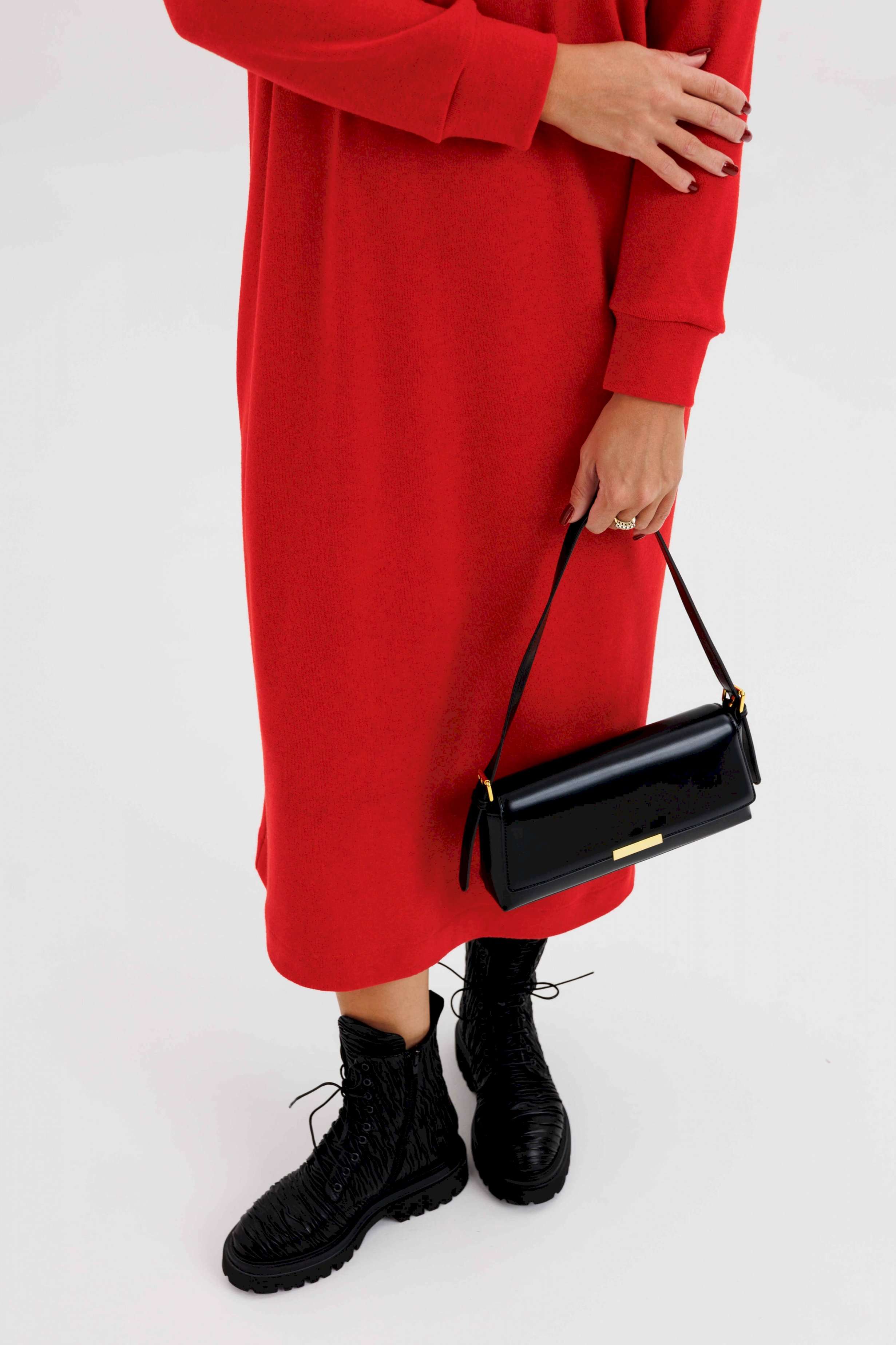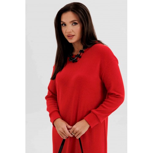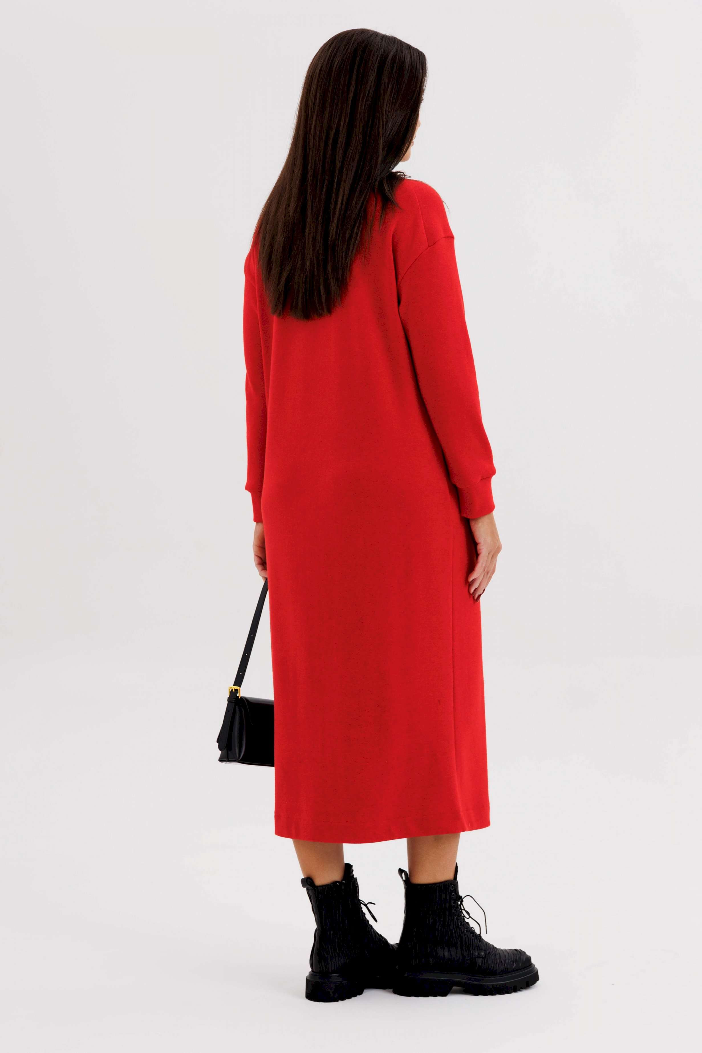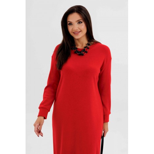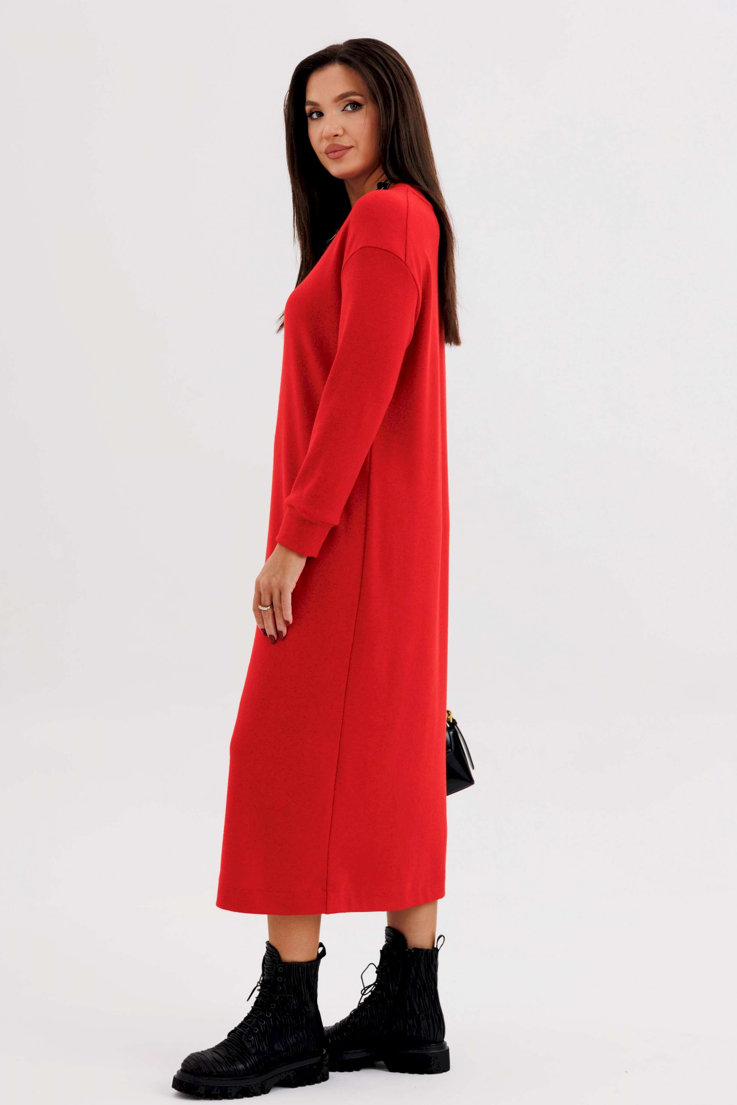 Красное платье миди из трикотажного полотна без разреза — стильный выбор для уверенных в себе женщин, ценящих комфорт и элегантность. Модель выполнена из мягкого эластичного трикотажа, который идеально садится по фигуре и подчёркивает силуэт, не ограничивая движения. Платье имеет прямой крой, длину миди (до середины икры) и закрытый подол без разреза, что делает образ сдержанным и утончённым. Благодаря лаконичному дизайну, платье легко впишется как в повседневный, так и в деловой гардероб. Мягкая фактура ткани приятна к телу и подходит для любого сезона. Насыщенный красный цвет подчёркивает женственность и уверенность, а минималистичный стиль позволяет комбинировать платье с различными аксессуарами и обувью — от классических туфель до ботильонов. Ключевые преимущества: Модный прямой силуэт без разреза Удобная длина миди Эластичное трикотажное полотно высокого качества Универсальный дизайн — на работу, прогулку, свидание или вечерний выход.