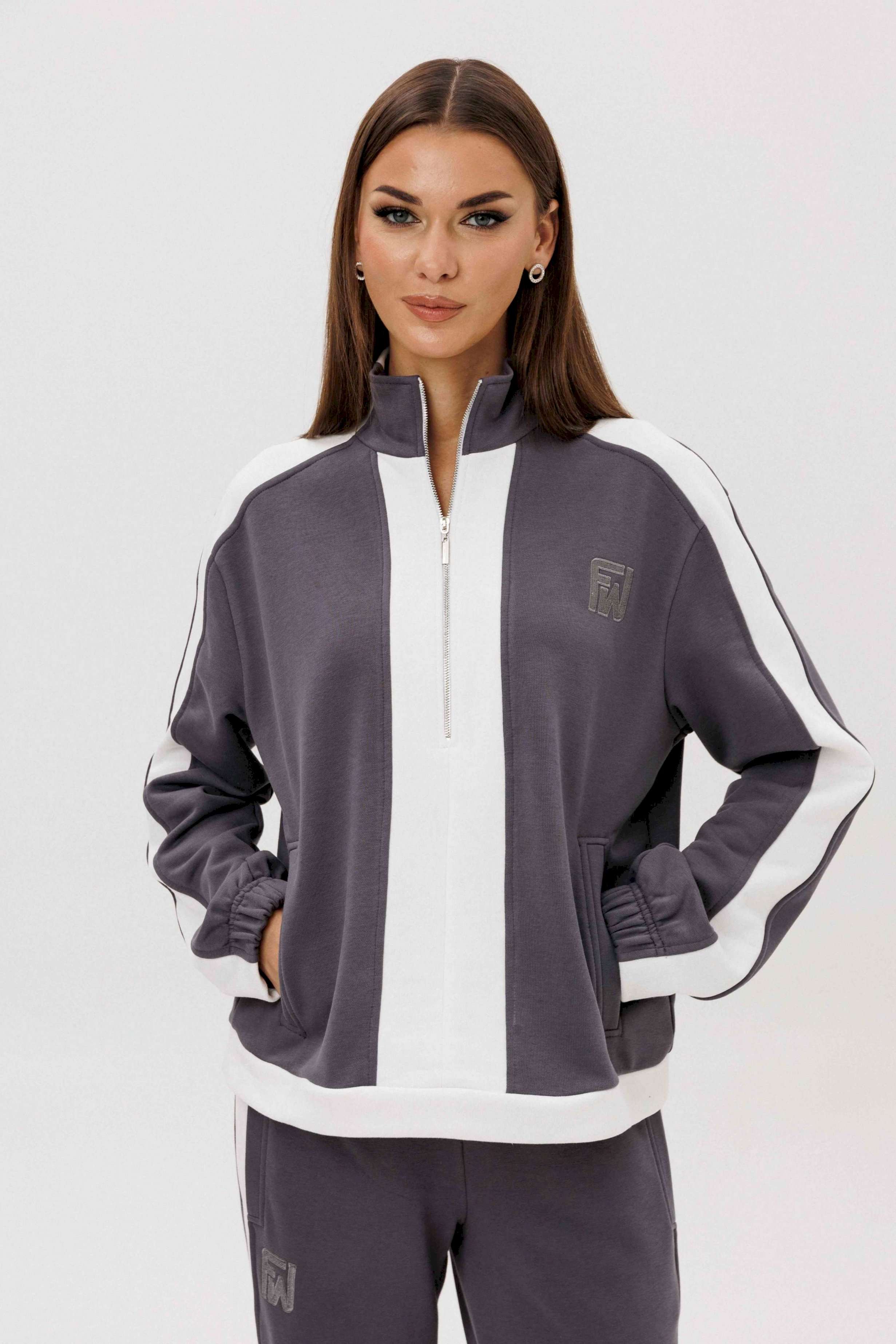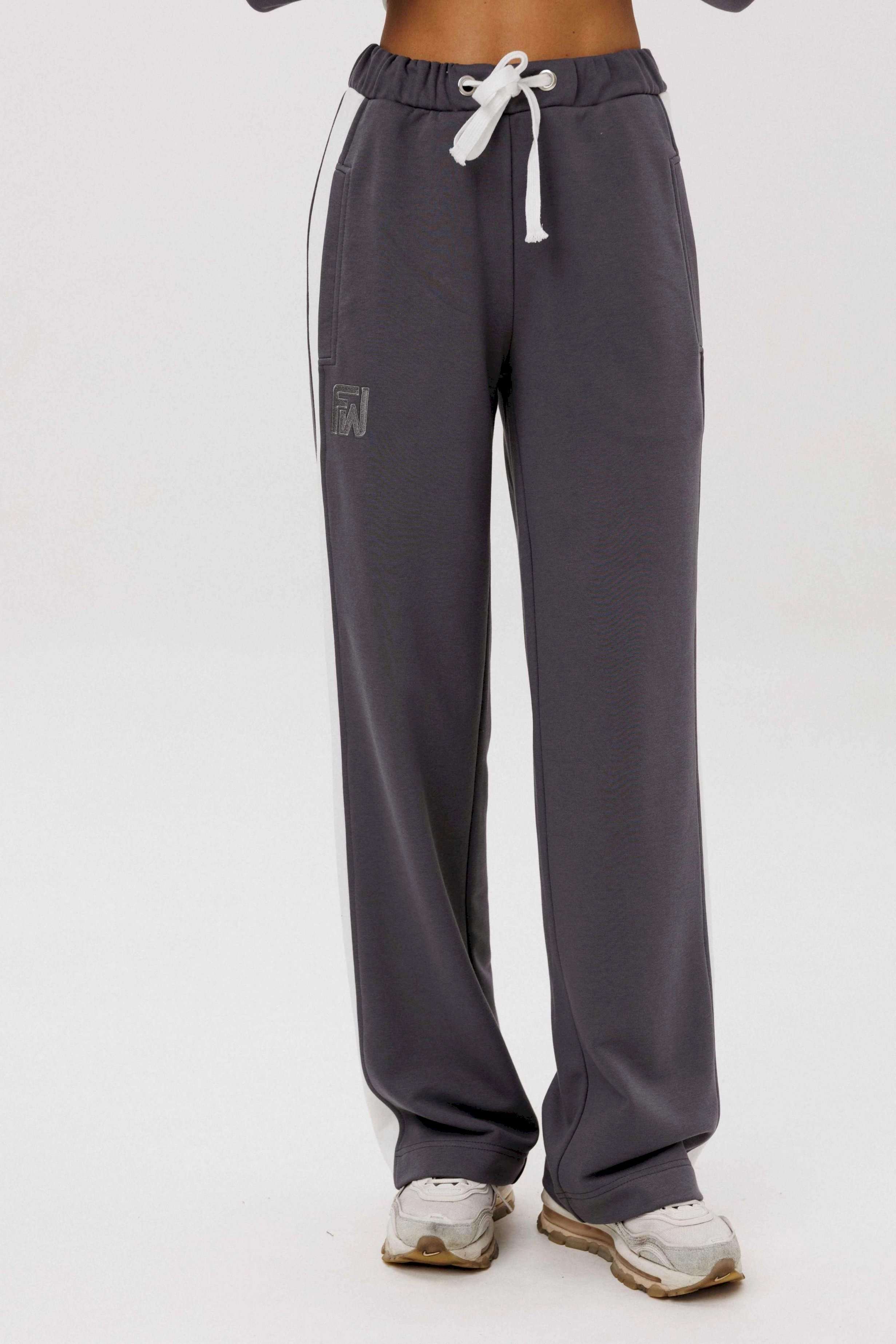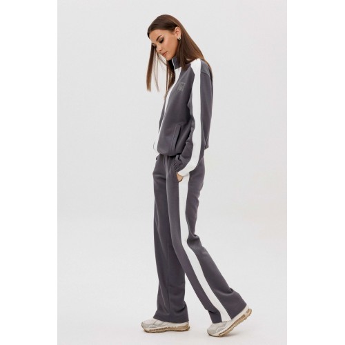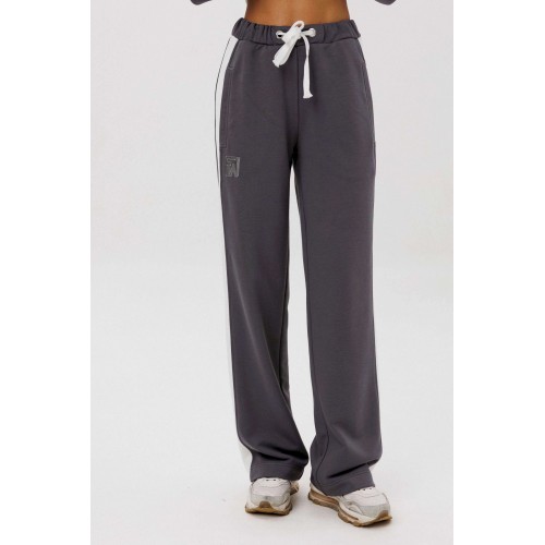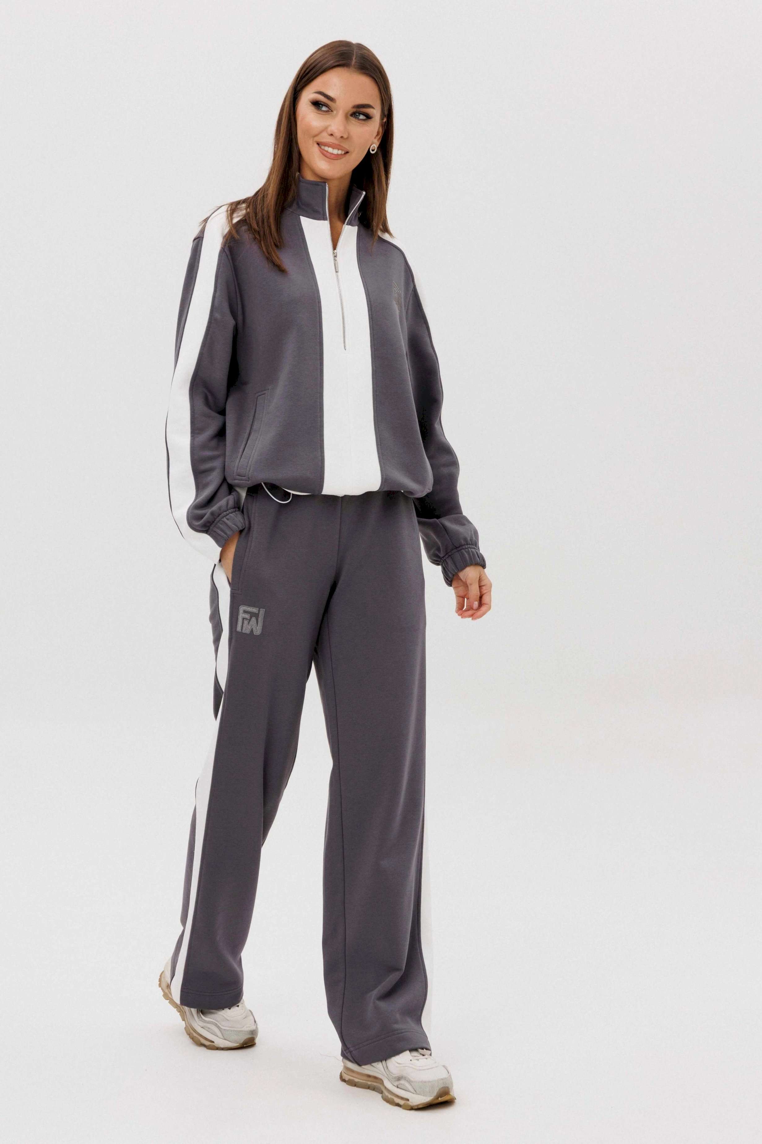 Комфорт - один из ключевых трендов современной действительности, который отлично реализуется в контексте стиля спорт-кэжуал. Его выбирает тот, кто не желает ограничивать себя жёсткими рамками, стремится выглядеть модно и динамично и не считает, что красота требует жертв. Свободный, упрямлённый свитшот с заниженной линией плеча, воротником-стойкой, частичной застёжкой на тесьму-молнию, прорезными карманами, рукавом, состоящим из 3-х частей с притачной манжетой и кулисой с регулирующей эластичной тесьмой и фиксаторами по низу изделия. Брюки свободные, прямые на притачном эластичном поясе с контрастными лампасами и карманами с листочками в боковых швах. Контрастные лампасы на брюках, рукавах, по центру переда и низу придают модели особую динамичность и изысканность. Длина свитшота около 62 см. Длина рукава с плечом около 76 см. Длина брюк около 104 см.