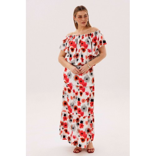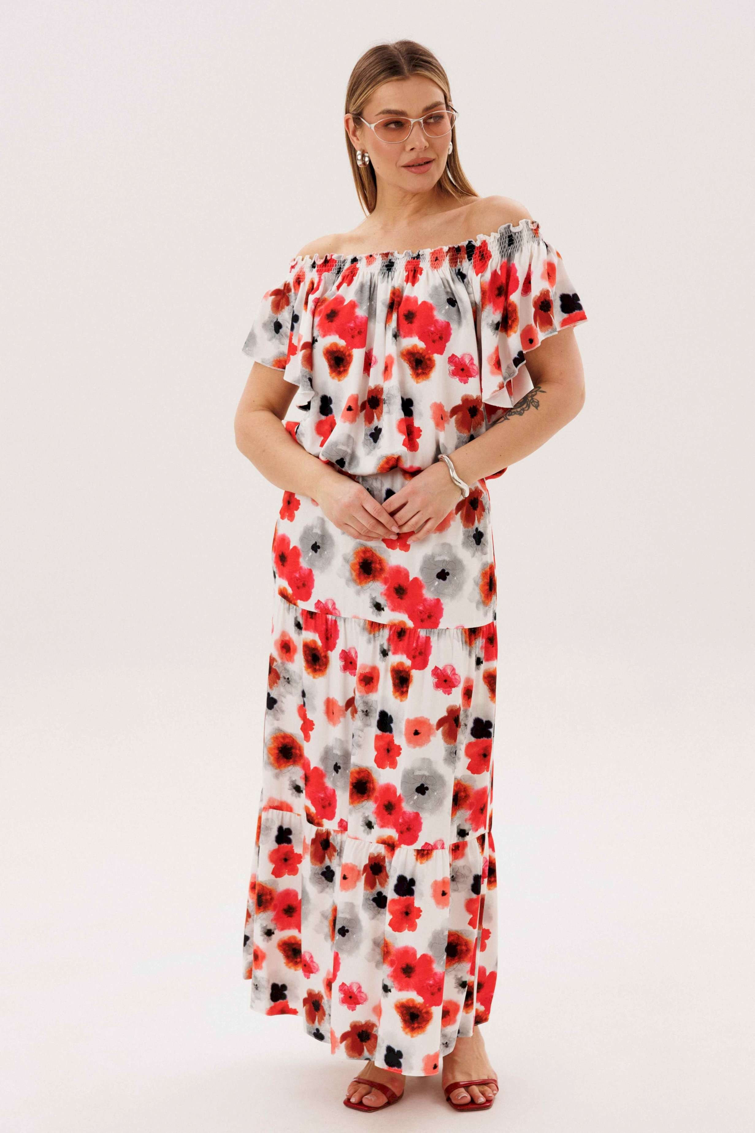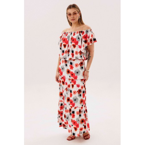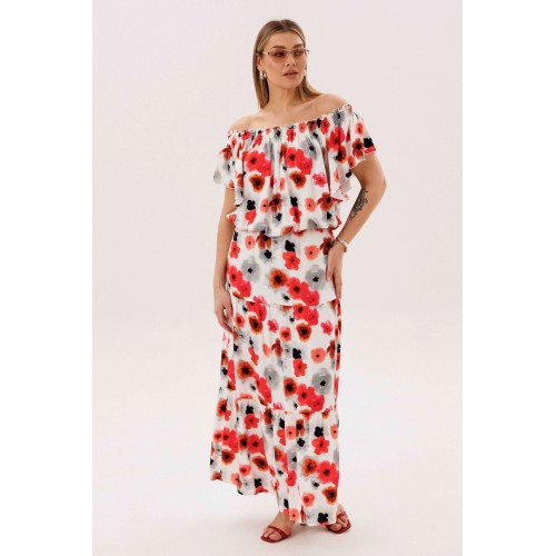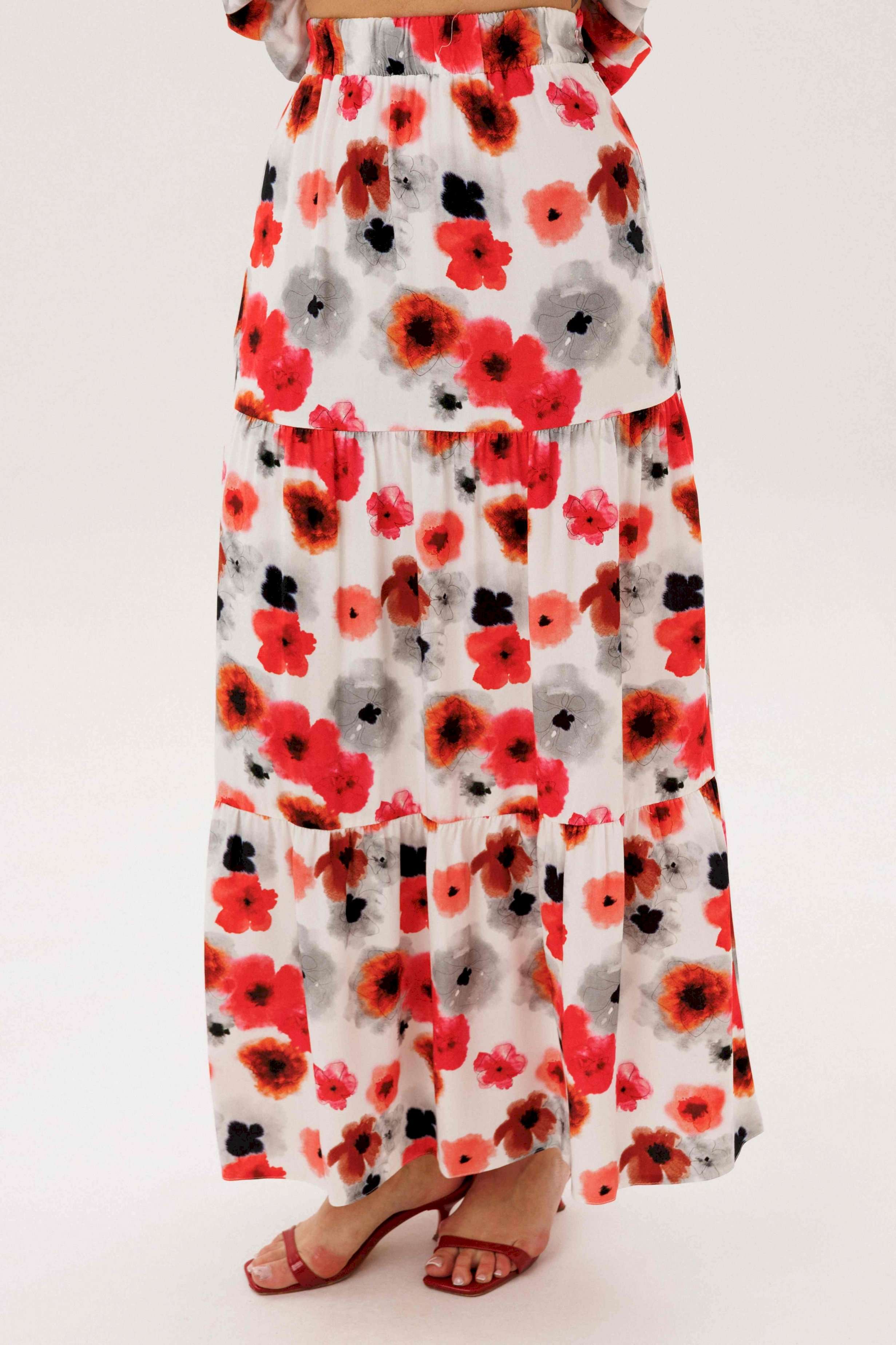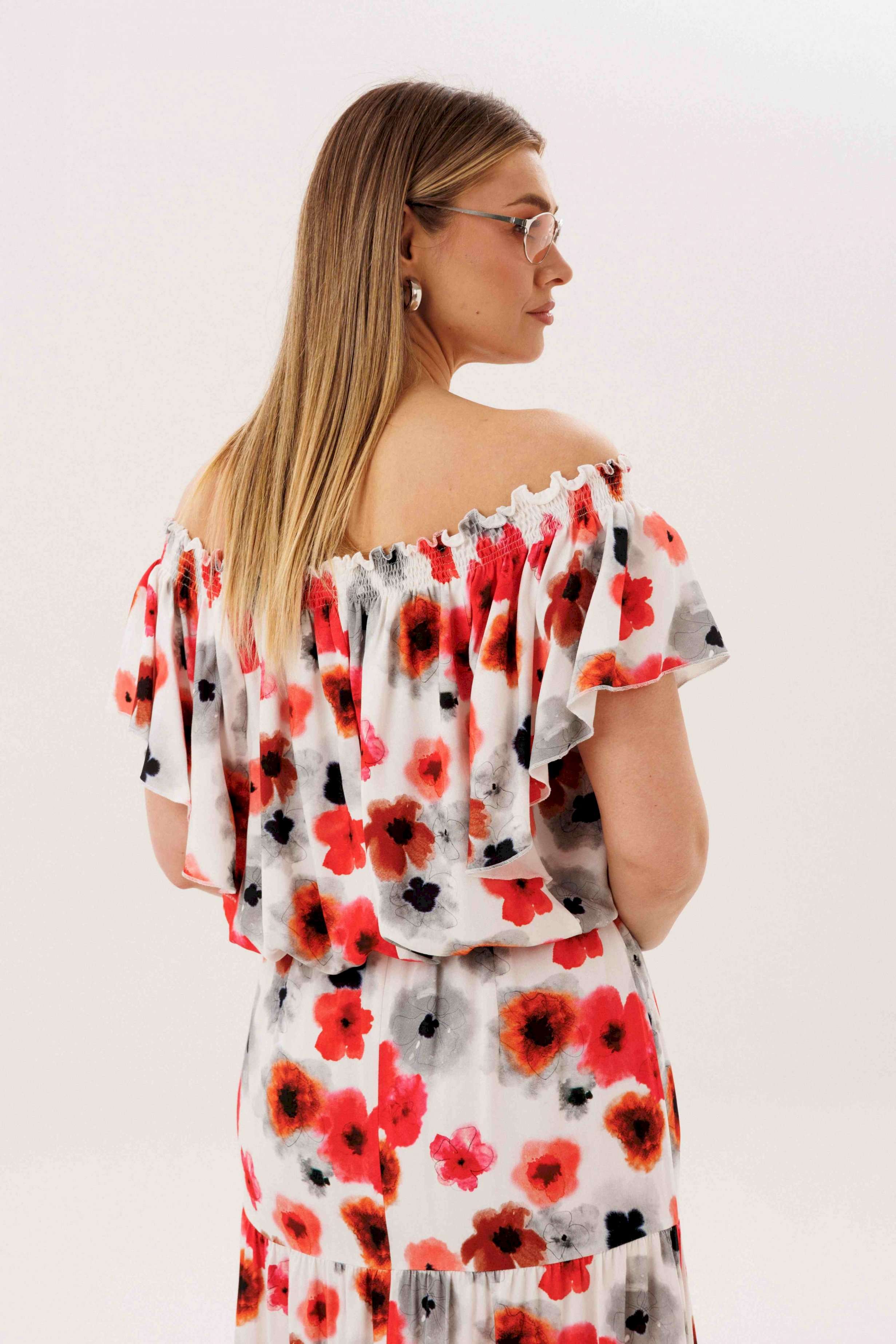 Летний сезон _ это всегда романтика, приключения, игривое настроение и мир моды погружает нас в это состояние, радуя очередными новинками. Невероятно комфортный, лёгкий вискозный комплект с юбкой и блузой. Юбка А-образного силуэта, состоит из трёх горизонтальных воланов с лёгкой сборкой и на эластичном поясе. Блуза свободная с вертикальными рельефами, рукавом- крылышко, эластичными буфами по линии горловины и эластичной тесьмой по низу. Длина юбки около 90см, Длина блузы около 52см. Длина рукава около 15см.