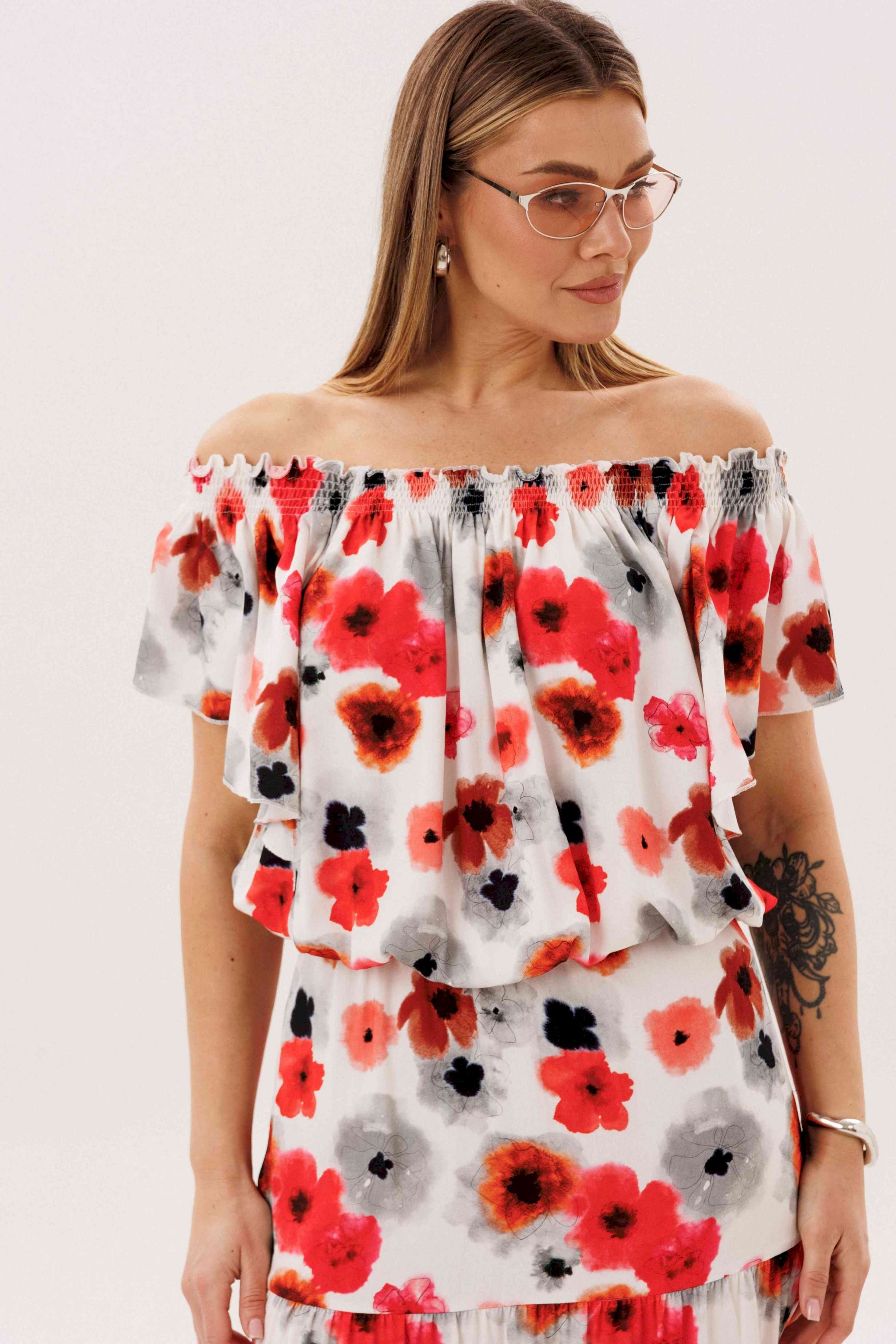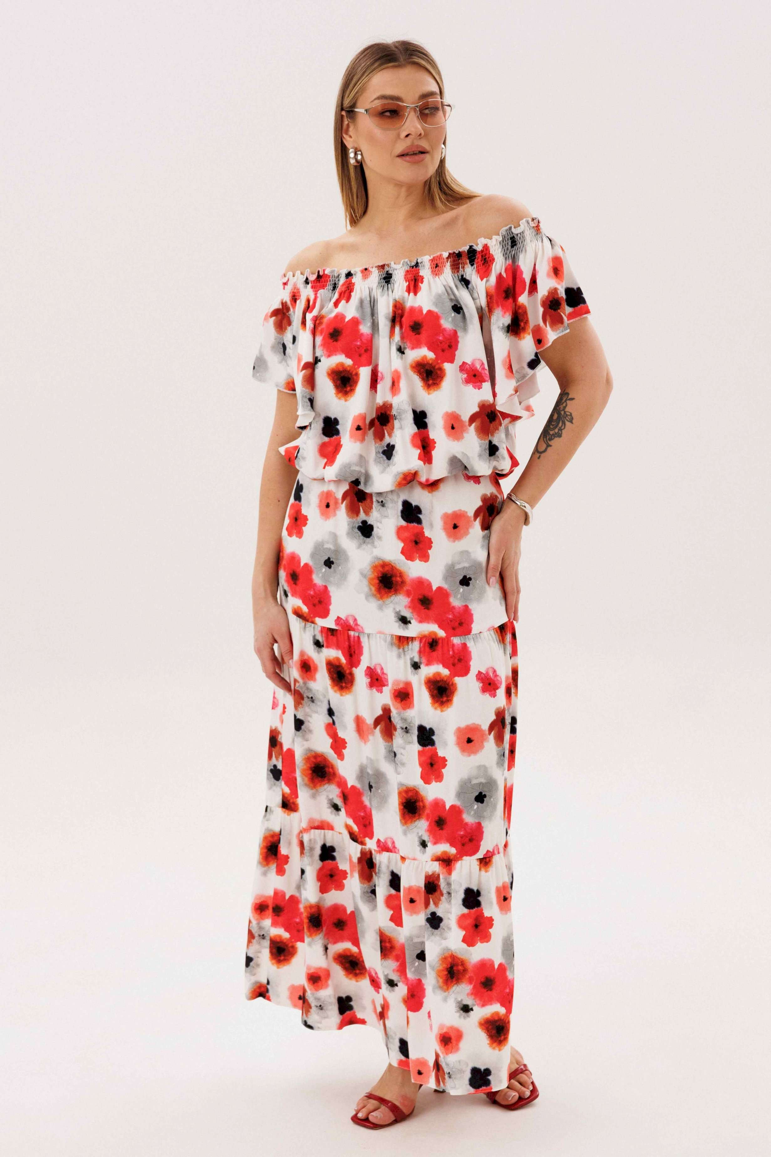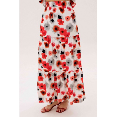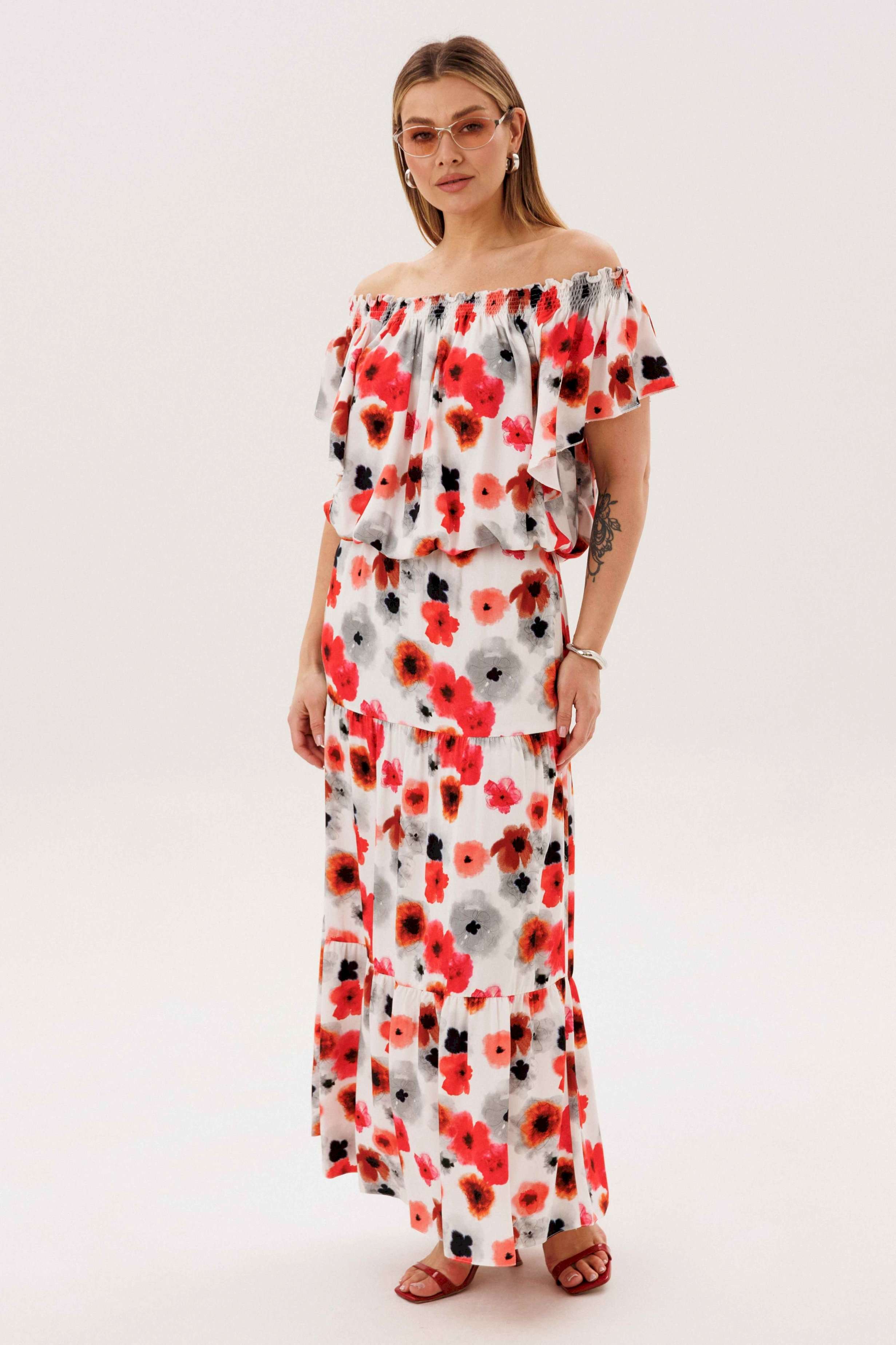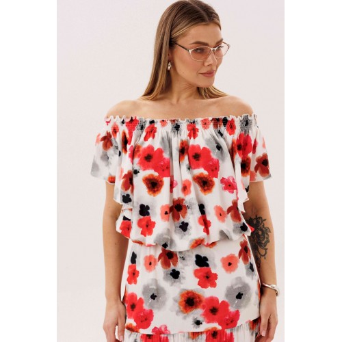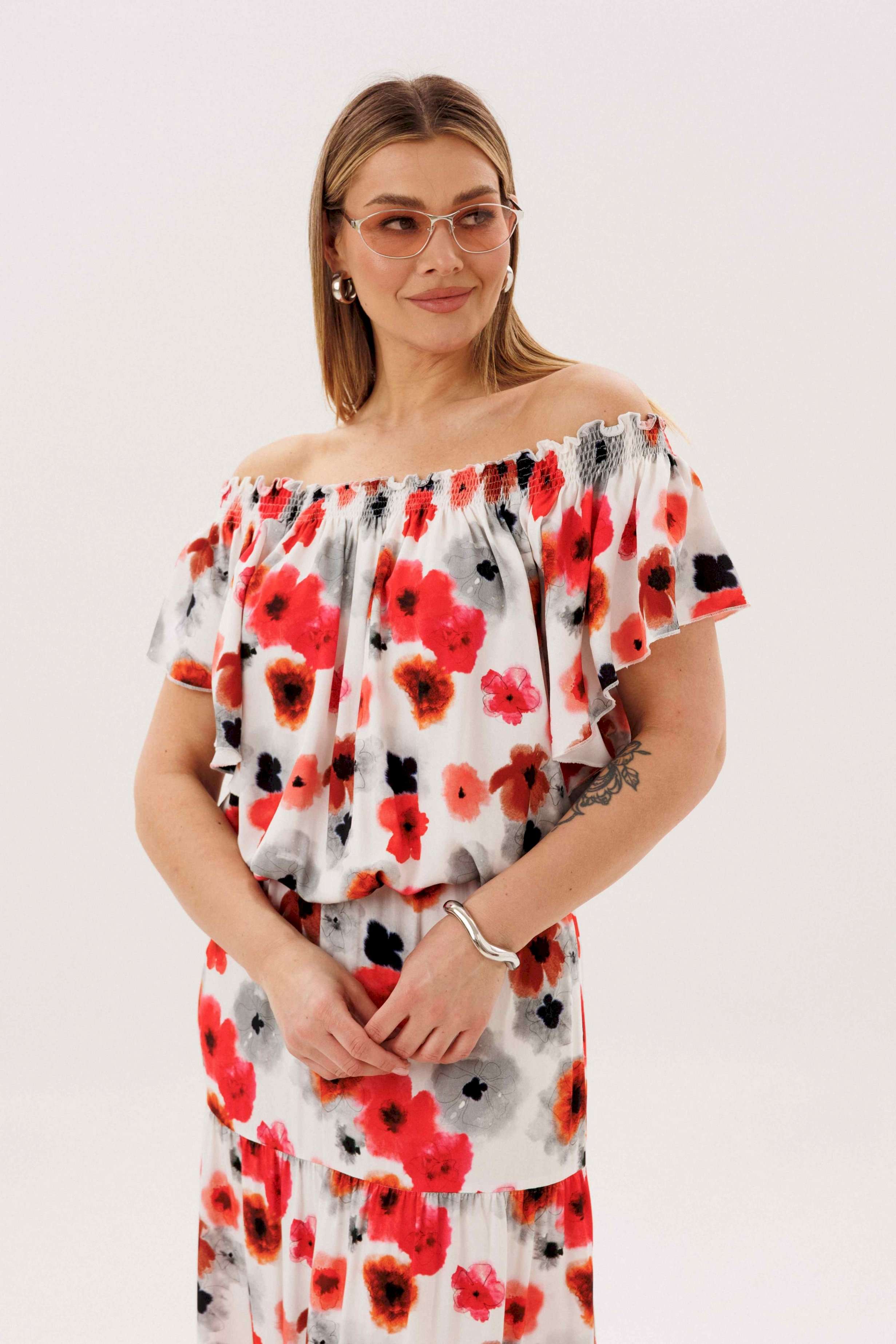 Летний сезон _ это всегда романтика, приключения, игривое настроение и мир моды погружает нас в это состояние, радуя очередными новинками. Невероятно комфортный, лёгкий вискозный комплект с юбкой и блузой. Юбка А-образного силуэта, состоит из трёх горизонтальных воланов с лёгкой сборкой и на эластичном поясе. Блуза свободная с вертикальными рельефами, рукавом- крылышко, эластичными буфами по линии горловины и эластичной тесьмой по низу. Длина юбки около 90см, Длина блузы около 52см. Длина рукава около 15см.