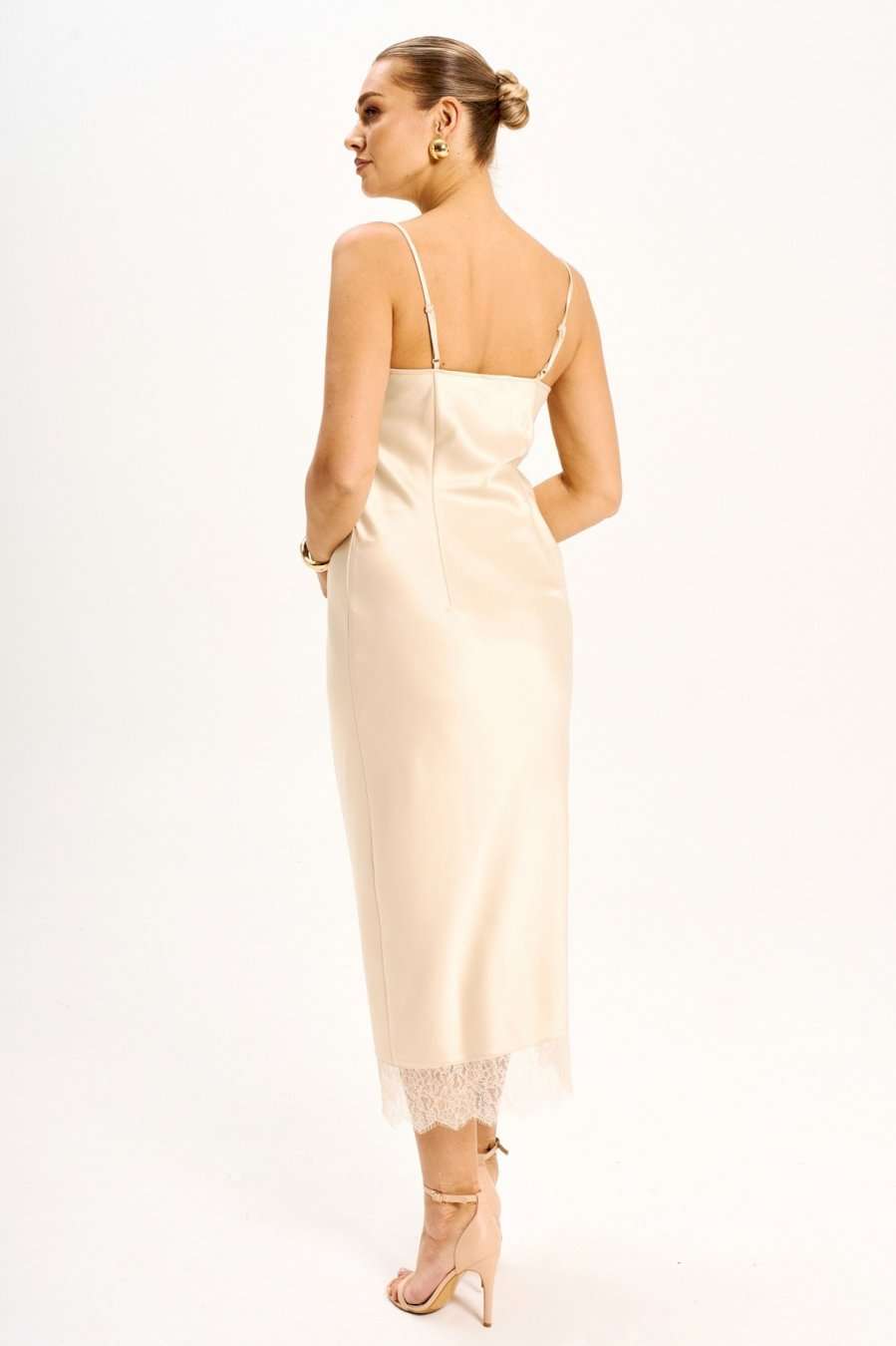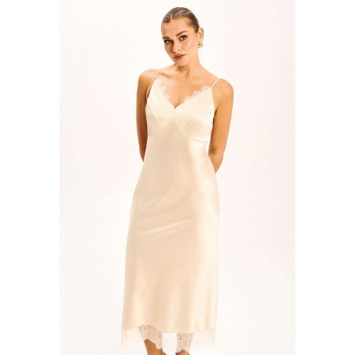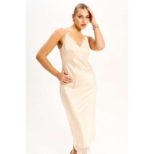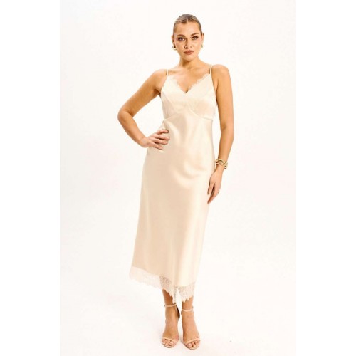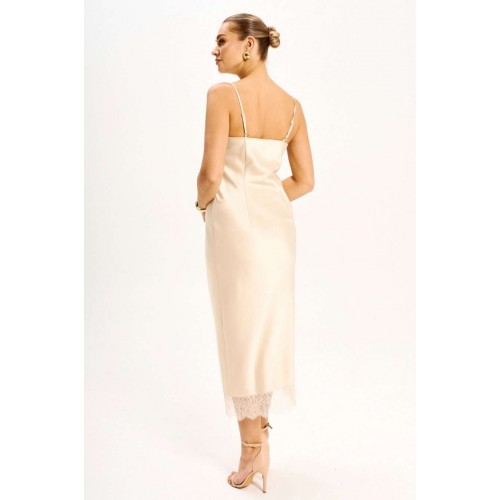 Платье - миди прилегающего силуэта выполнено из струящегося шелк - сатина на регулируемых бретелях и молнией в боковом шве. Подрезы по линии груди и низу платья дополнены мягким французким кружевом, которое держит форму. Платье полностью соответствует заявленному размеру. Пожалуйста, пользуйтесь таблицей замеров готового изделия, чтобы подобрать идеальный размер. Уход за платьем: -при стирке в стиральной машине выбрать бережный либо деликатный режим; -температура воды не выше 30 градусов. ( платье прошло тестовую стирку не линяет).