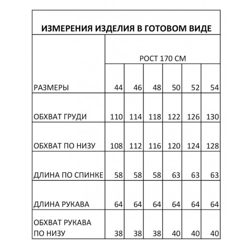 • ТАБЛИЦА РАЗМЕРОВ ЖЕНСКОЙ ОДЕЖДЫ