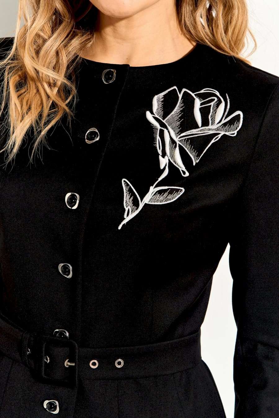 Костюм женский, состоящий из жакета и юбки, выполнен из костюмной ткани средней плотности. Жакет полуприлегающего силуэта на подкладке с отрезной баской и втачными рукавами. Изделие дополнено дизайнерской вышивкой на левой полочке, застегивается по переду на петли и пуговицы. Юбка полуприлегающего силуэта на подкладке с притачным поясом, в боковые швы которой вставлена резинка для лучшего прилегания; по спинке шлица; застежка на молнию, петлю и пуговицу. Костюм полностью соотвествует заявленному размеру. Пожалуйста, пользуйтесь таблицей измерений готового изделия. Костюм прошел тестовую стирку при t 30 С - не линяет. Уход за костюмной тканью: - рекомендована бережная стирка при t не выше 30.