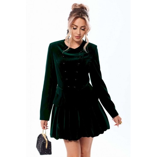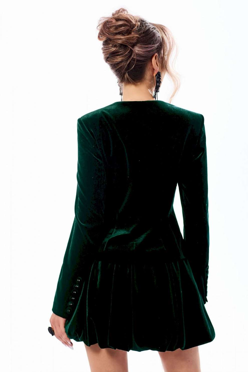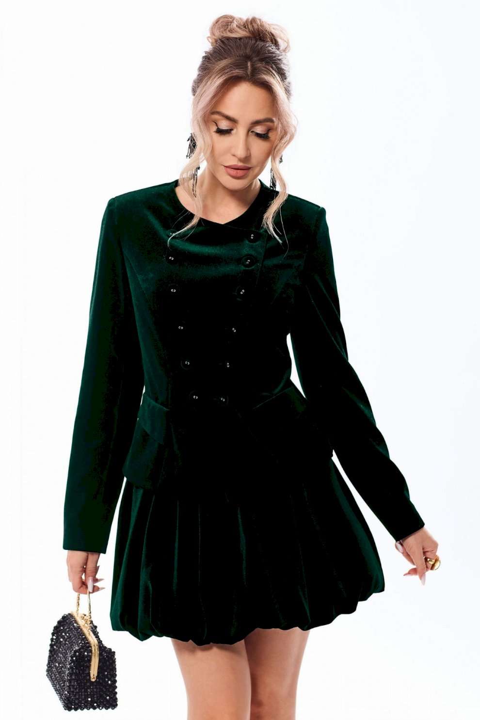 Юбка с отрезным поясом, застежкой на потайную молнию в среднем шве заднего полотнища. По низу и верху юбки- сборка. Юбка на подкладке. Силуэт: расширенный к низу. Цветовая гамма для верха, подкладки, фурнитуры, отделки: юбка выполнена из ткани в одной цветовой гамме. Тип ткани: трикотажный, костюмно – плательный