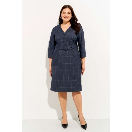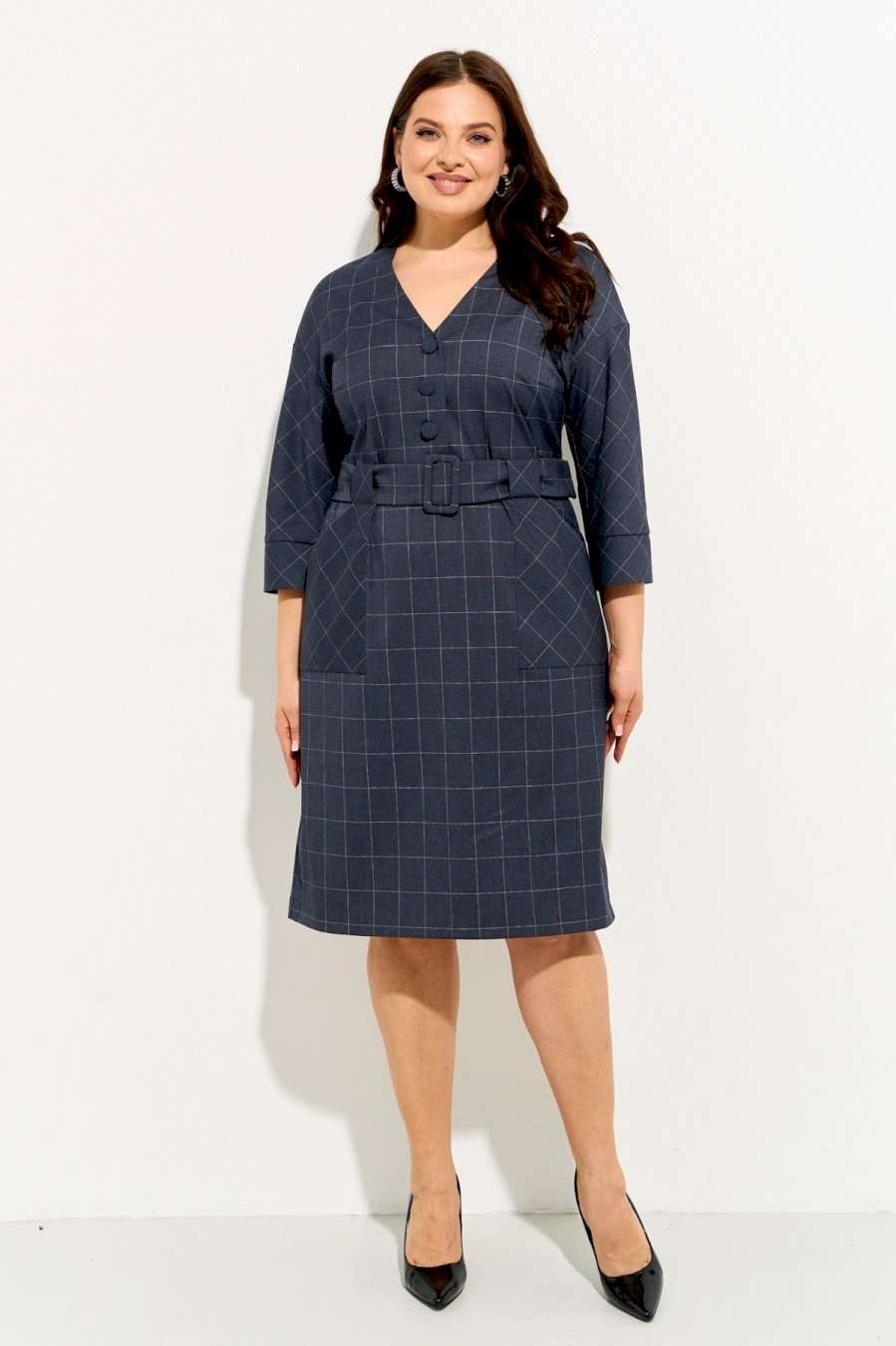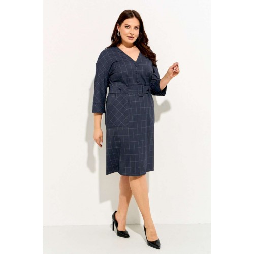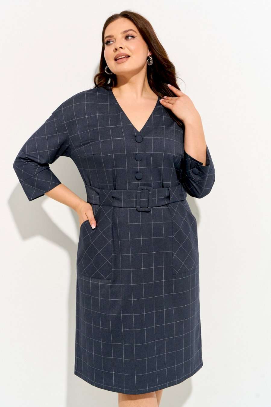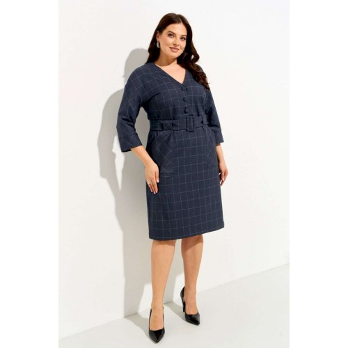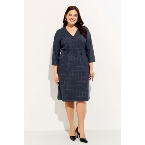 Женское платье полуприлегающего силуэта выполнено из плательной ткани \"в клетку\". Изделие с горловиной V-образной формы застегивается на петли и пуговицы и имеет рукава со спущенной линией плеча и манжентой по низу. По переду платья находятся накладные функциональные карманы, переходящие в шлевку, которая держит пояс. В комлекте съемный пояс из основной ткани. Платье полностью соотвествует заявленному размеру. Пожалуйста, пользуйтесь таблицей обмеров готового изделия. Уход за плательной тканью: - стирать при температуре не выше 30 градусов при бережном режиме или ручной стирке.
