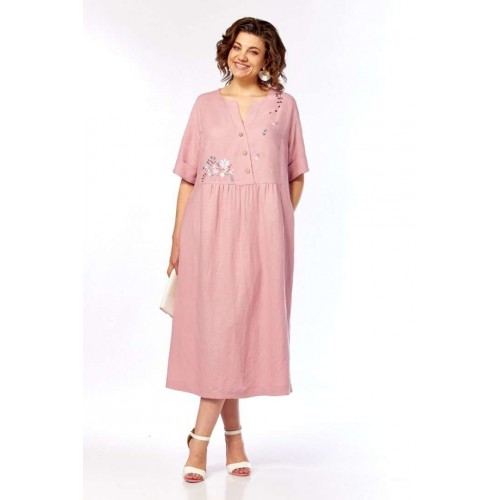 Платье 3500-3 Jurimex отрезного силуэта идеально для создания нежного и женственного образа. Коллекция бренда Jurimex выполнена из сочетания лена и вискозы, что обеспечивает комфорт и дышащие свойства на протяжении носки. Уникальная фигурная горловина и имитация застежки на запах добавляют изысканный акцент. Линия плеча слегка спущена, а рукава оформлены отложными манжетами. Карманы в боковых швах делают платье практичным. Длина по спинке составляет 119 см, а длина плеча вместе с рукавом — 41 см. Дизайнерская вышивка на передней части подчеркивает его стиль и индивидуальность. Пастельный розовый цвет и свободный крой делают это платье универсальным решением для весенне-летнего сезона, идеально подходящим для повседневных и праздничных выходов.